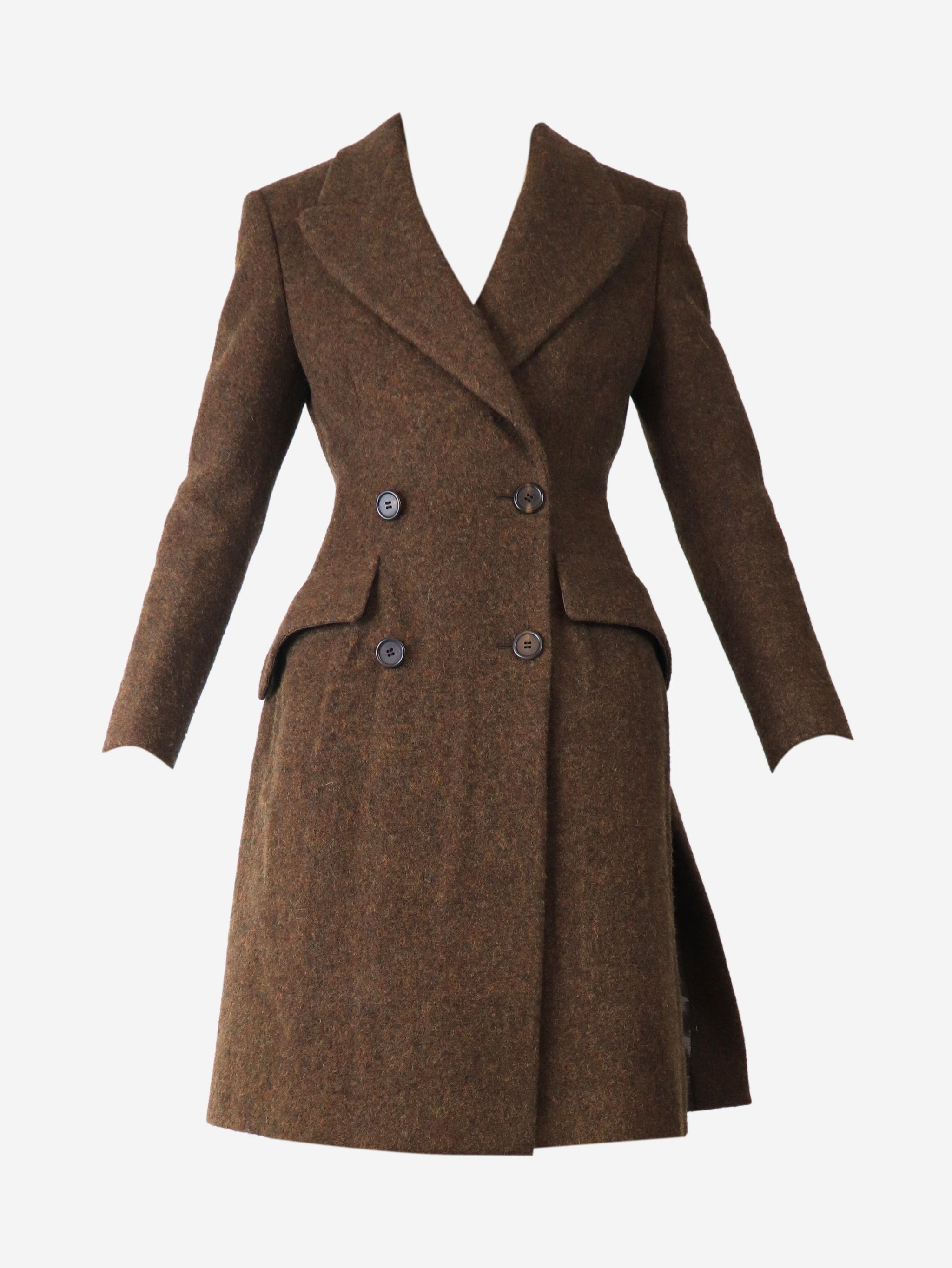 Brown double-breasted wool coat - size UK 8