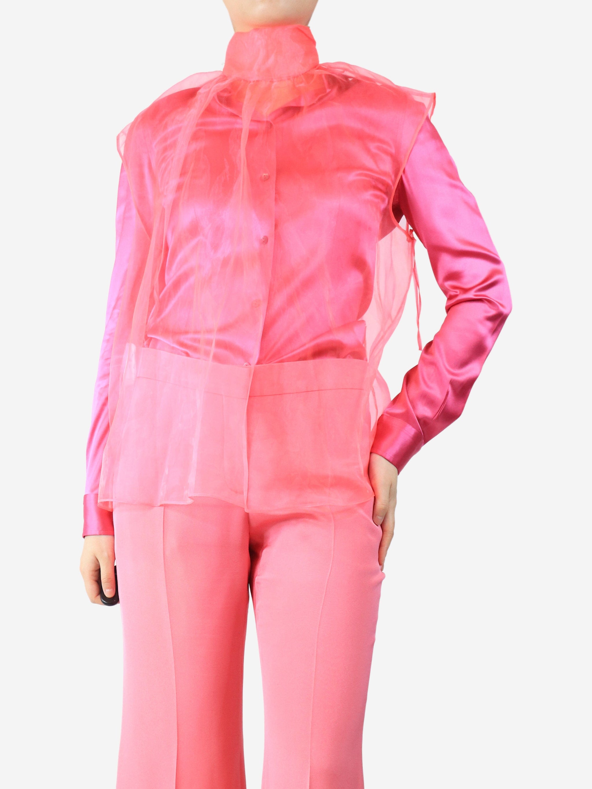 Neon pink silk sleeveless blouse - size UK 8