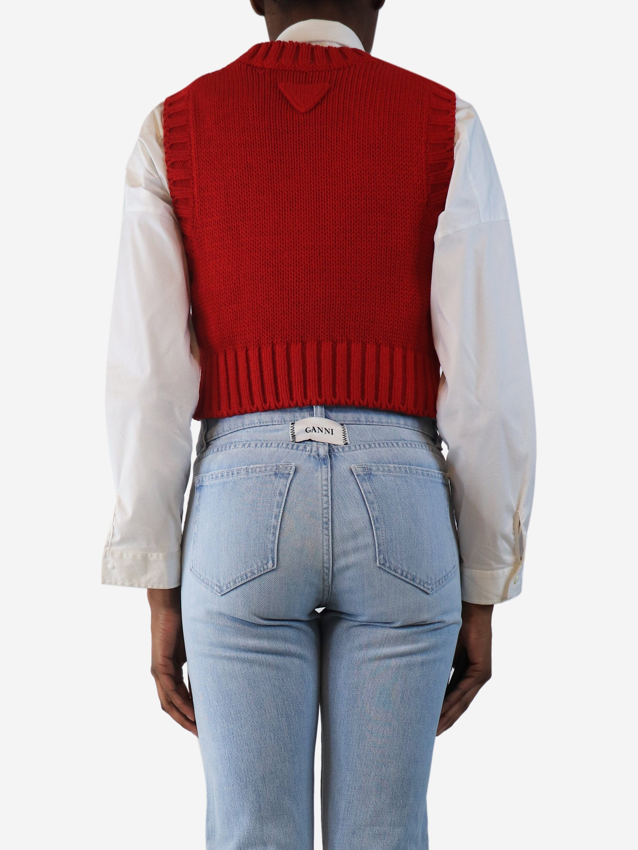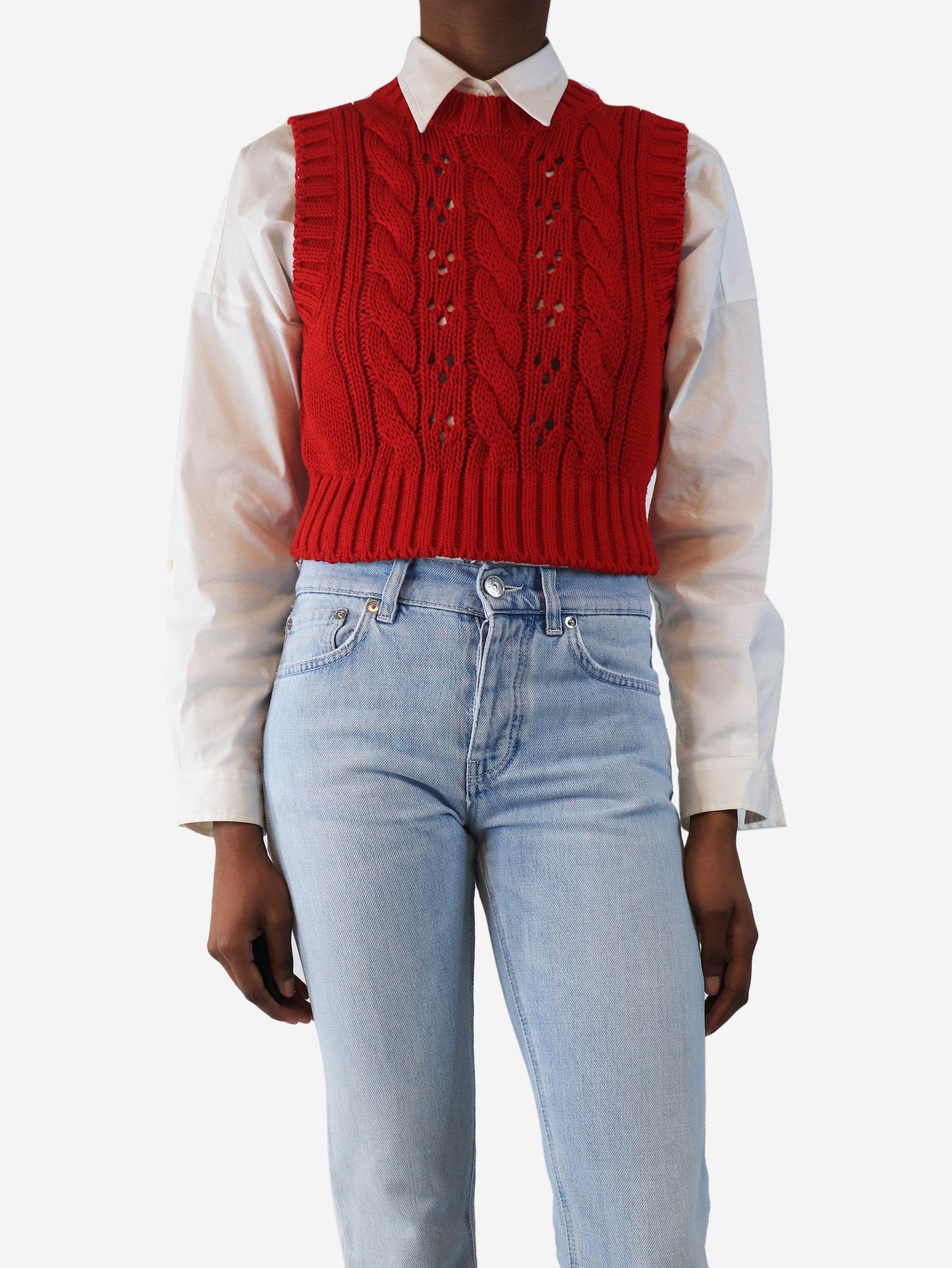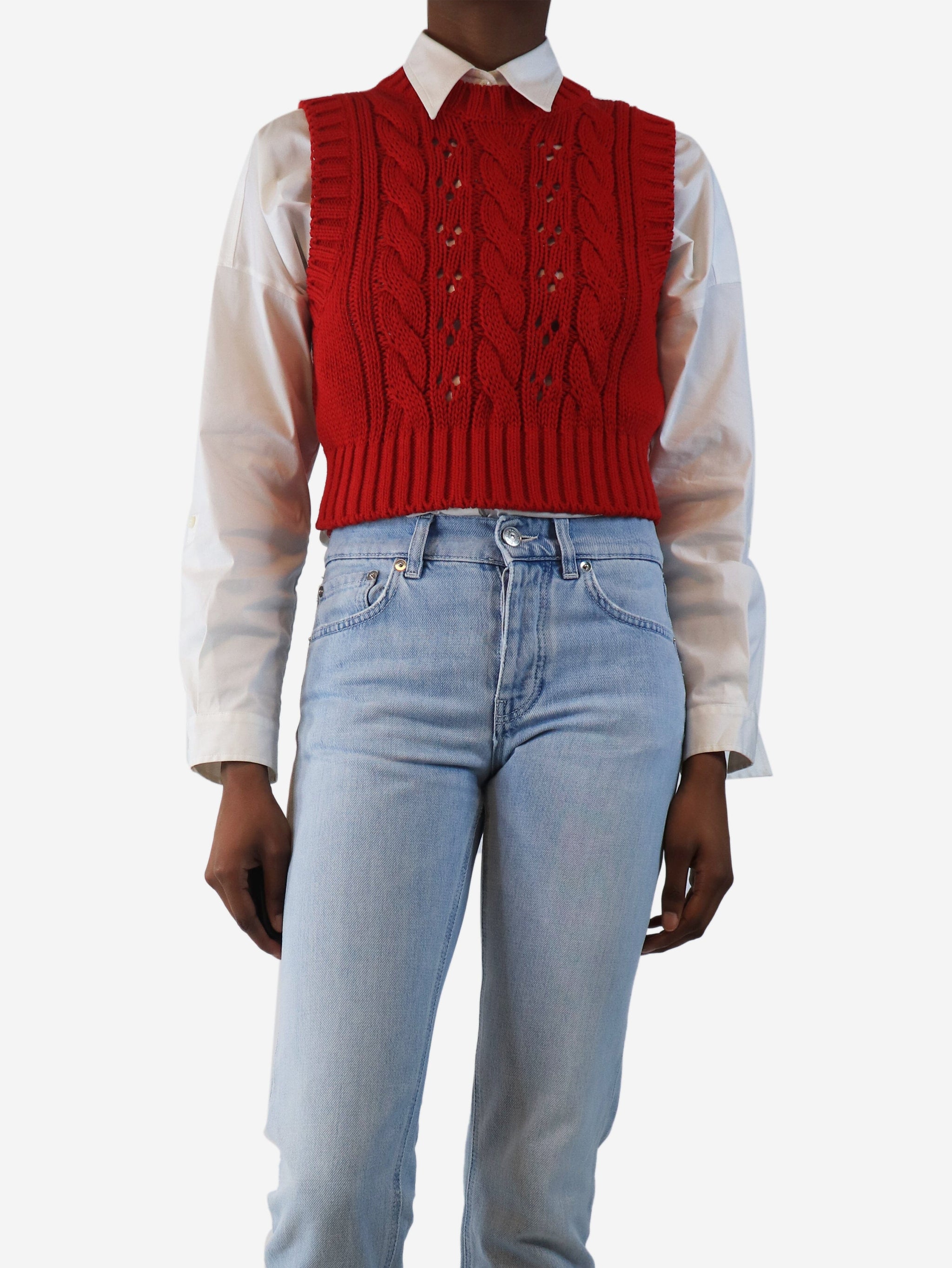 Red cable-knit jumper vest - size UK 8