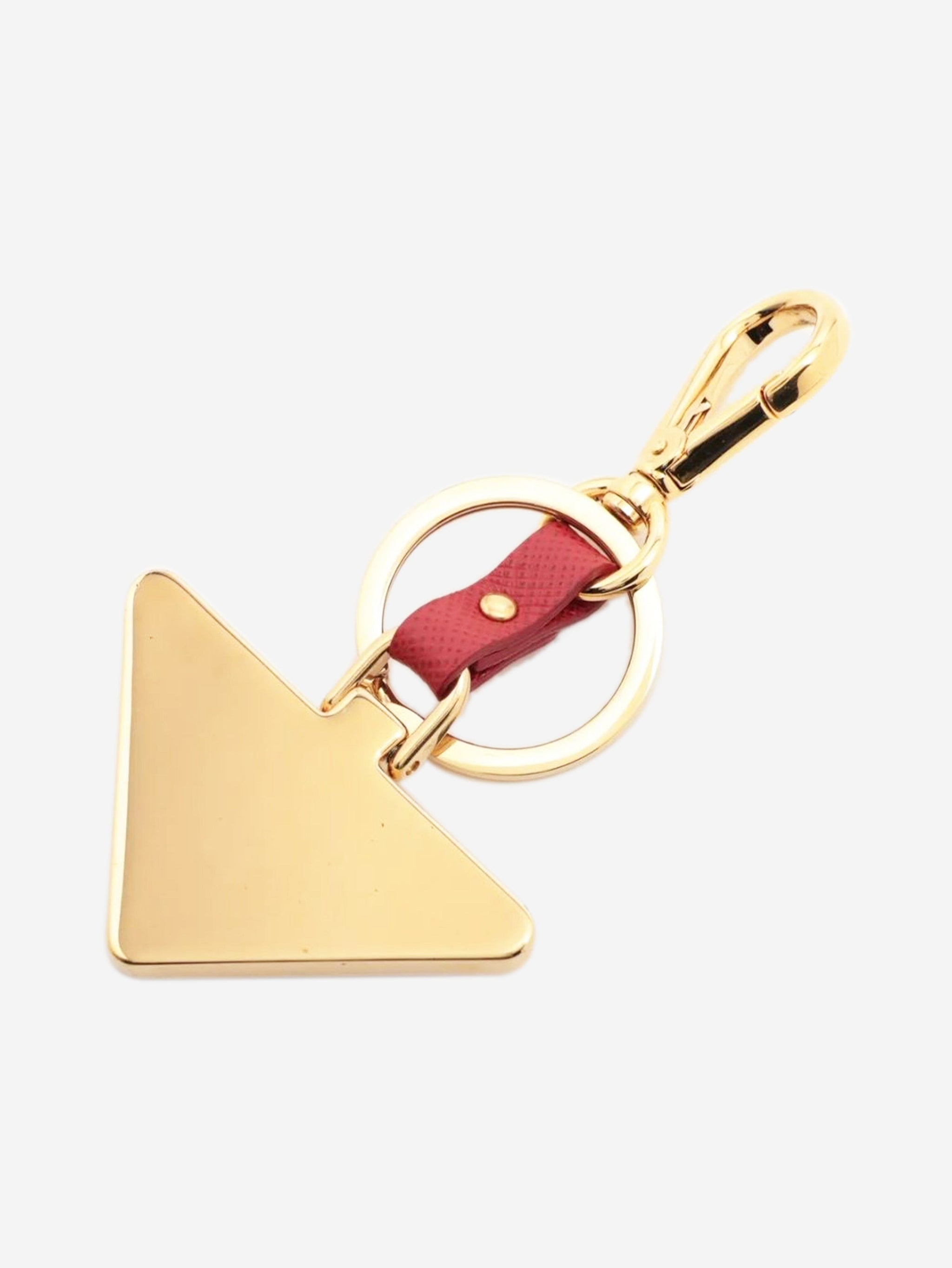 Red Saffiano leather logo keychain