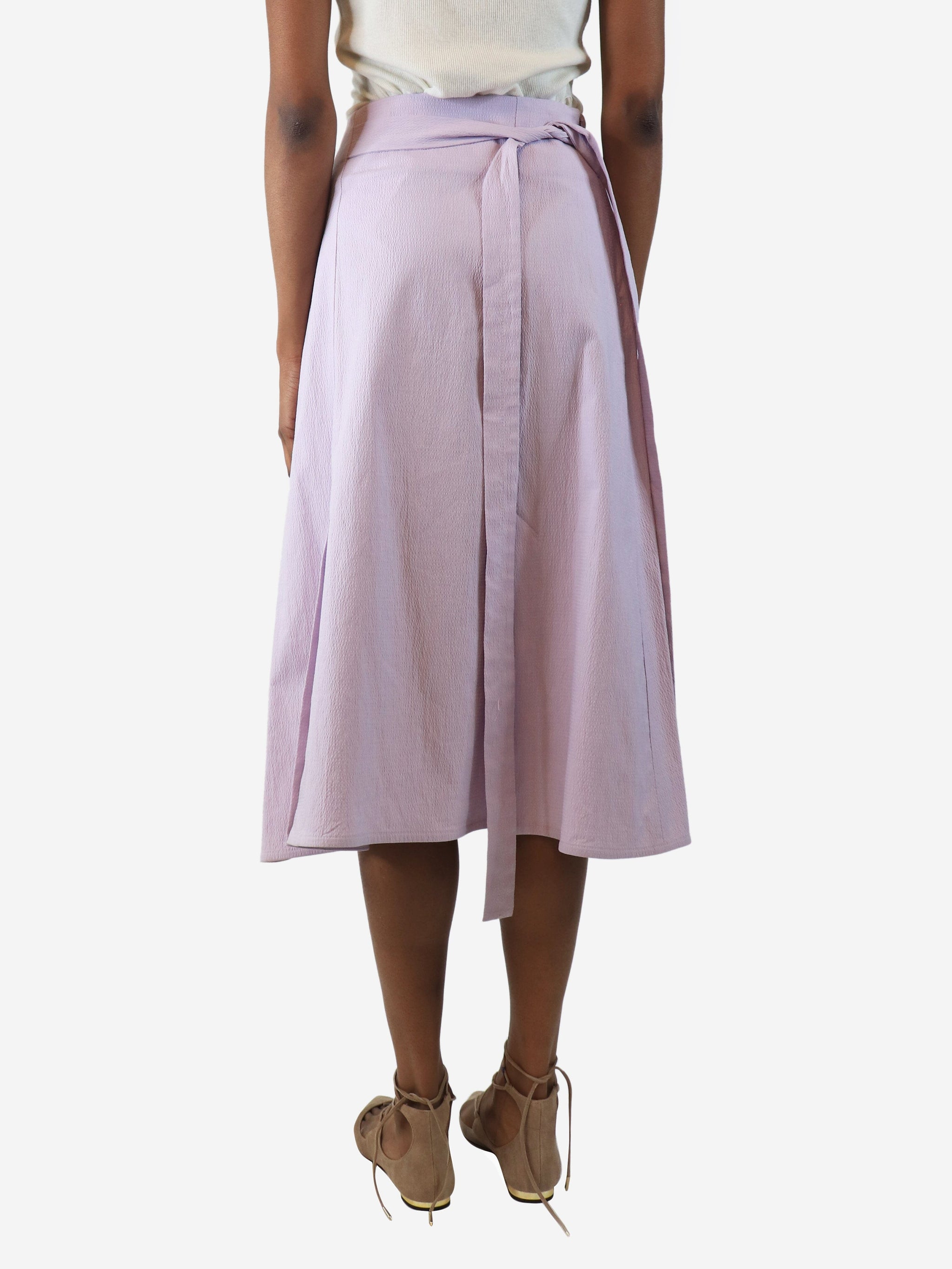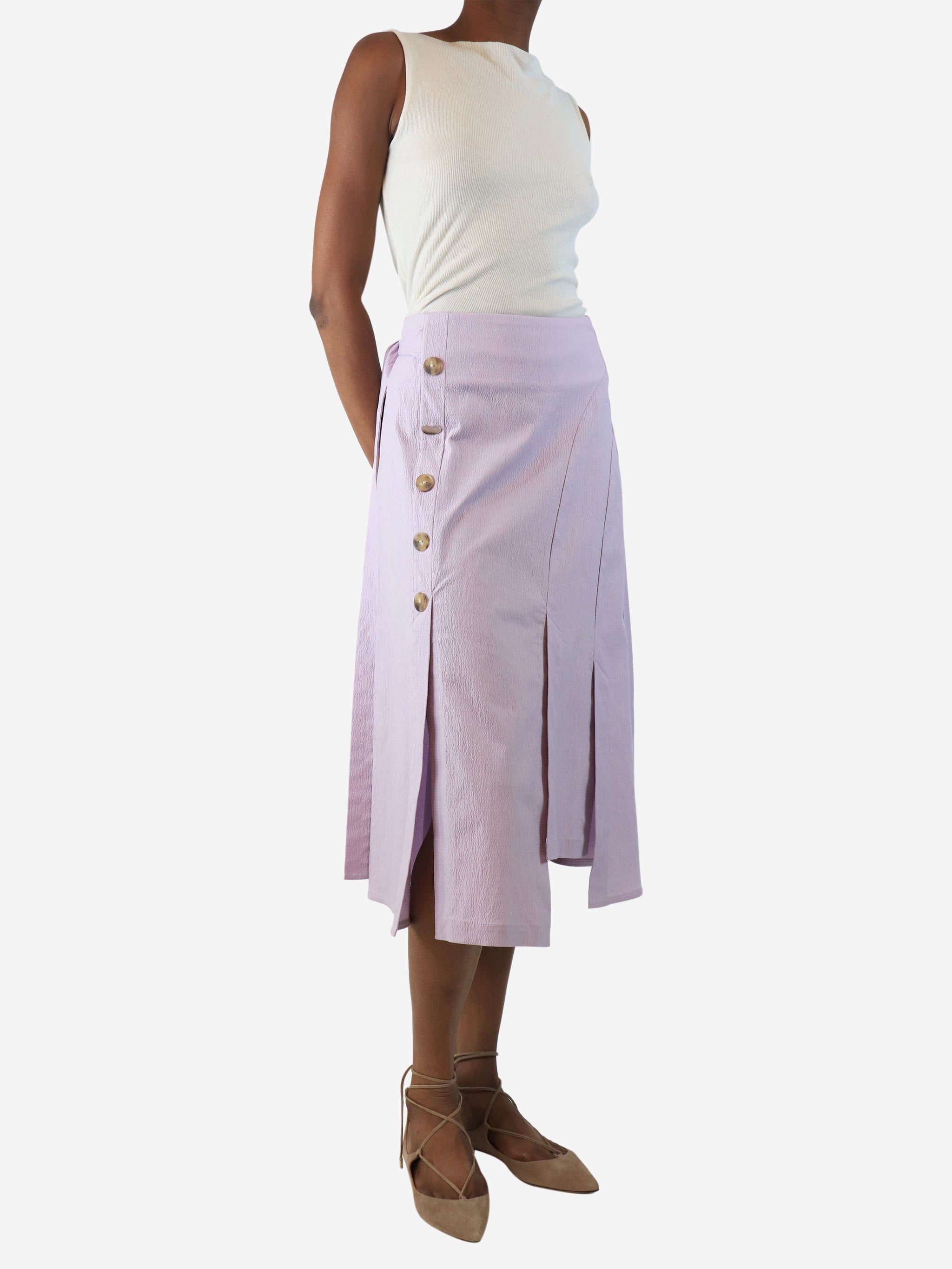 Purple button-detail midi skirt - size UK 6
