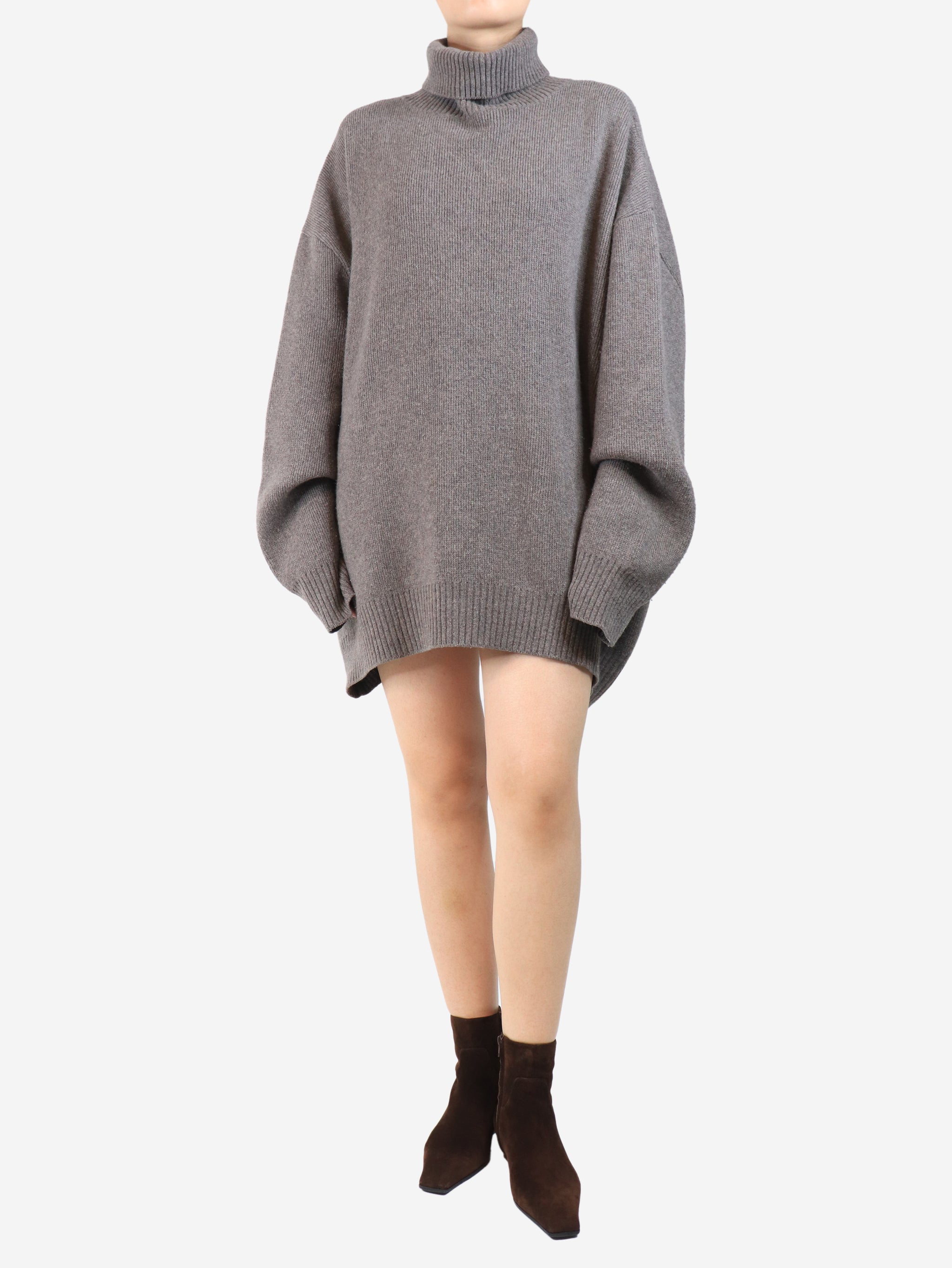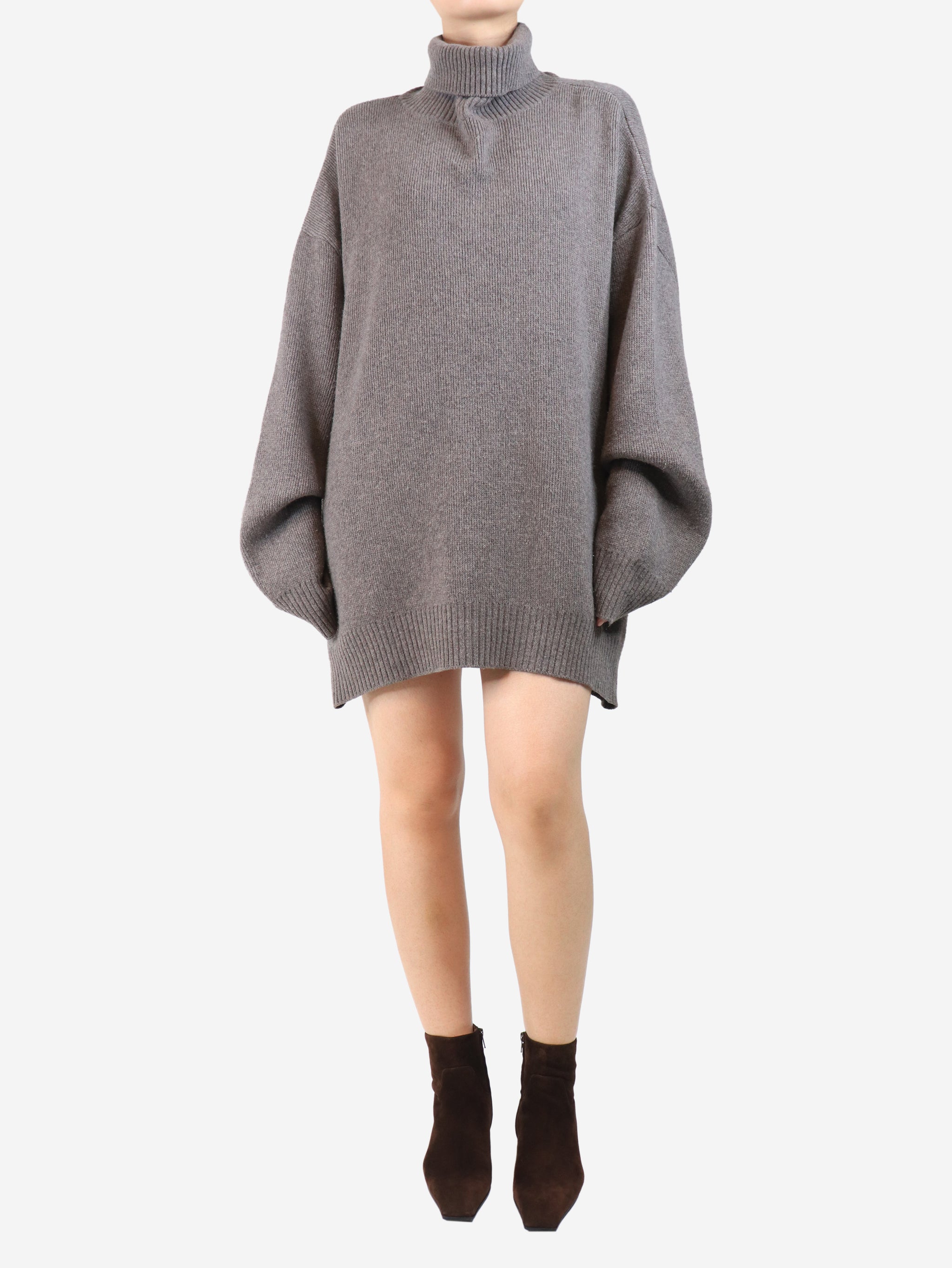 Brown oversized roll-neck jumper - size M