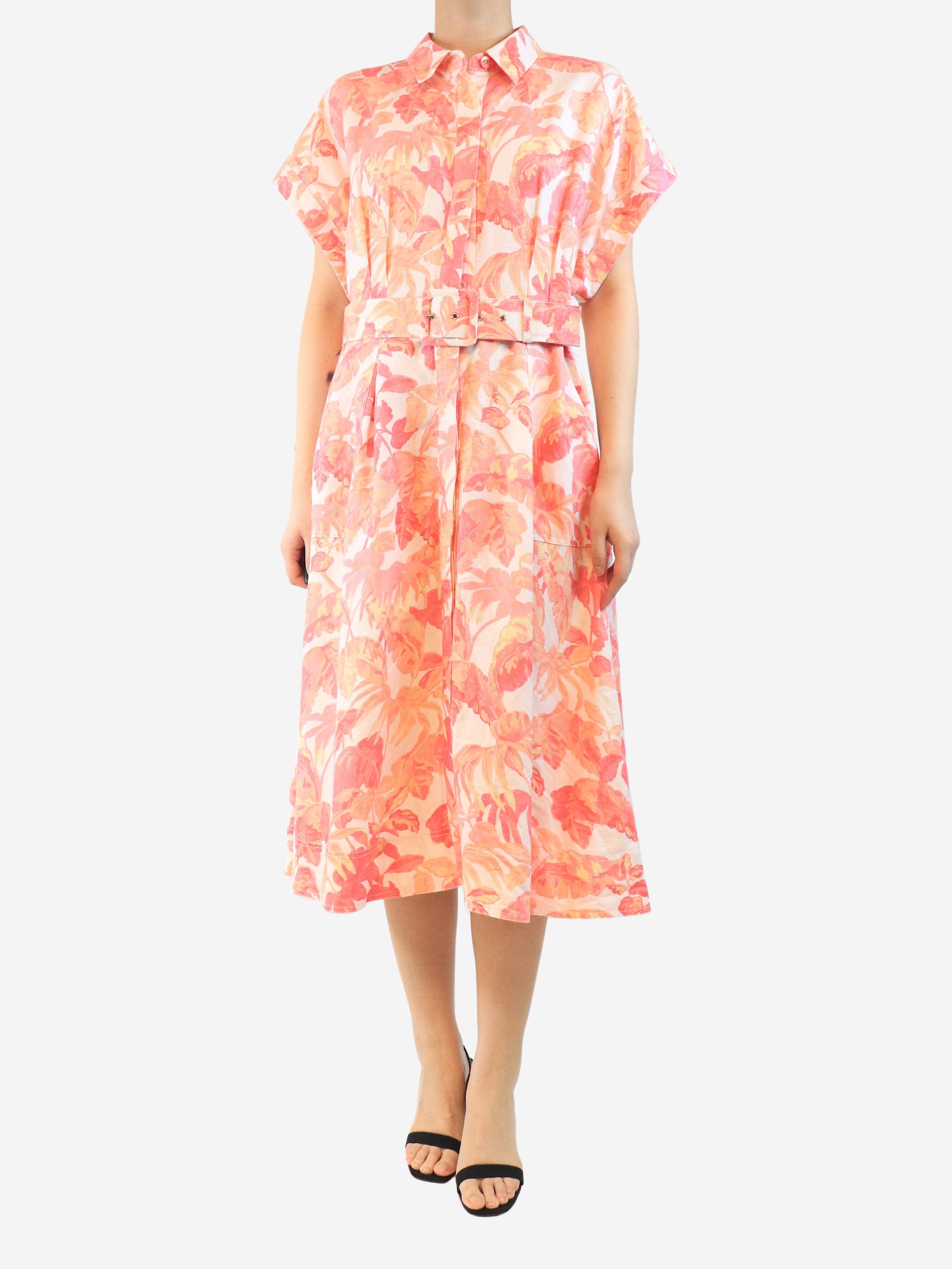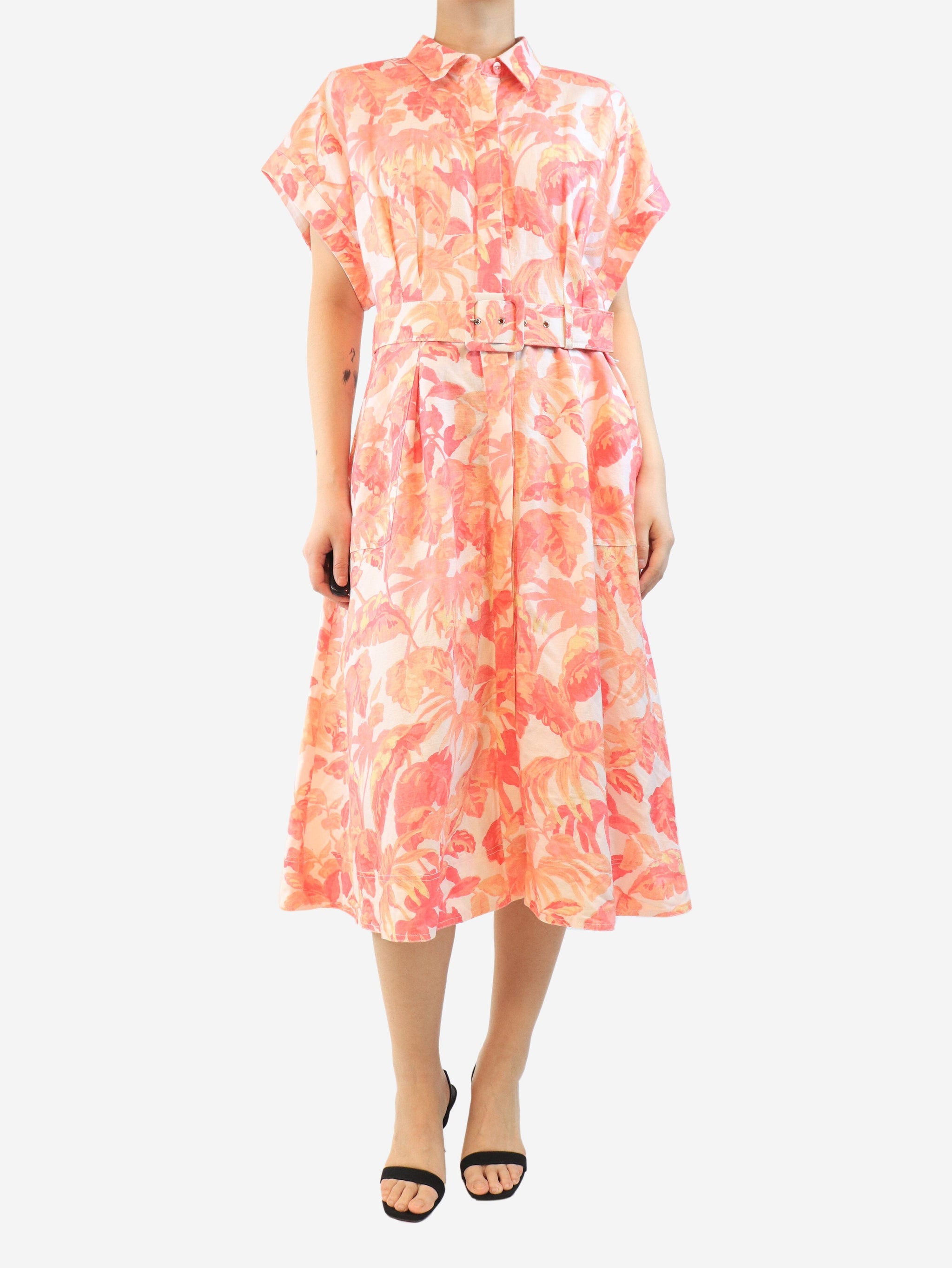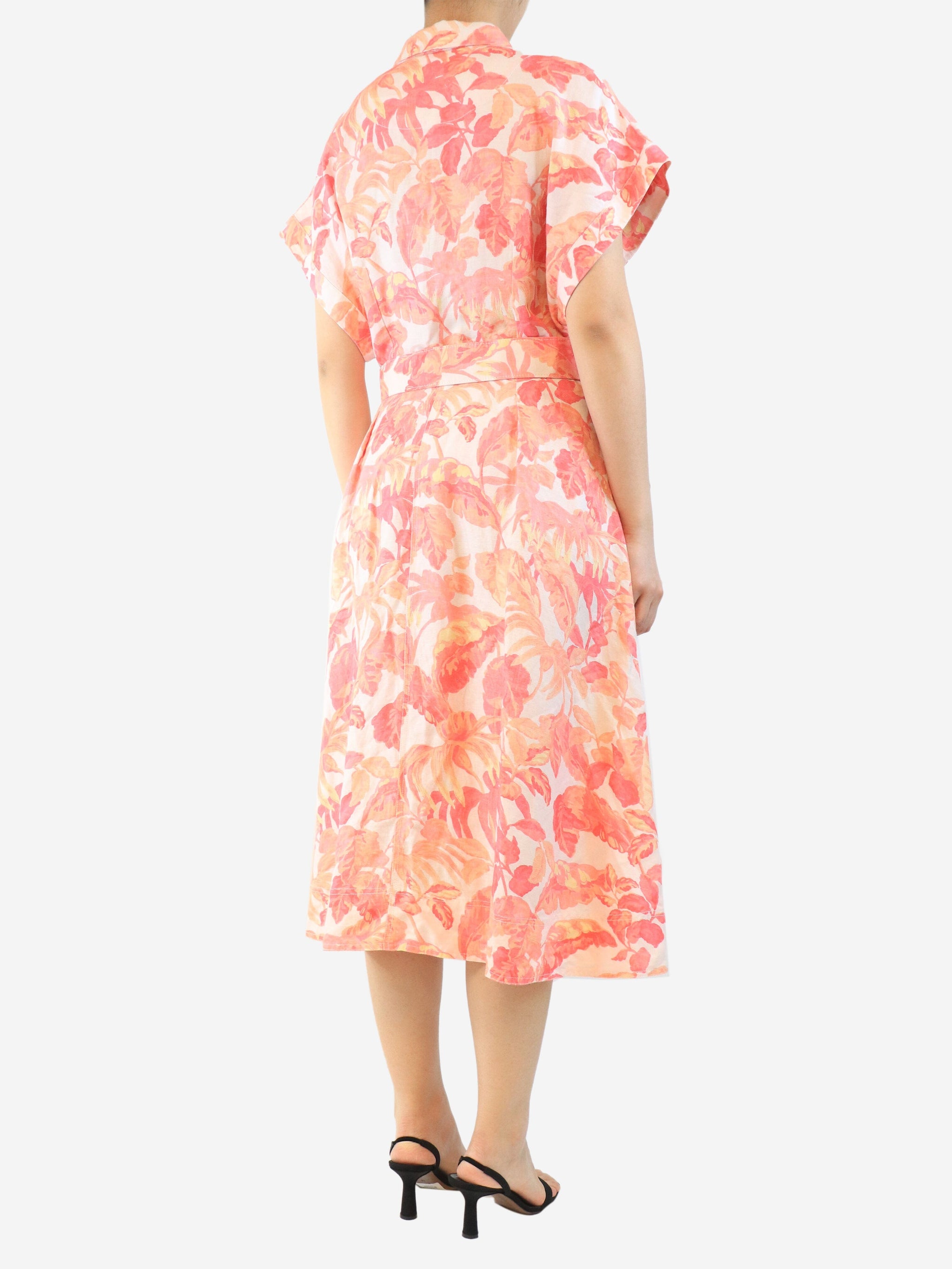 Orange floral printed midi dress - size UK 14