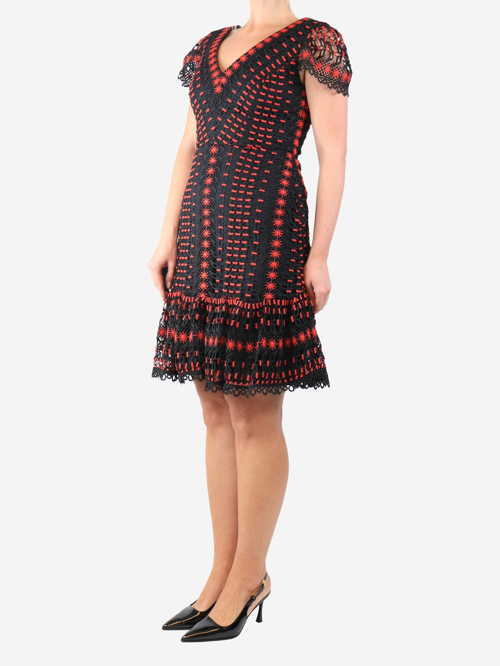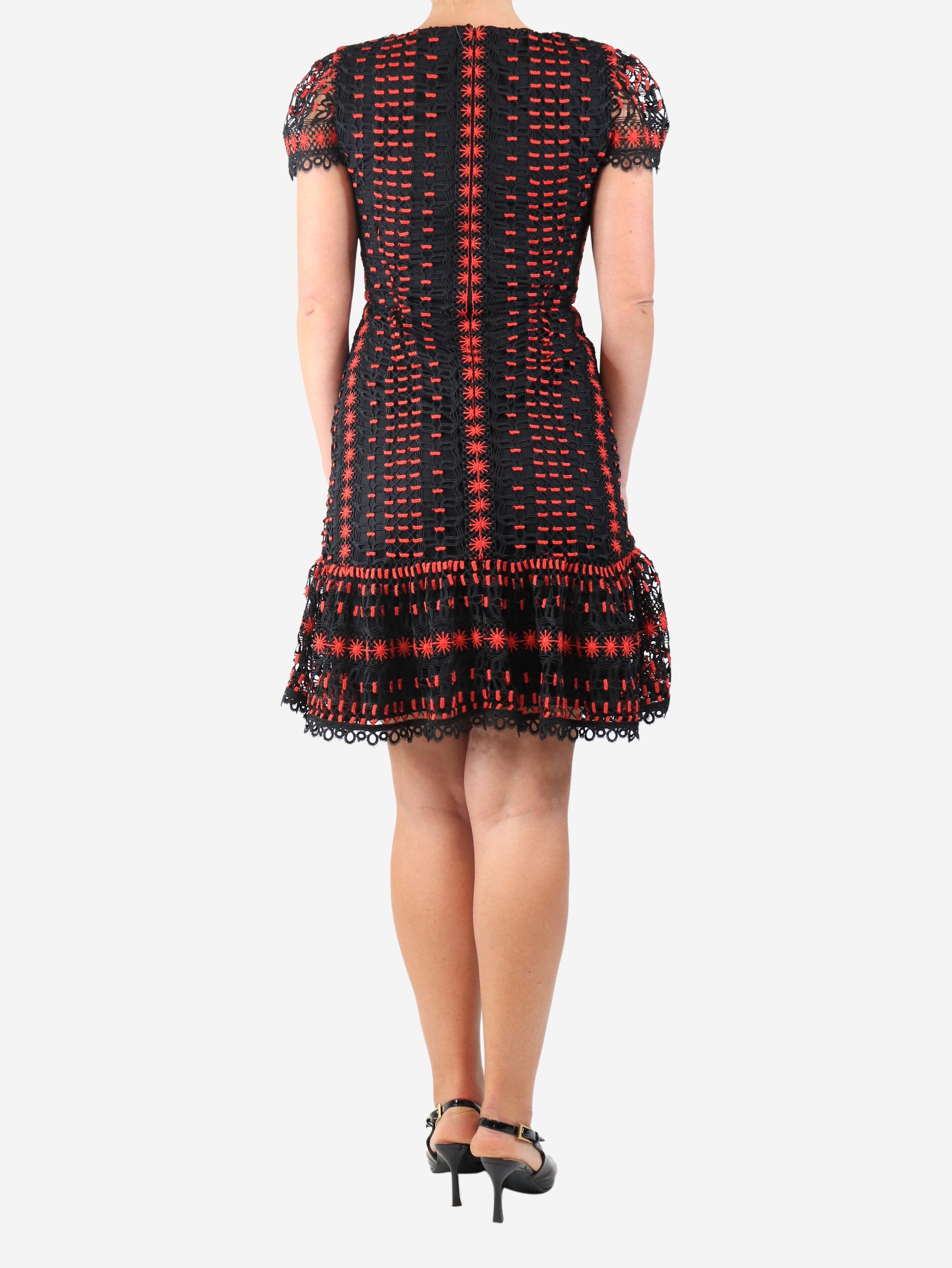Red and black lace midi dress - size
