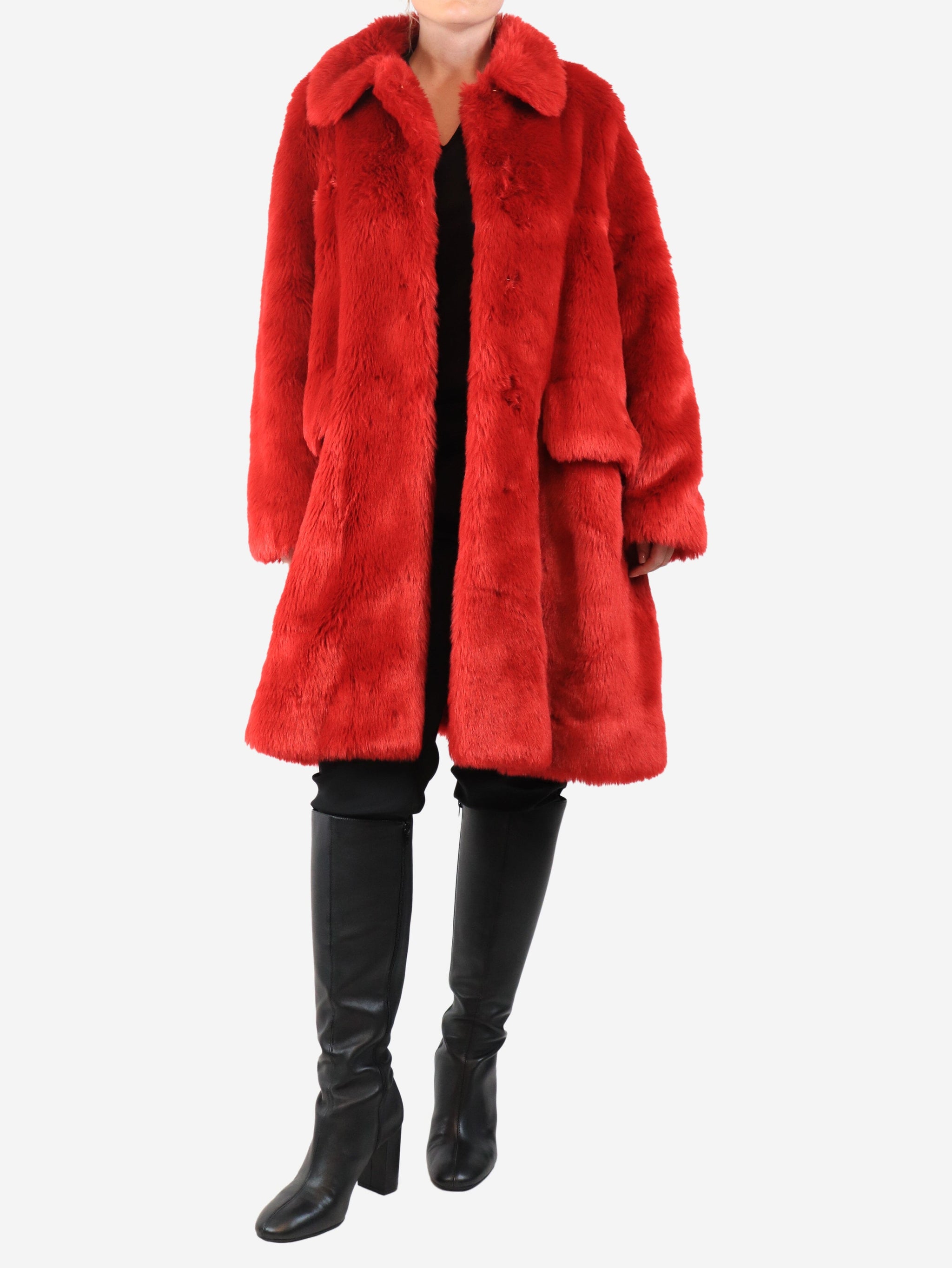 Red faux-fur coat - size UK 10