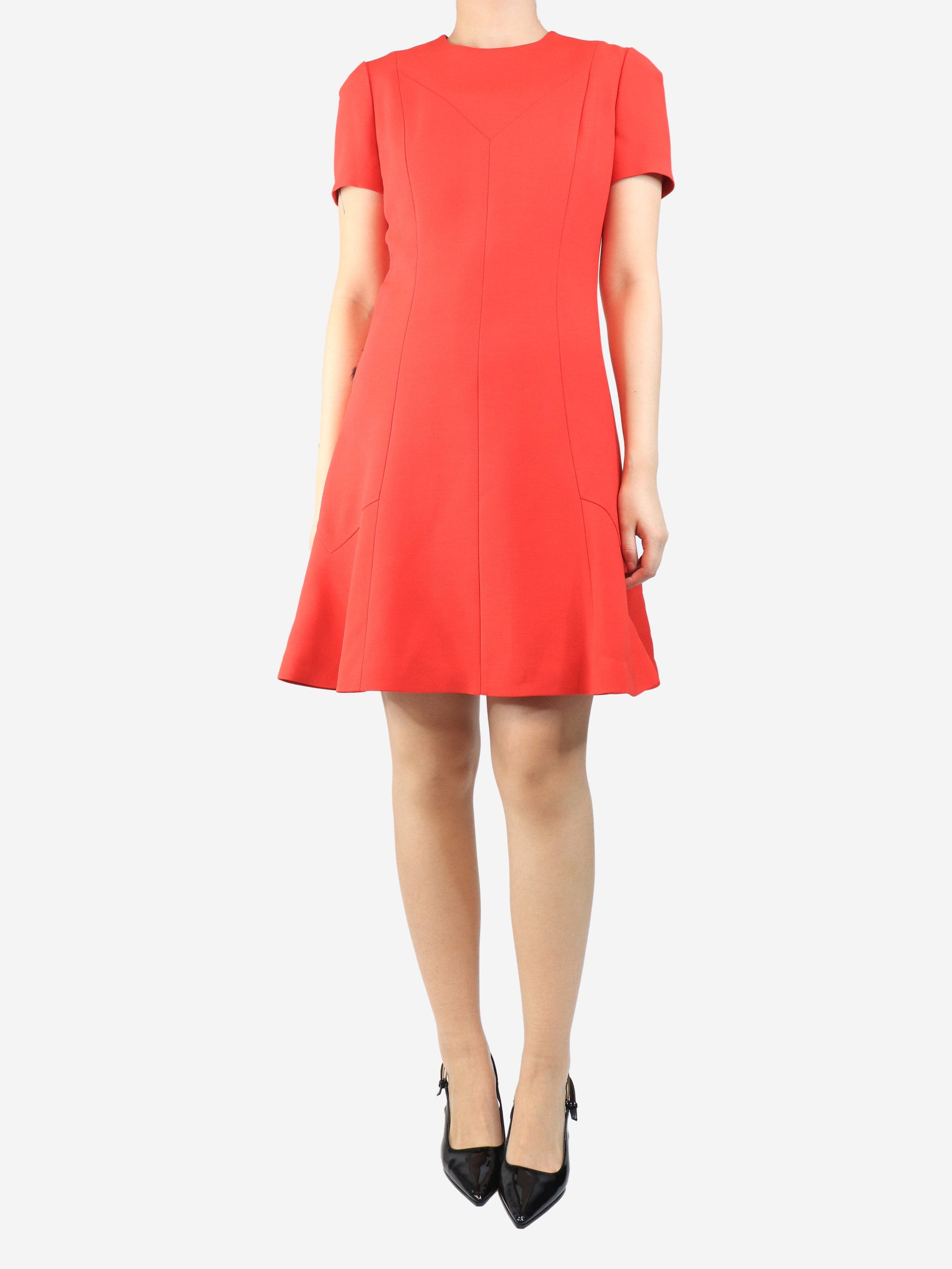 Red short-sleeve midi dress - size UK 10