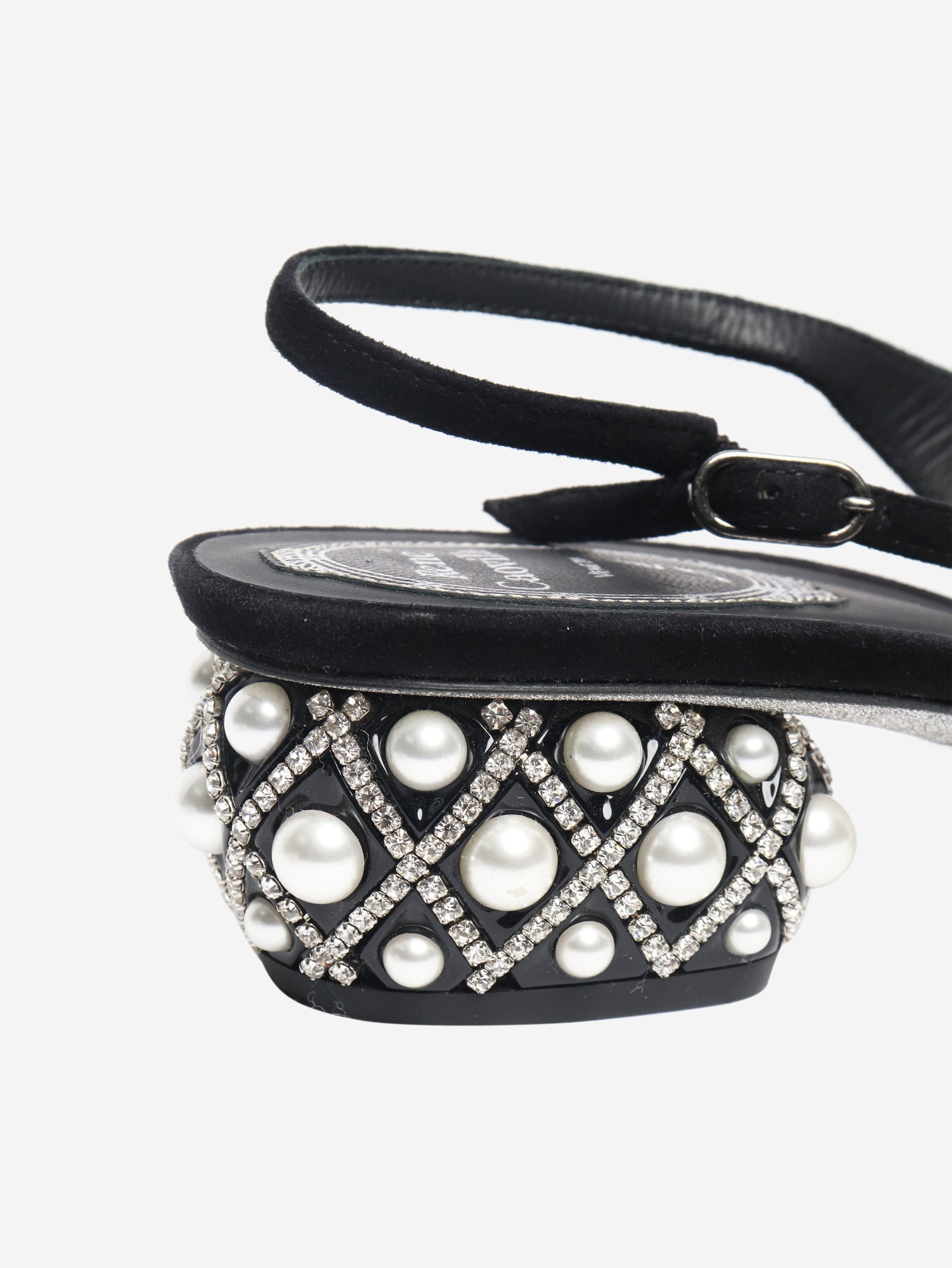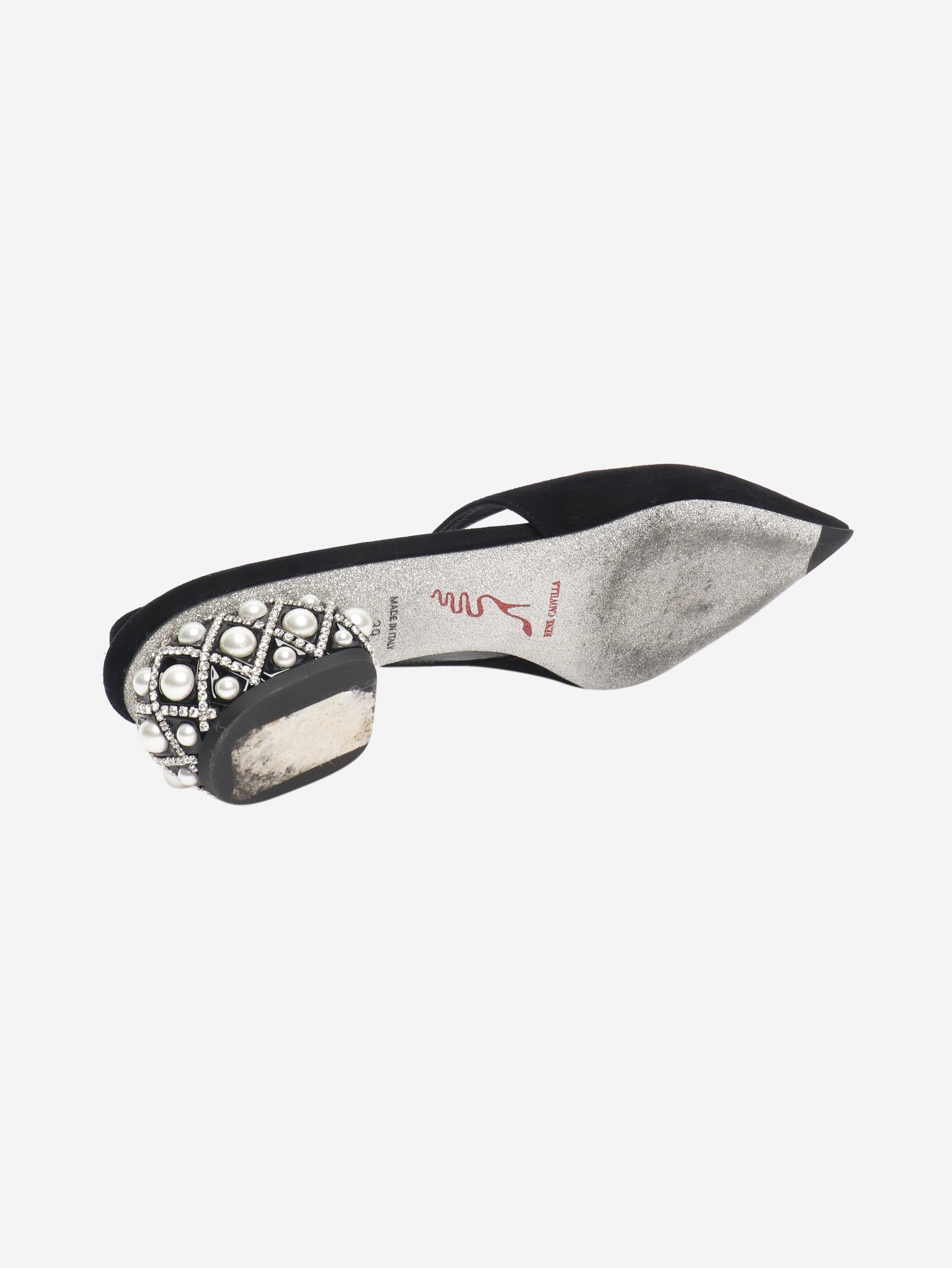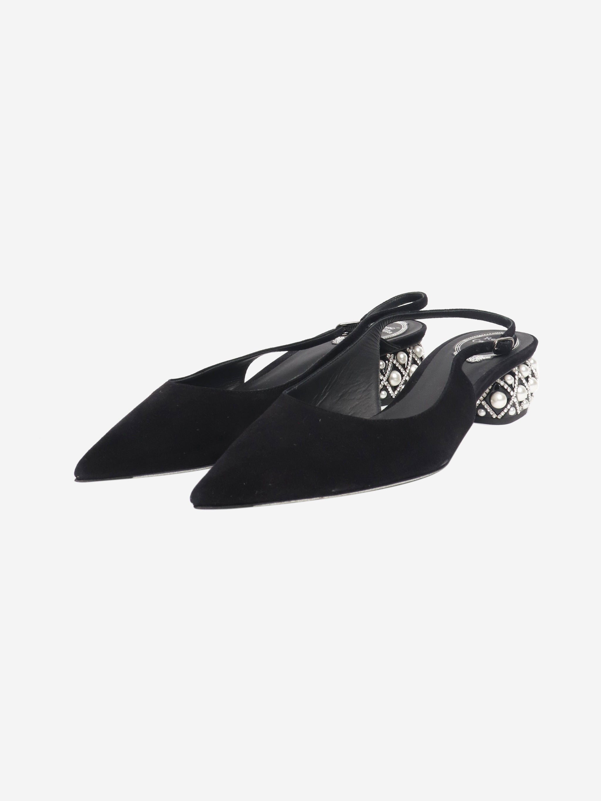 Black slingback flats with pearl detail - size EU 39 (UK 6)