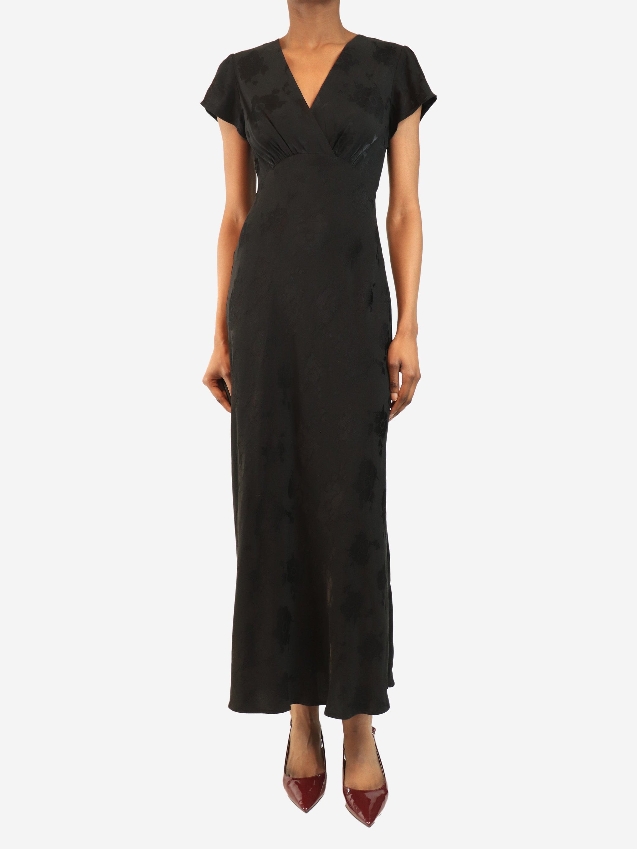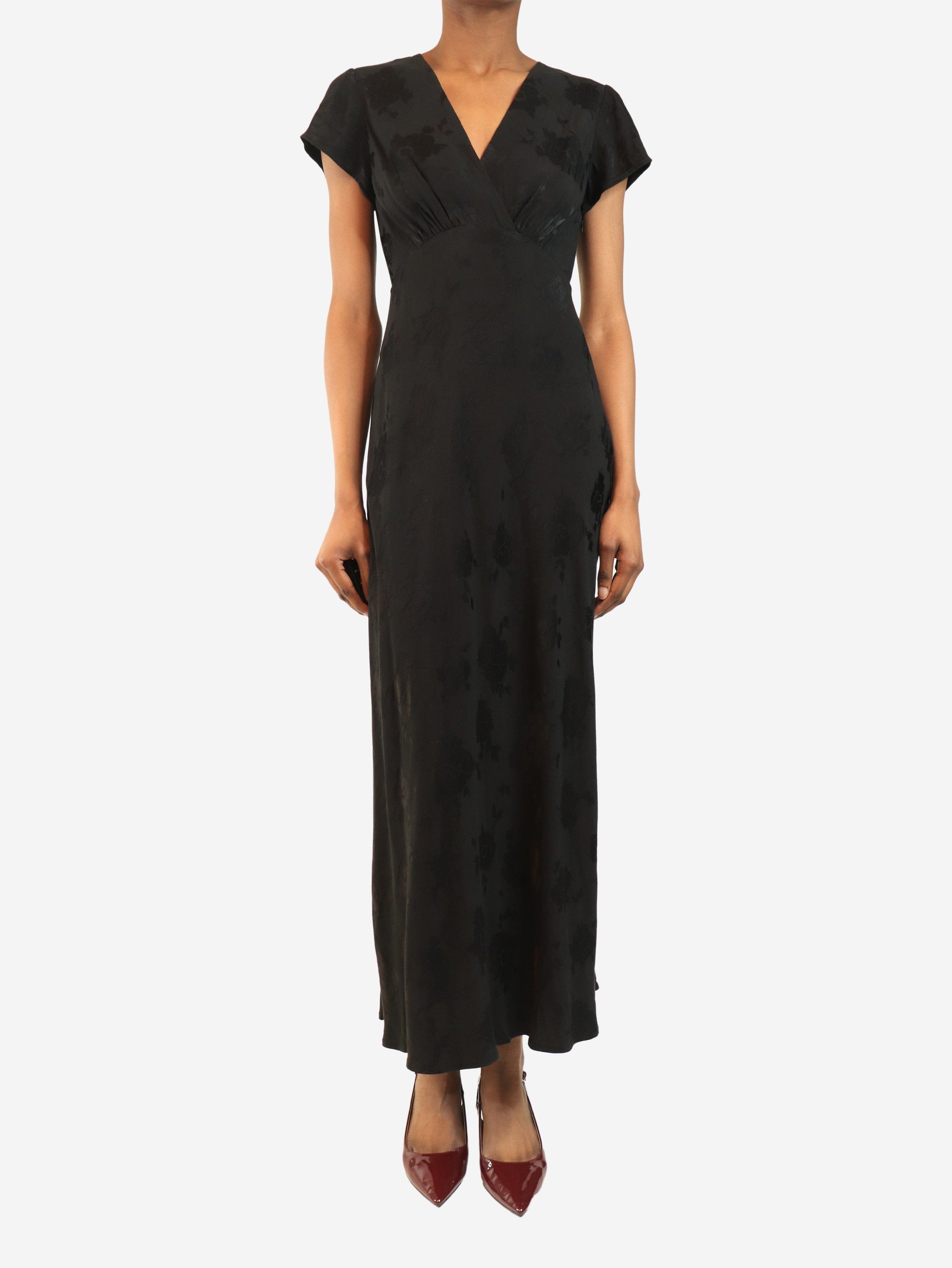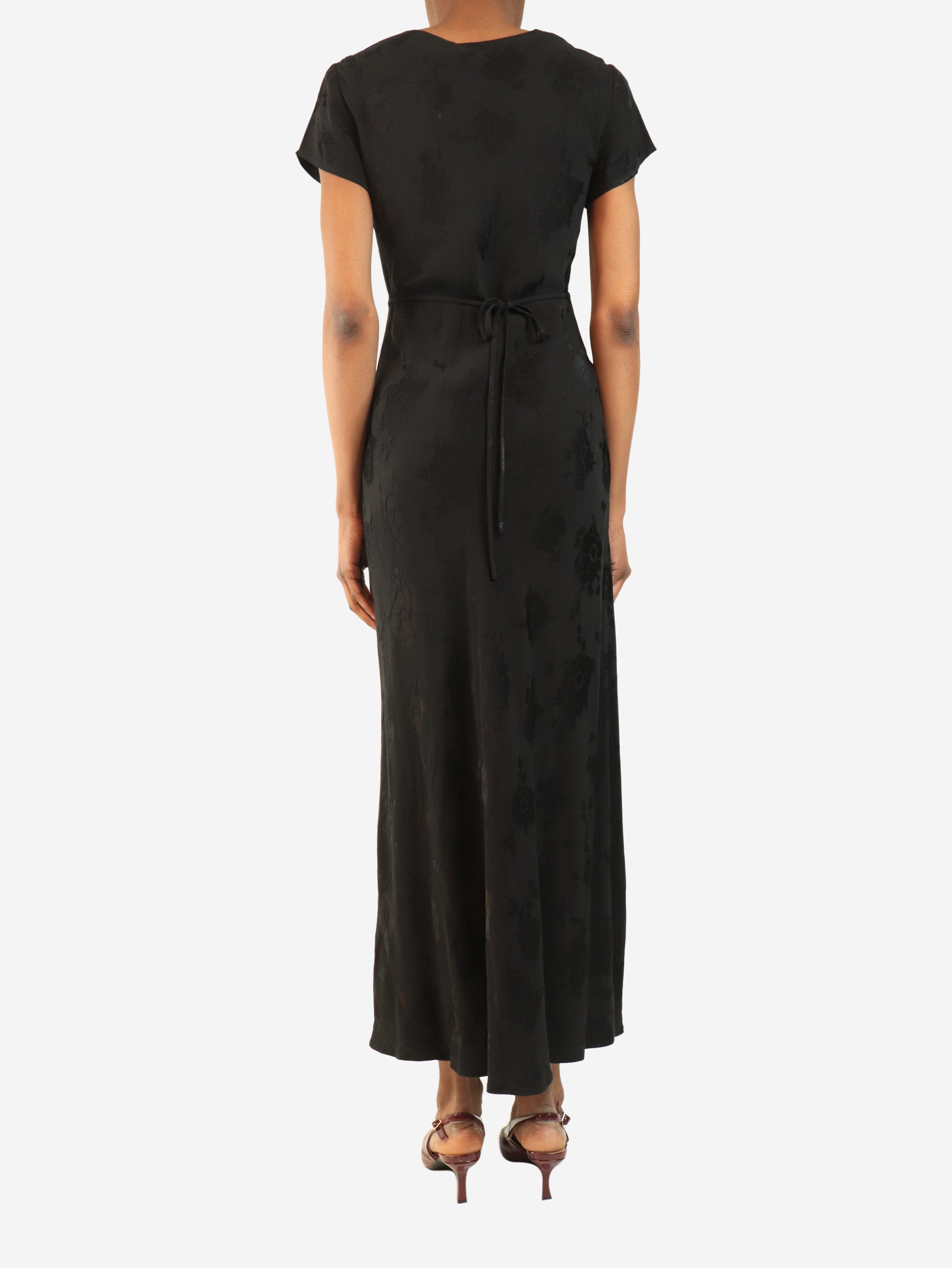 Black Clarissa poppy jacquard dress - size UK 6