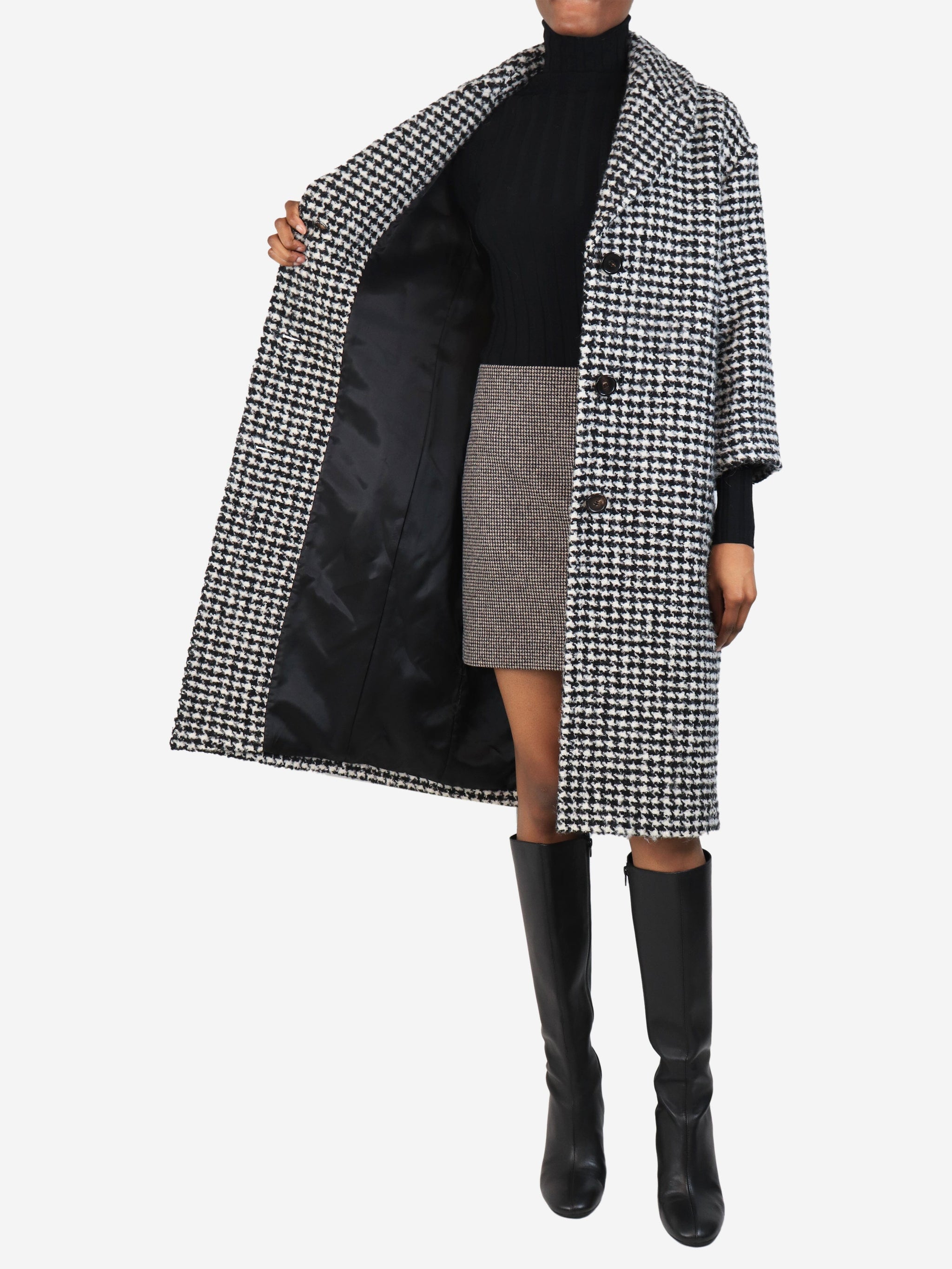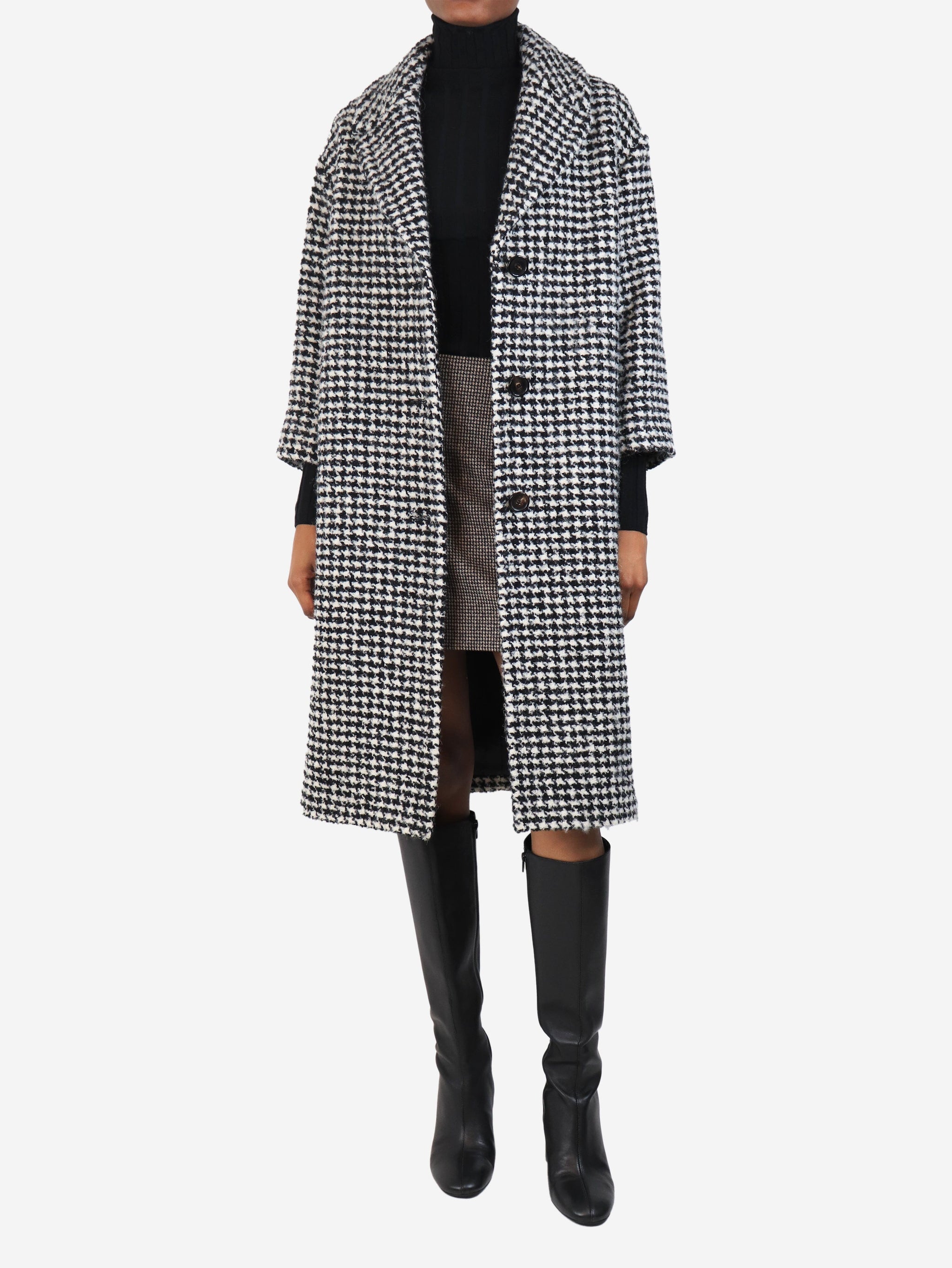 Black and white wool houndstooth coat - size UK 6