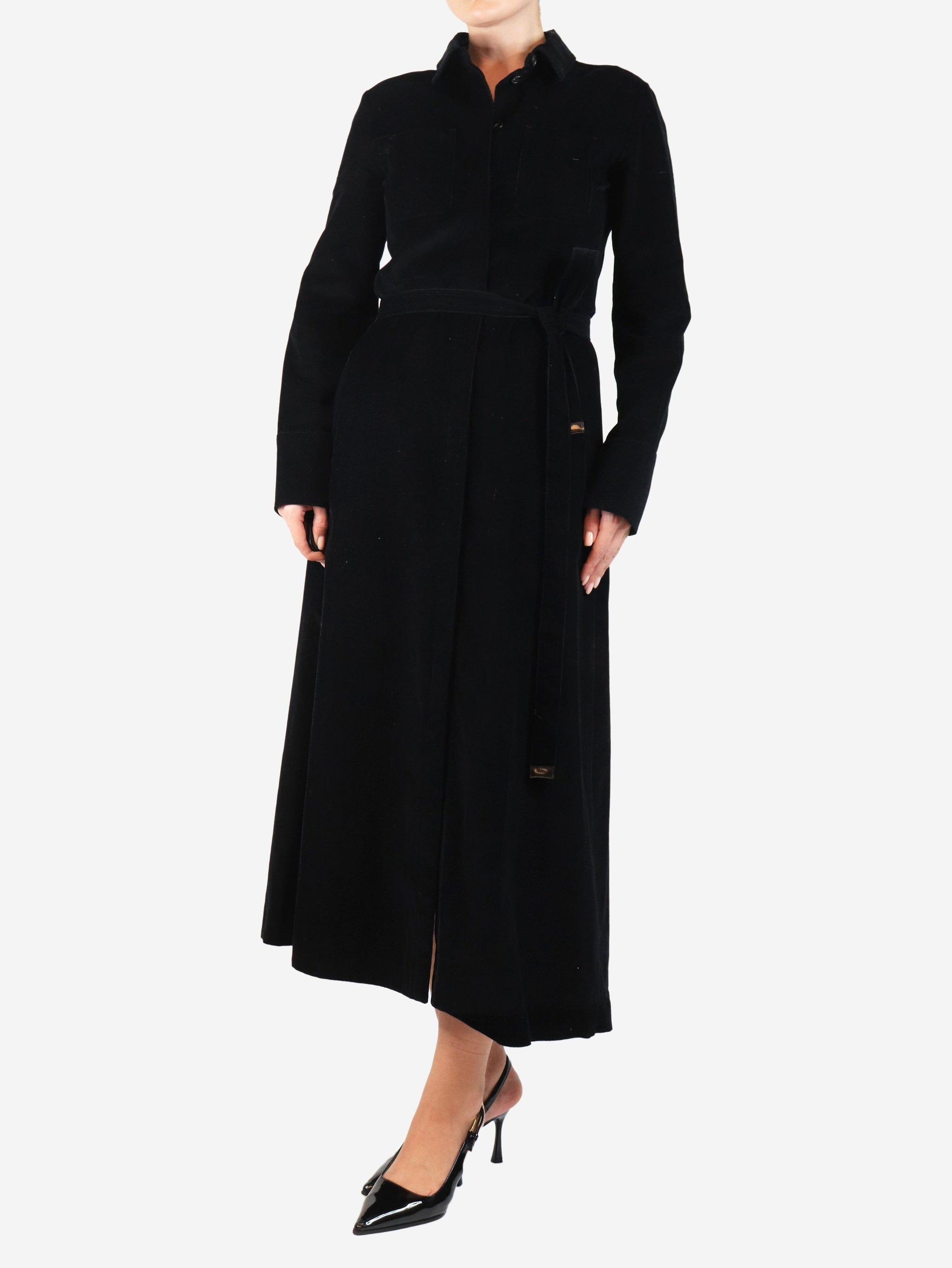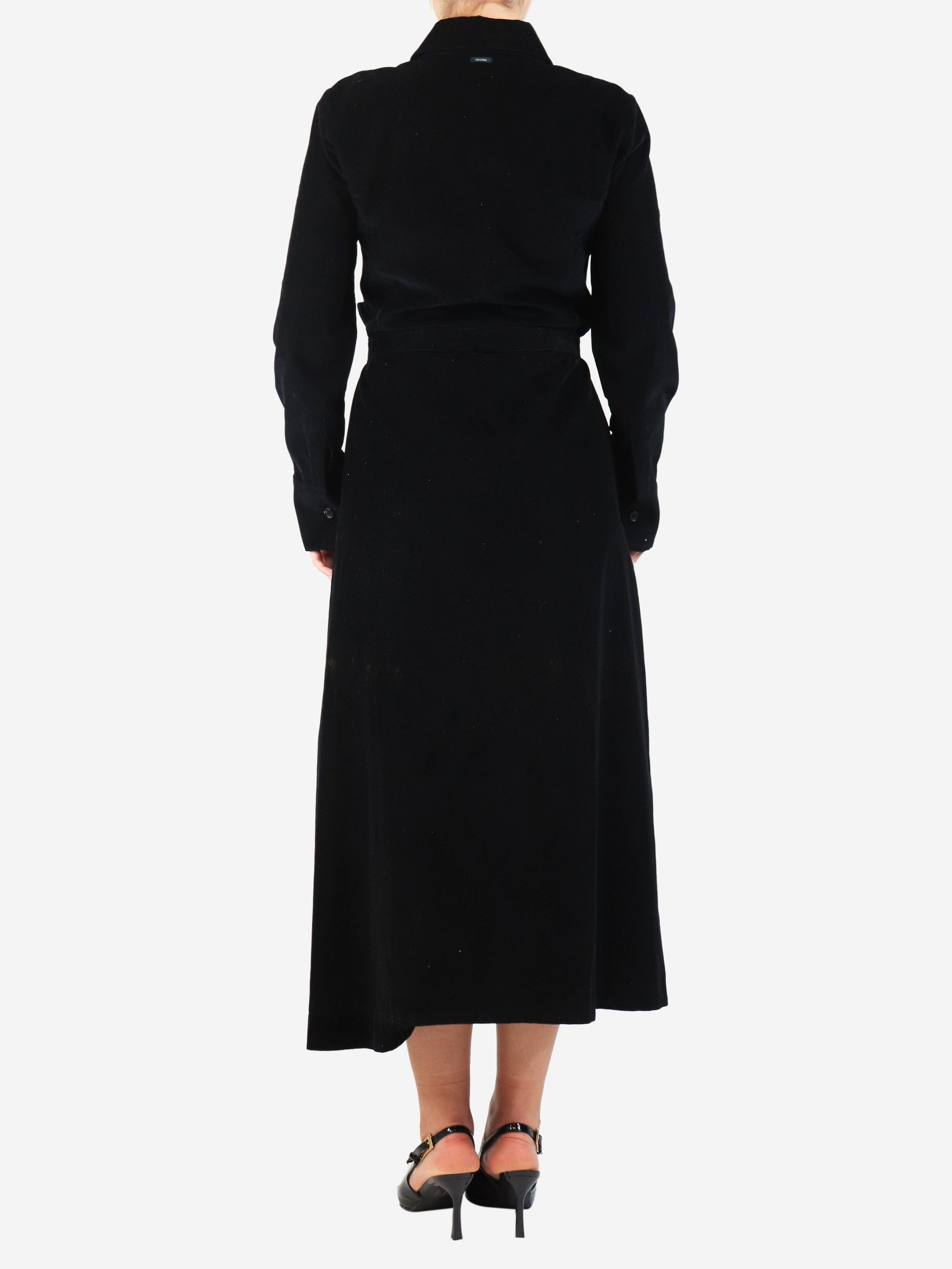 S Max Mara Black belted corduroy shirt dress - size UK 8