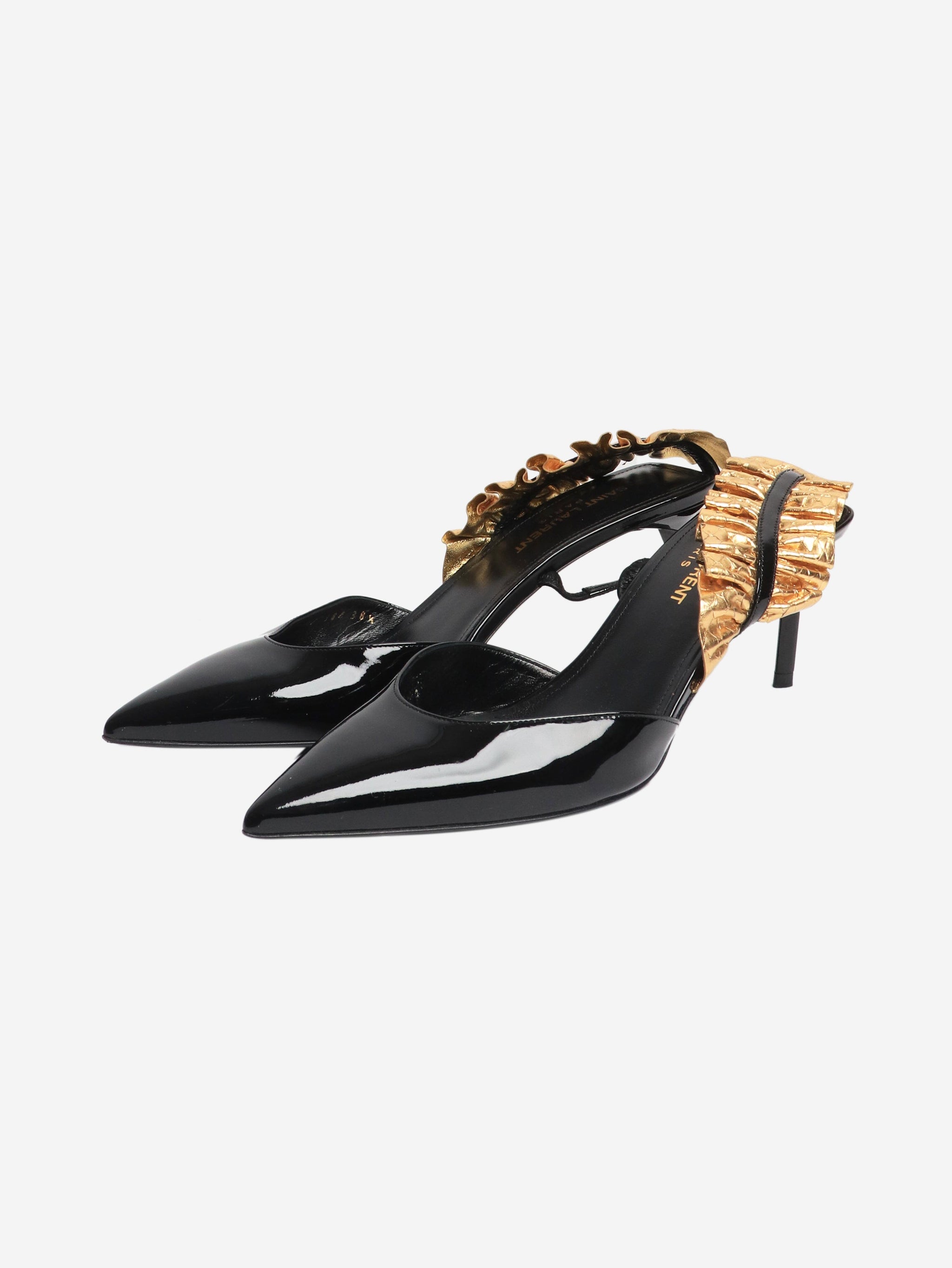 Black patent leather ruffle heels - size EU 38.5