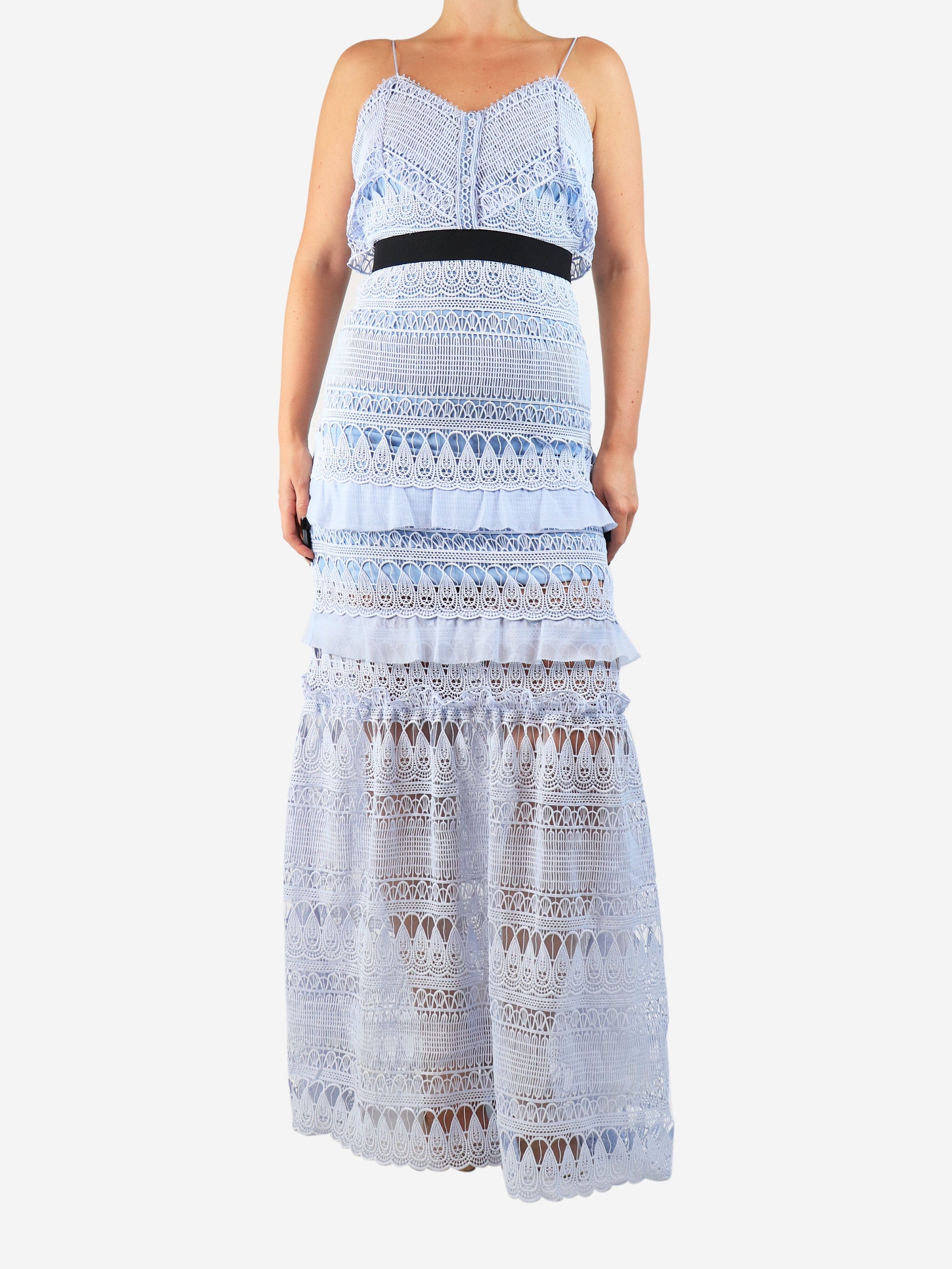 Baby blue lace embroidered midi dress - size UK 10