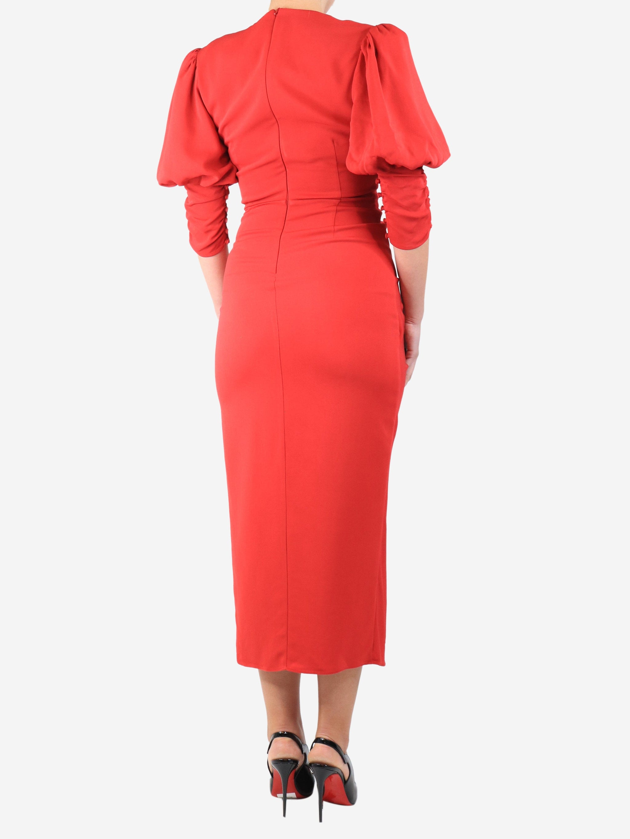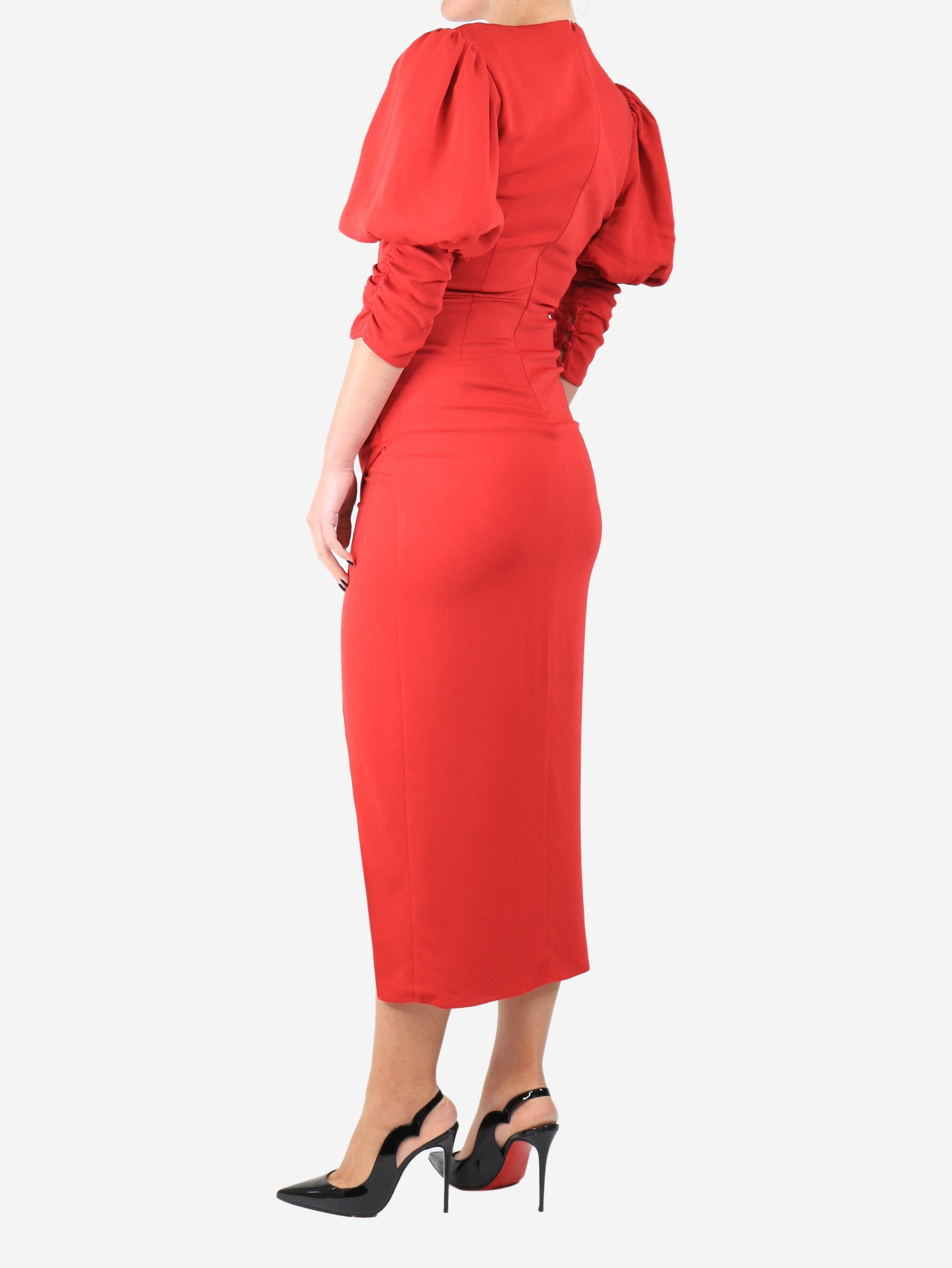 Red gathered midi dress - size UK 8