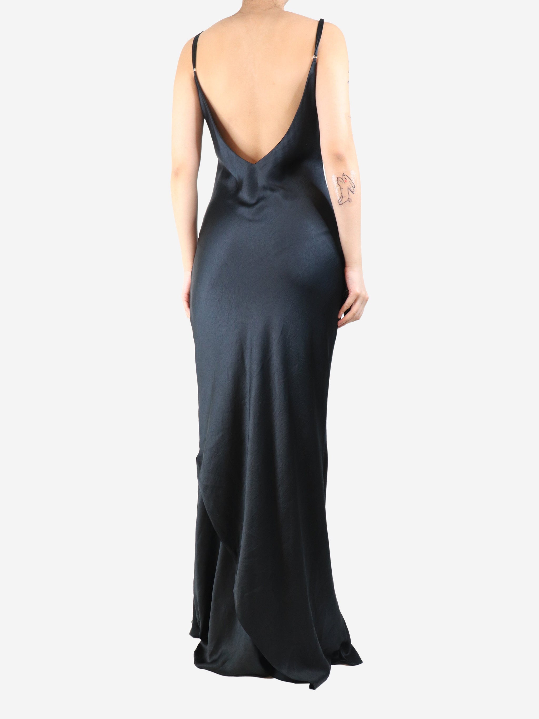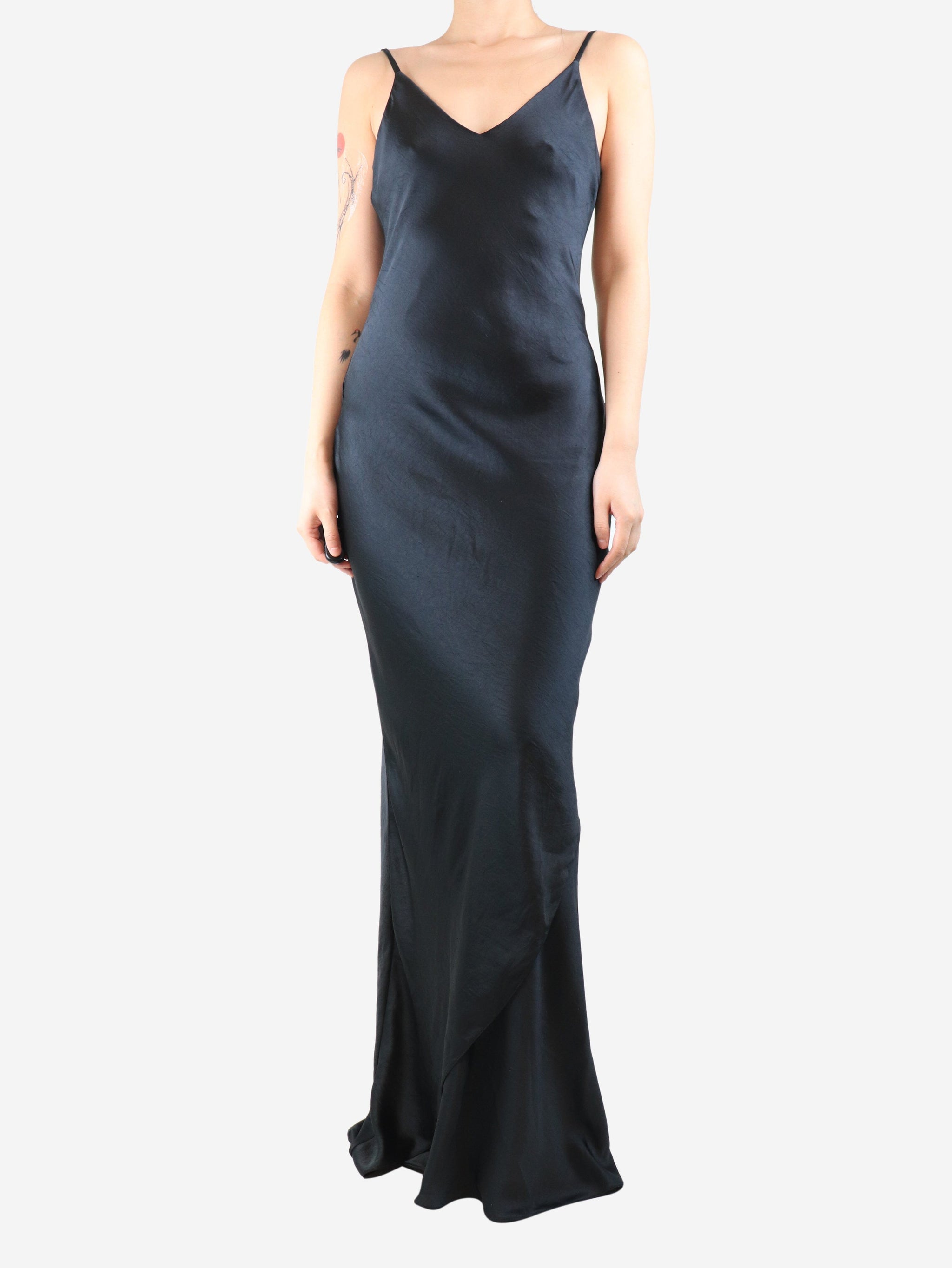 Black satin maxi slip dress - size UK 12