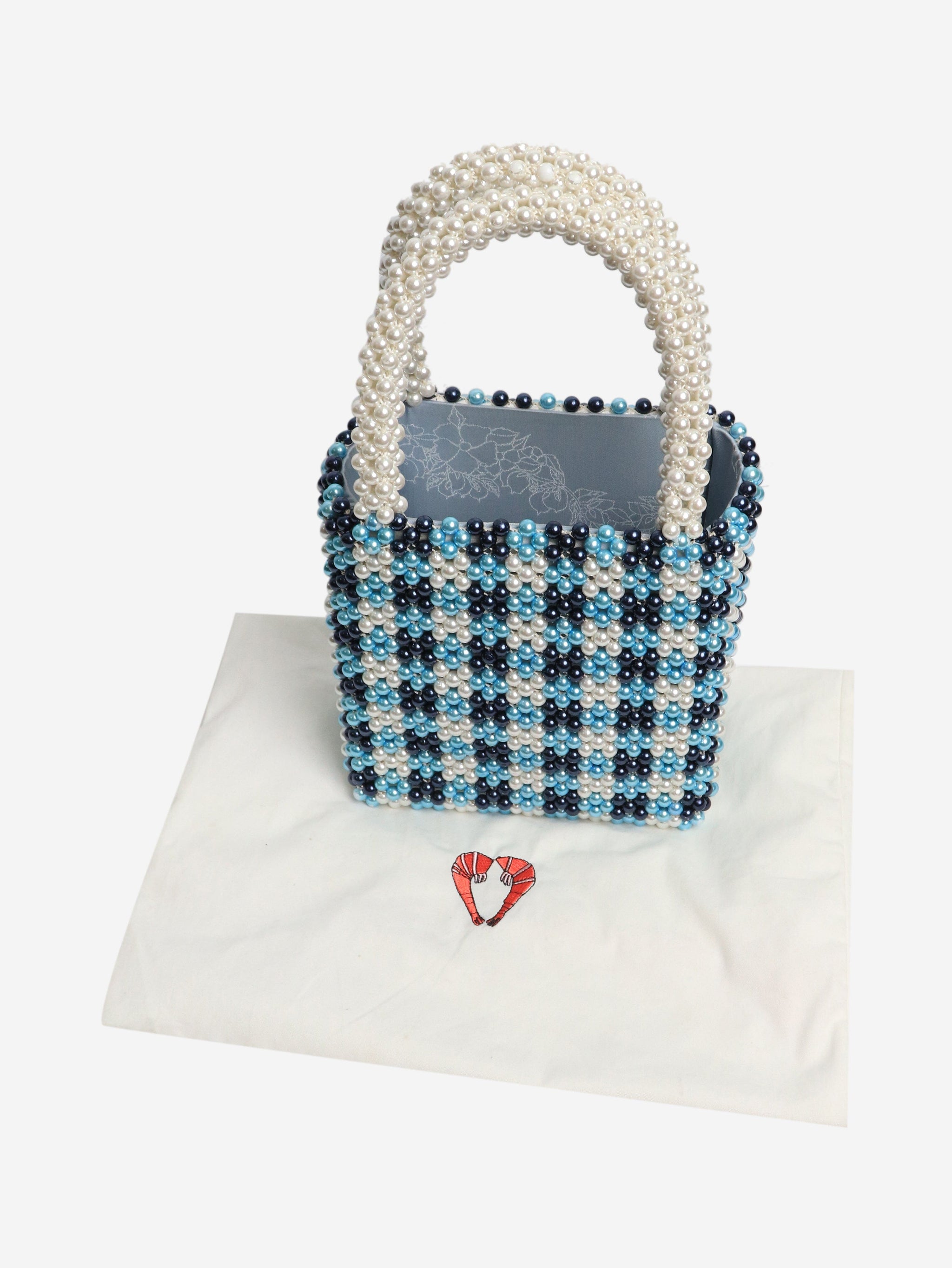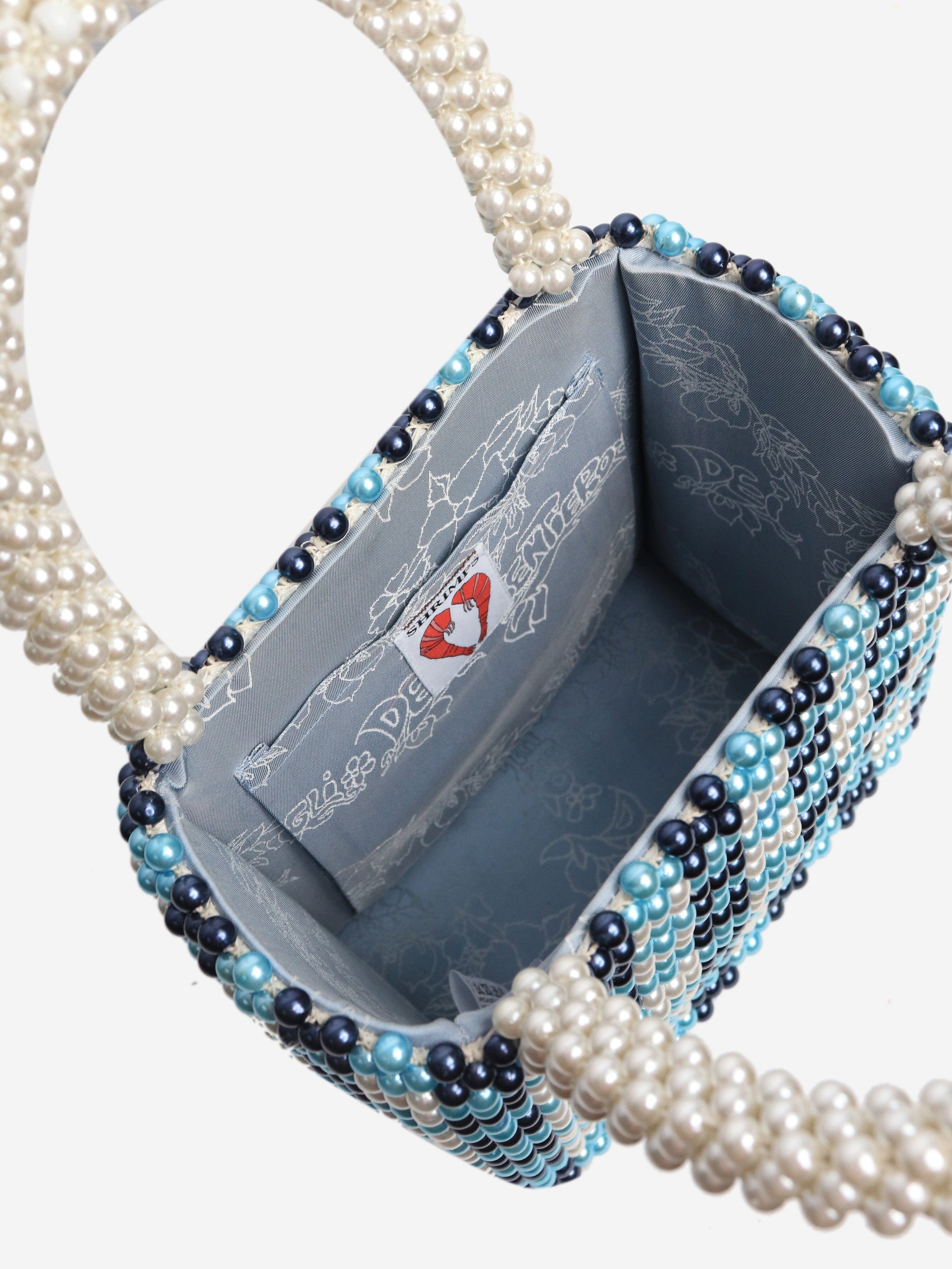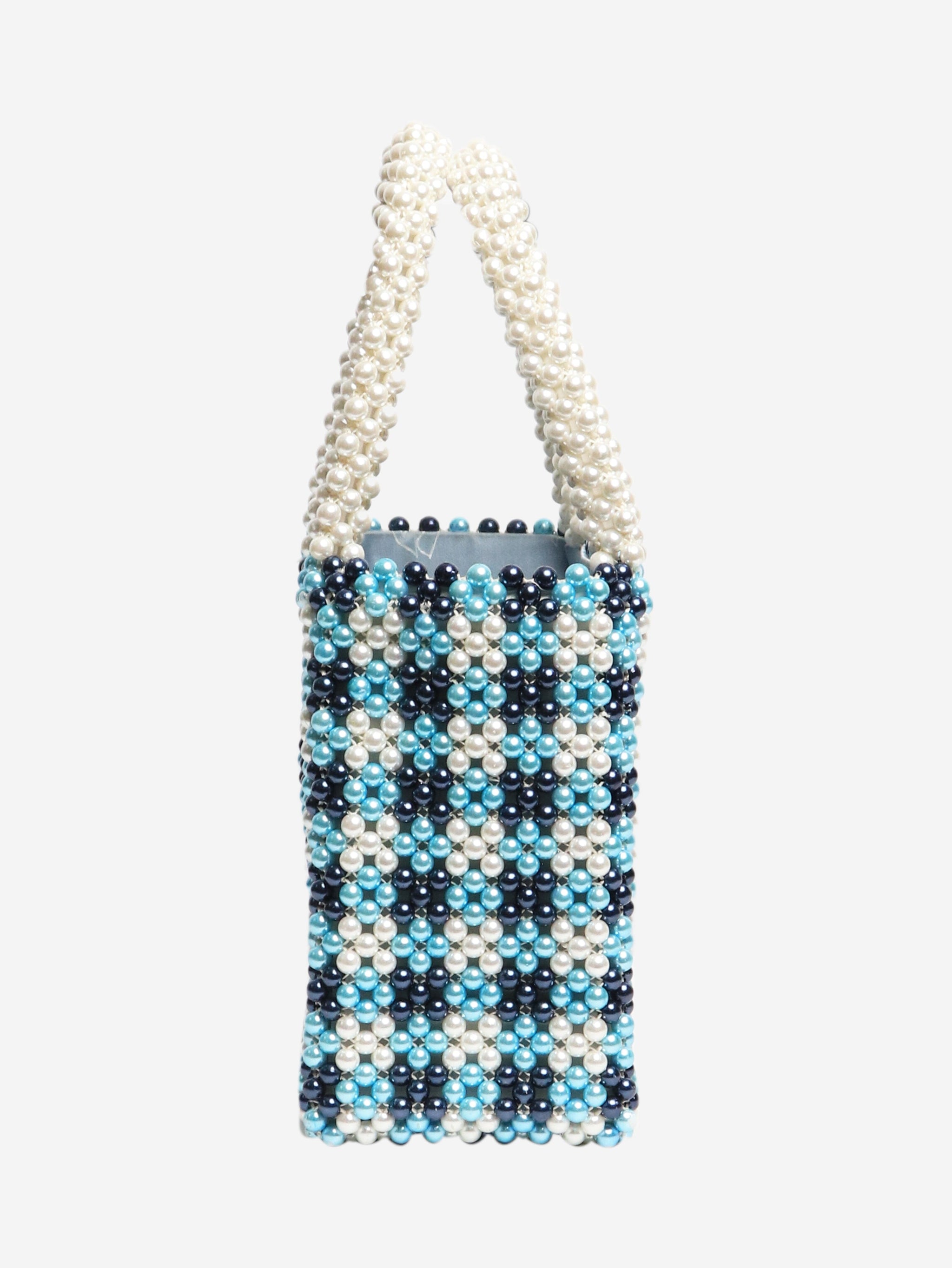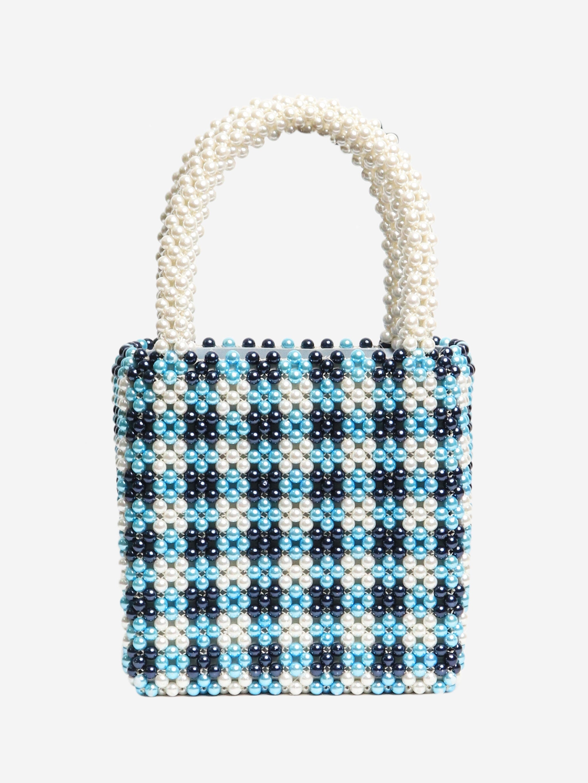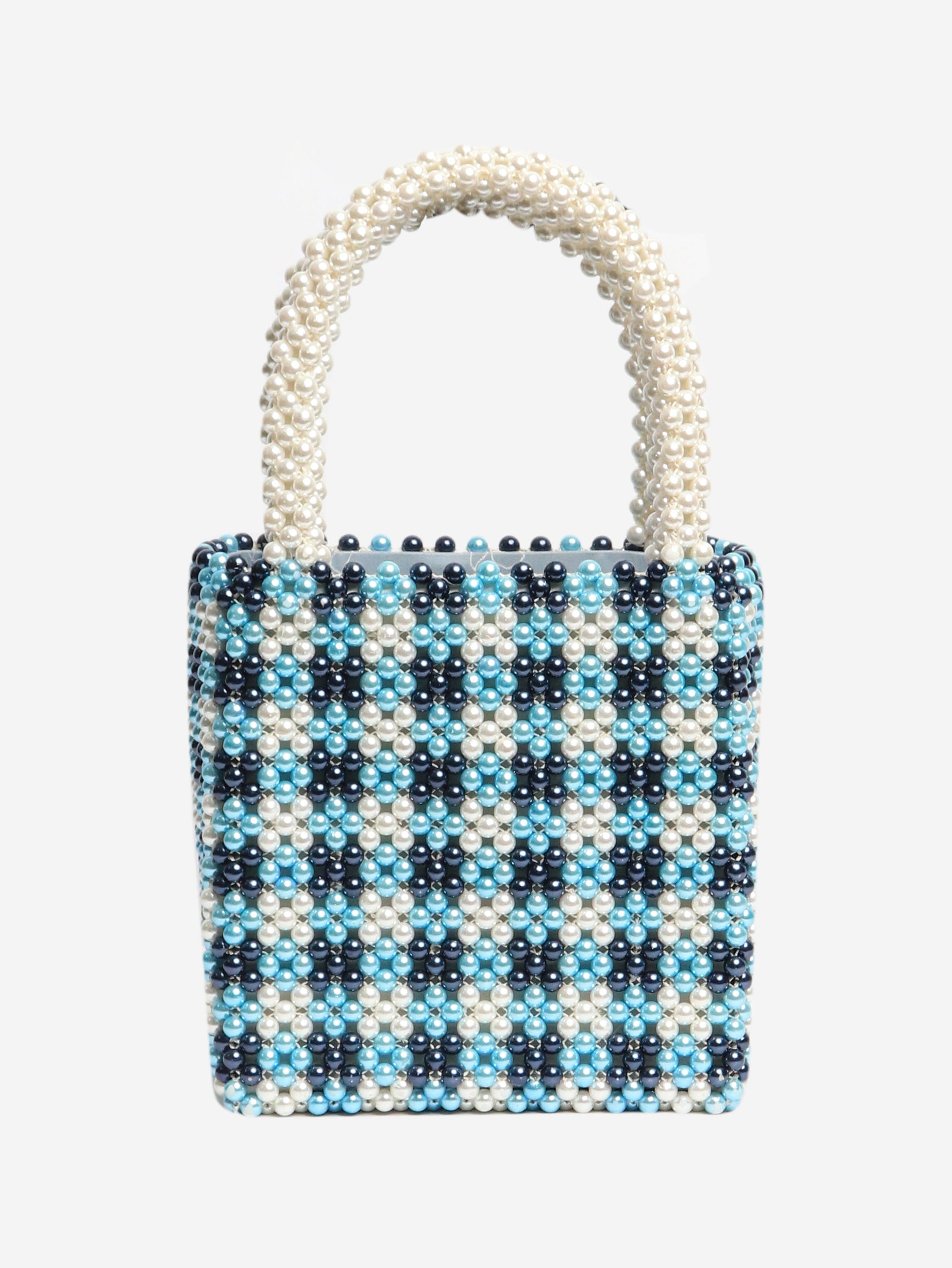 Blue and white pearl bag