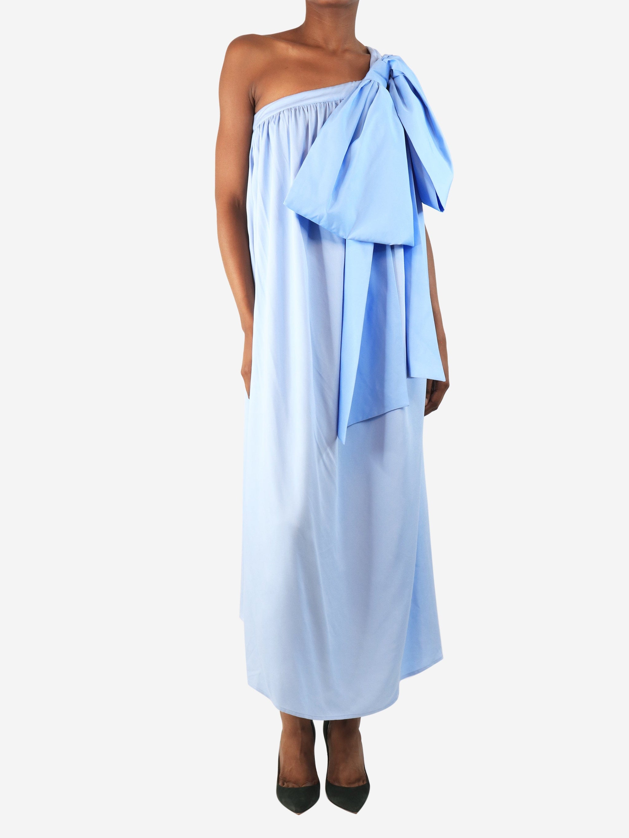 Powder blue one-shoulder bow dress - size XS