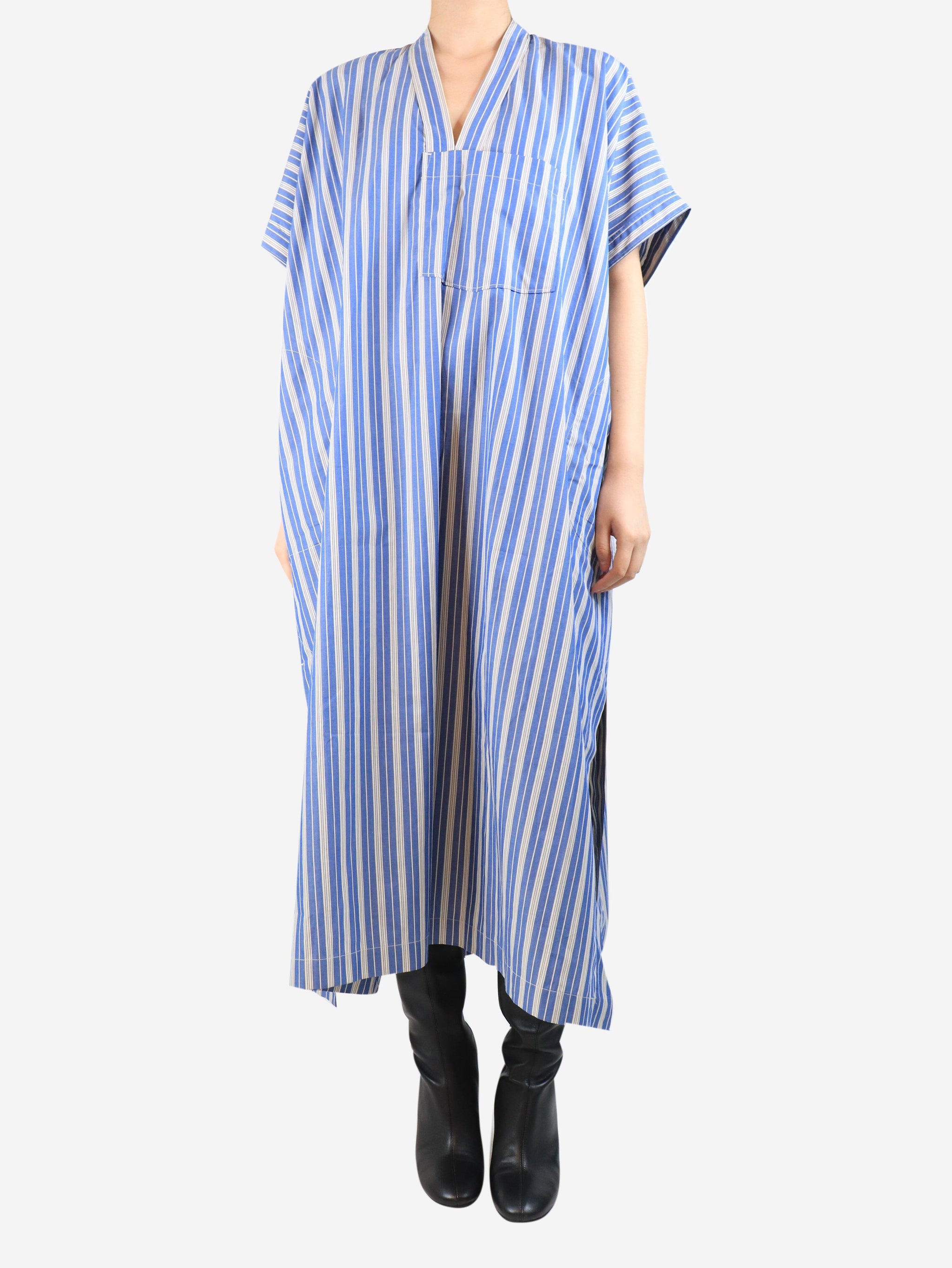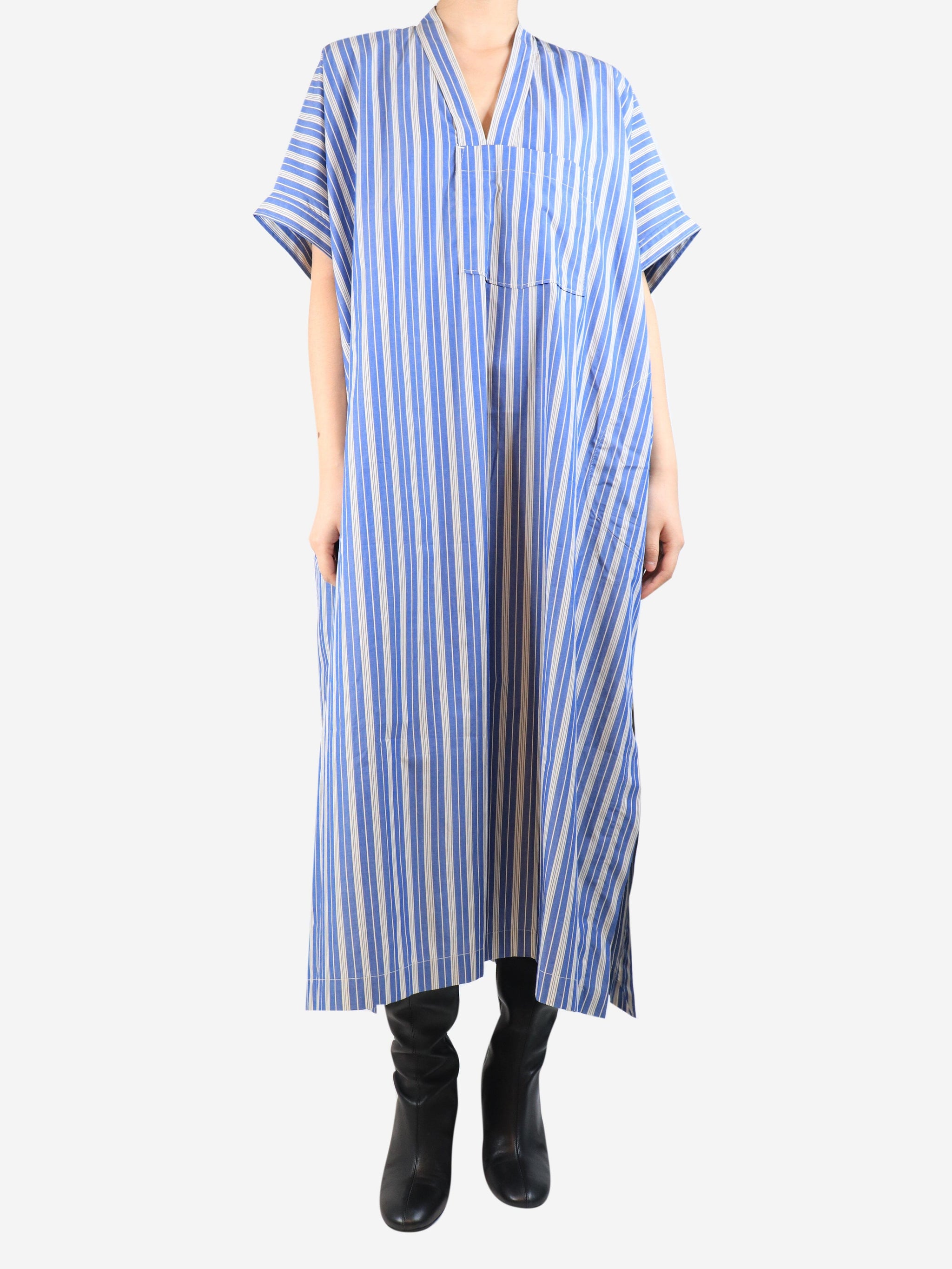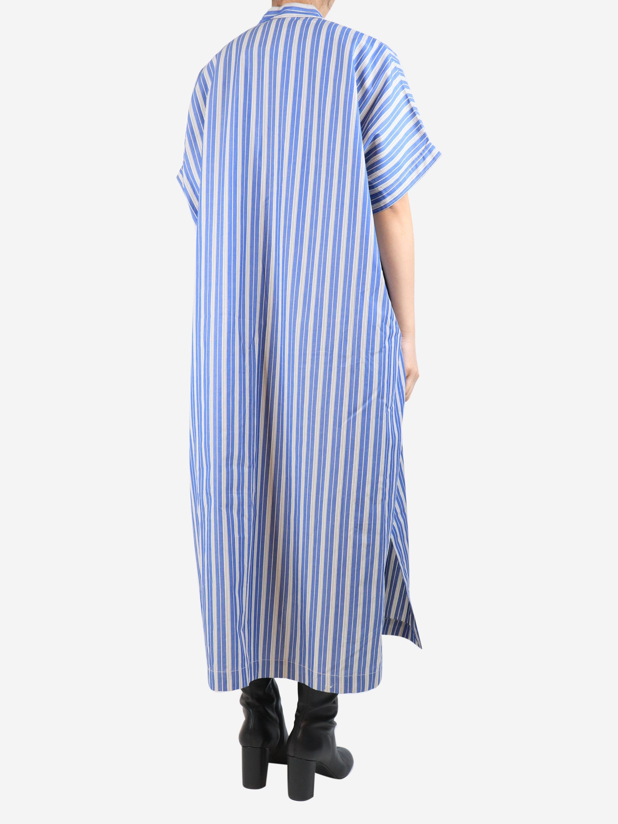Blue and white Arachon striped midi dress - size UK 8