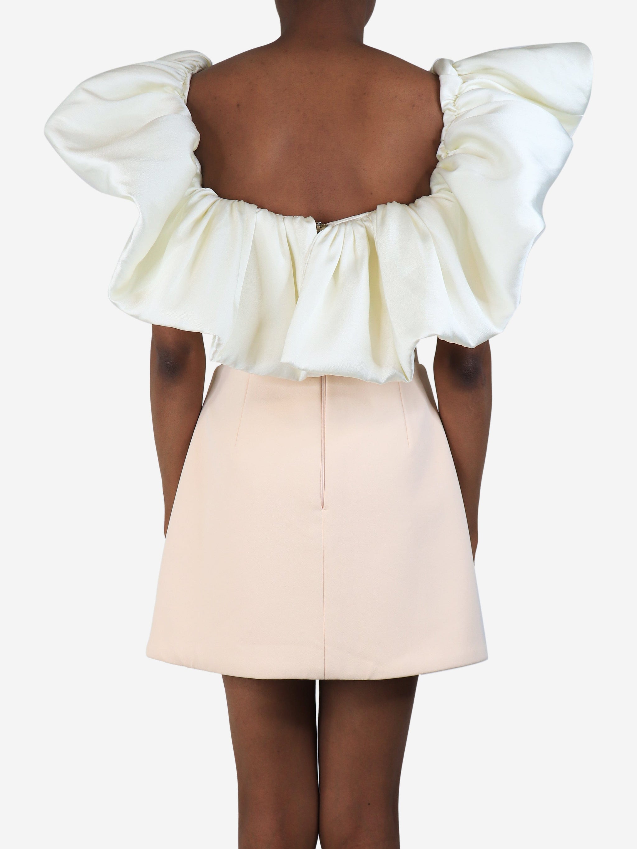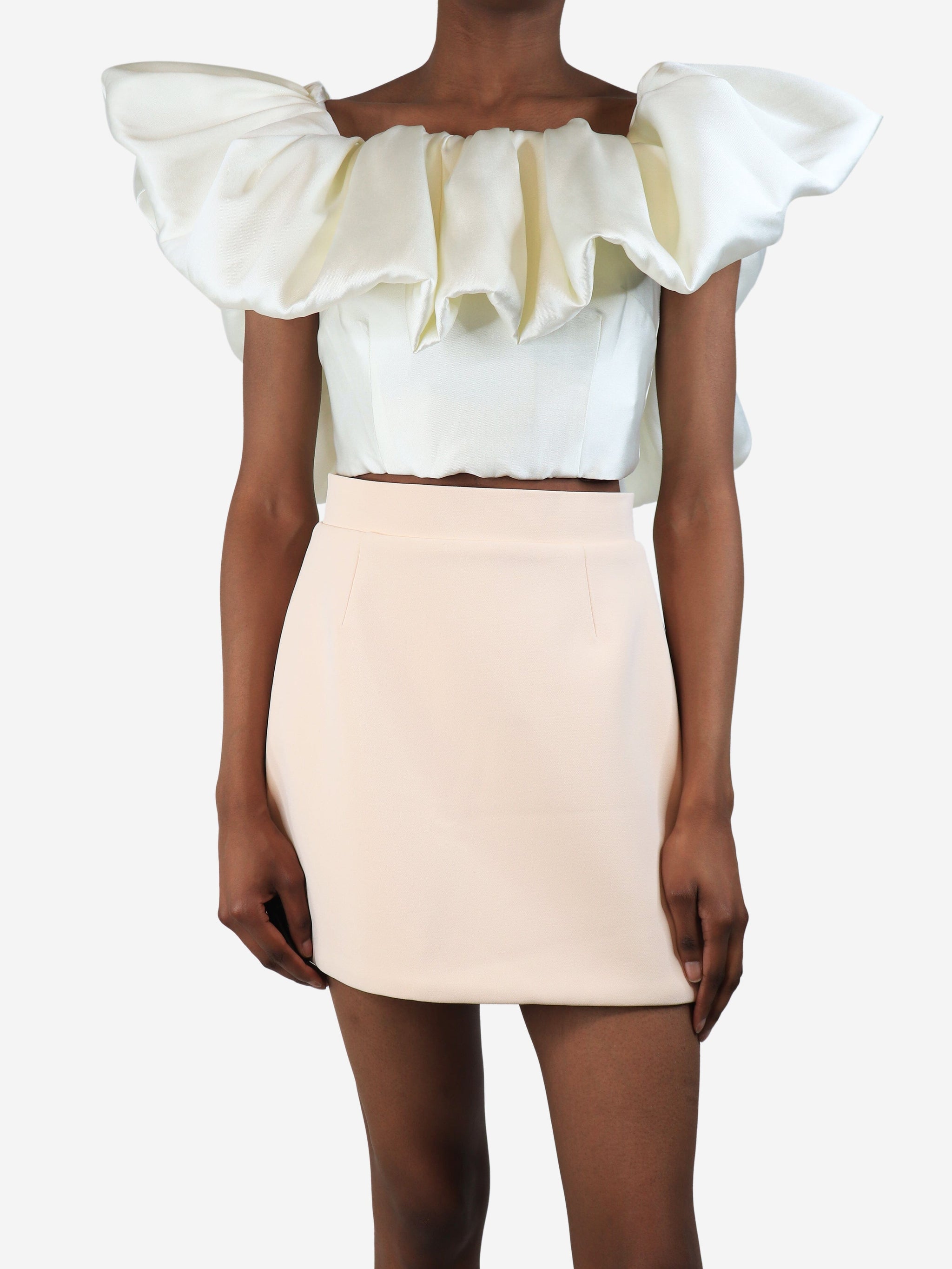 Cream off-shoulder puff-sleeved crop-top - size UK 8
