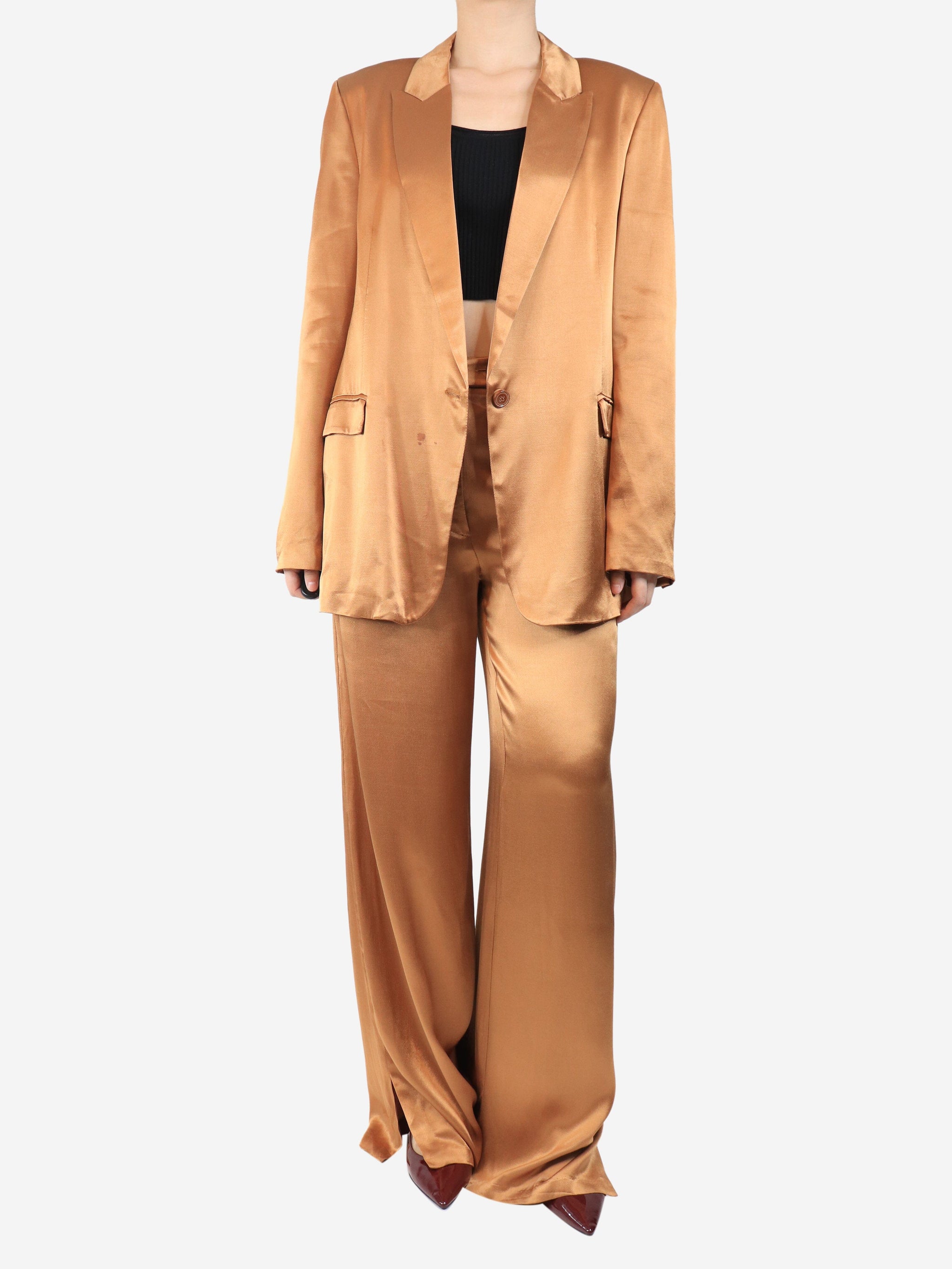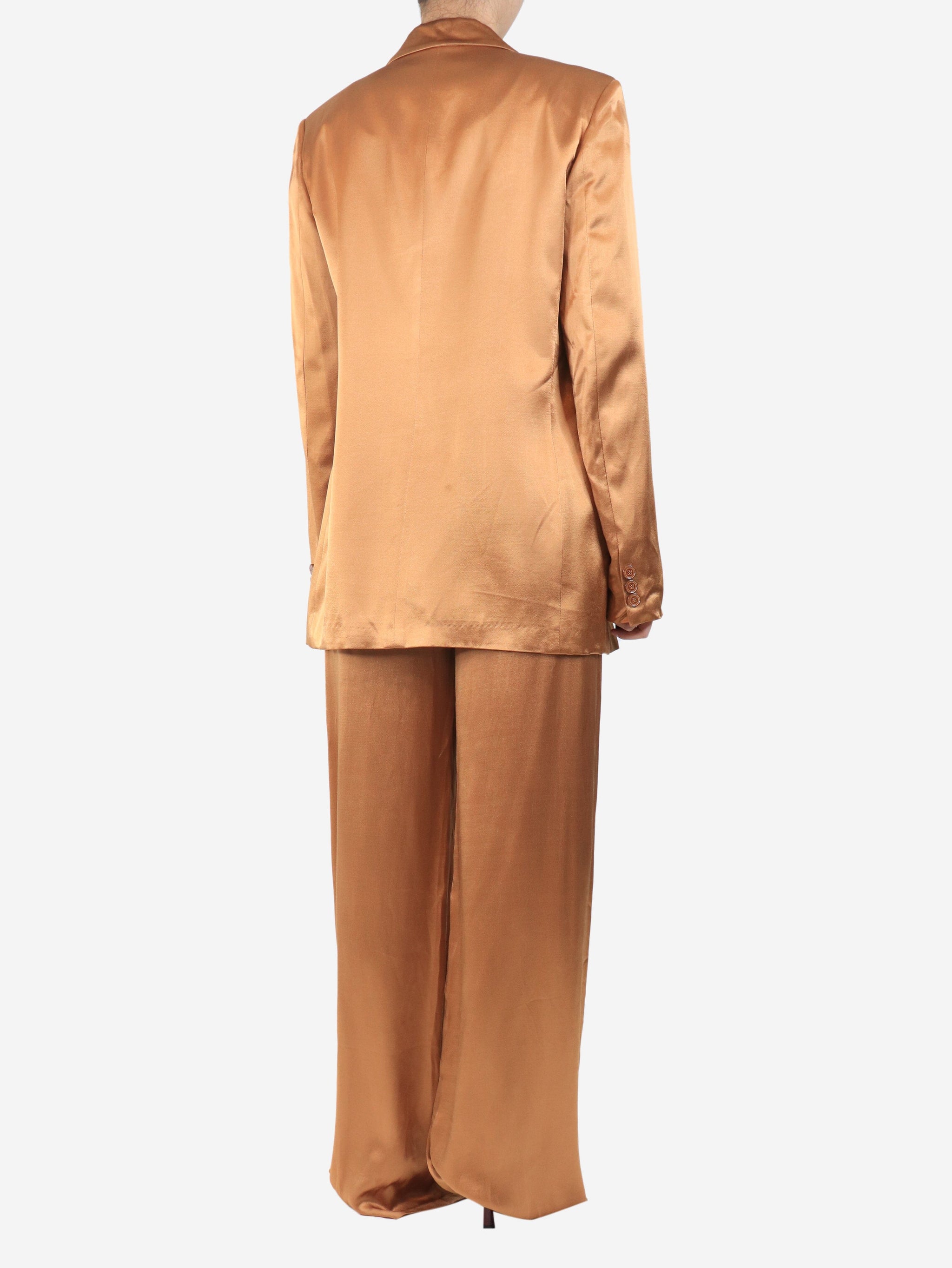 Brown sateen two piece suit - size UK 12