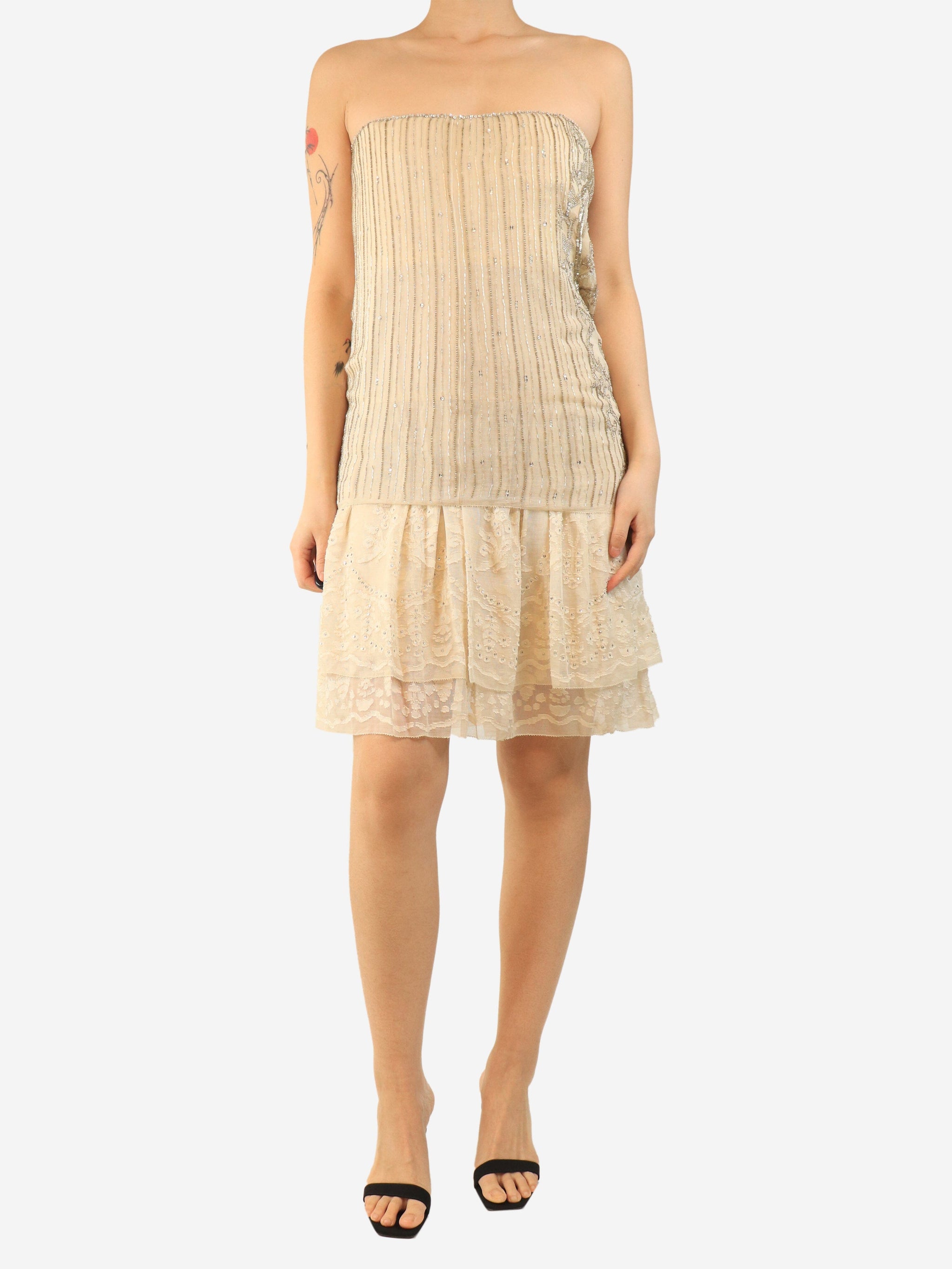 Spring 2007 cream strapless sequin mini dress - size UK 10