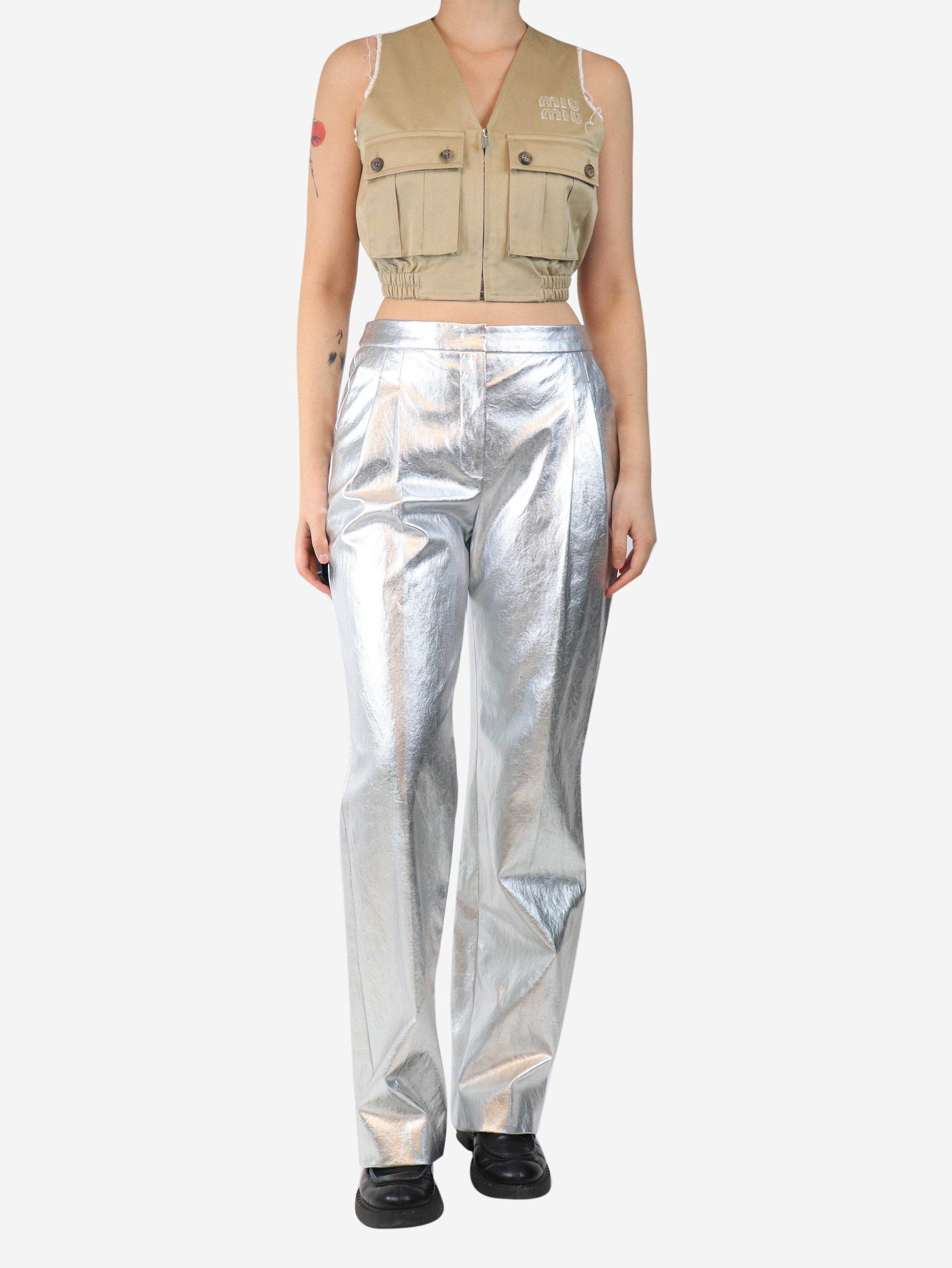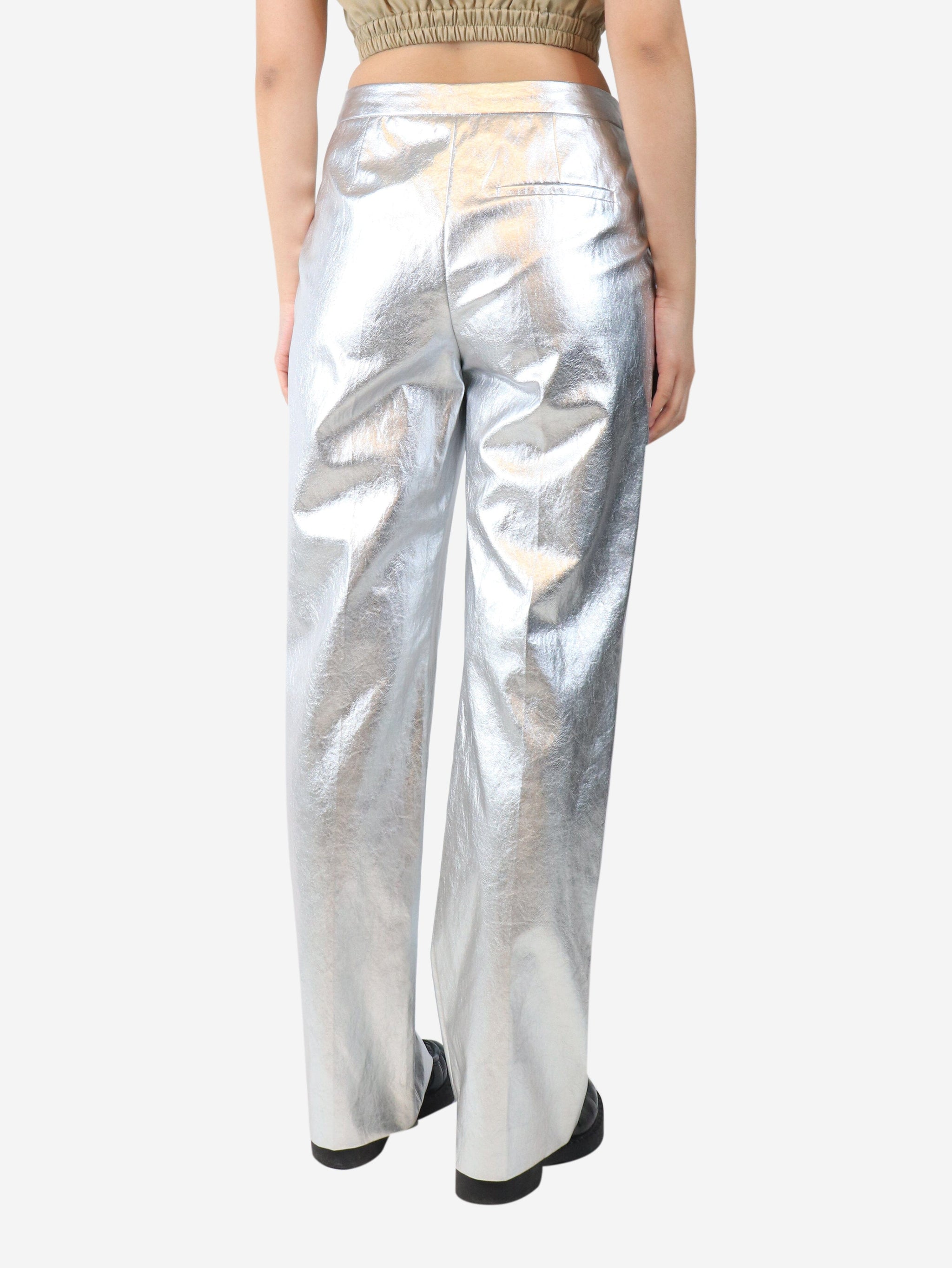 Silver metallic faux leather trousers - size UK 8