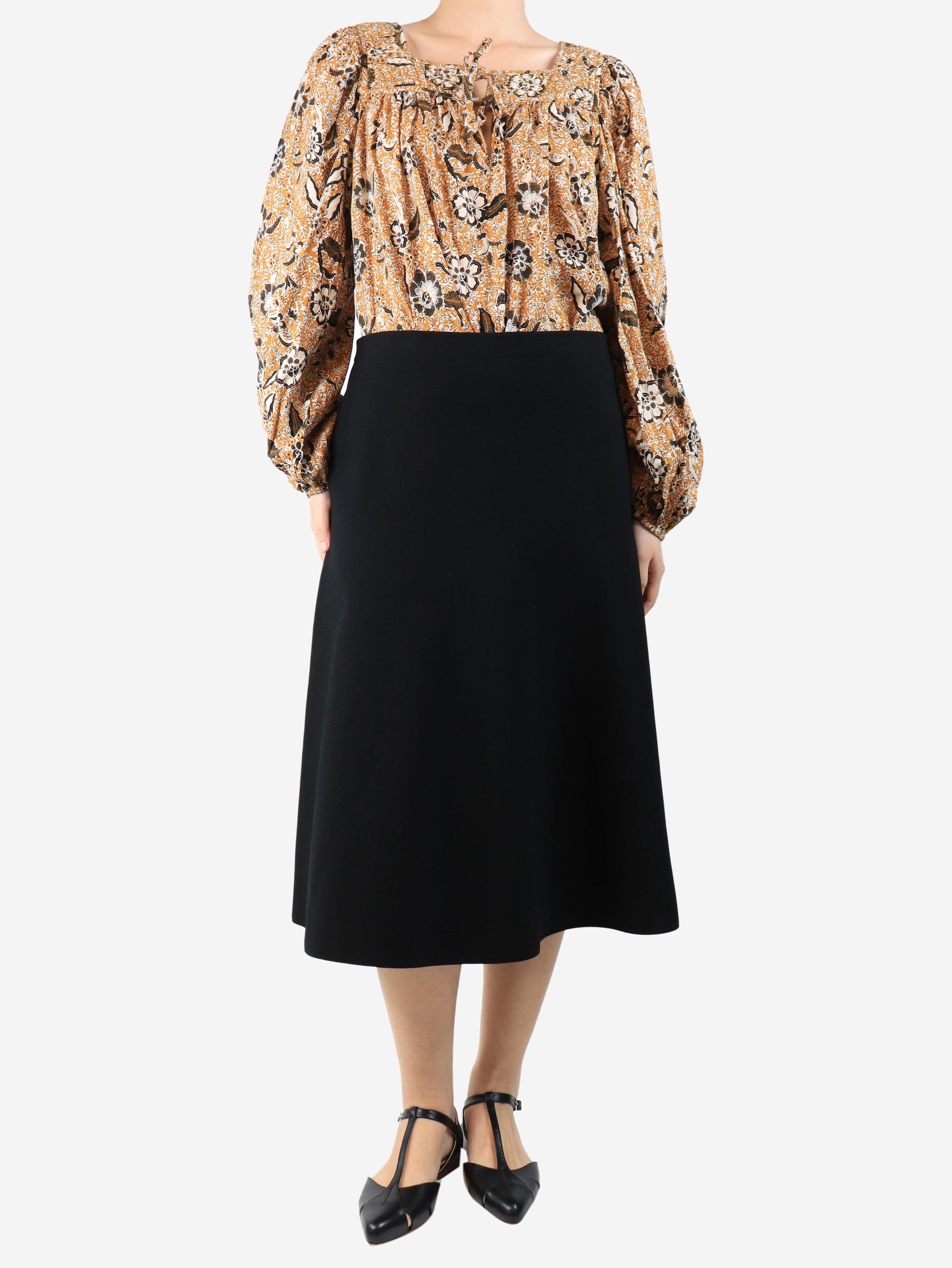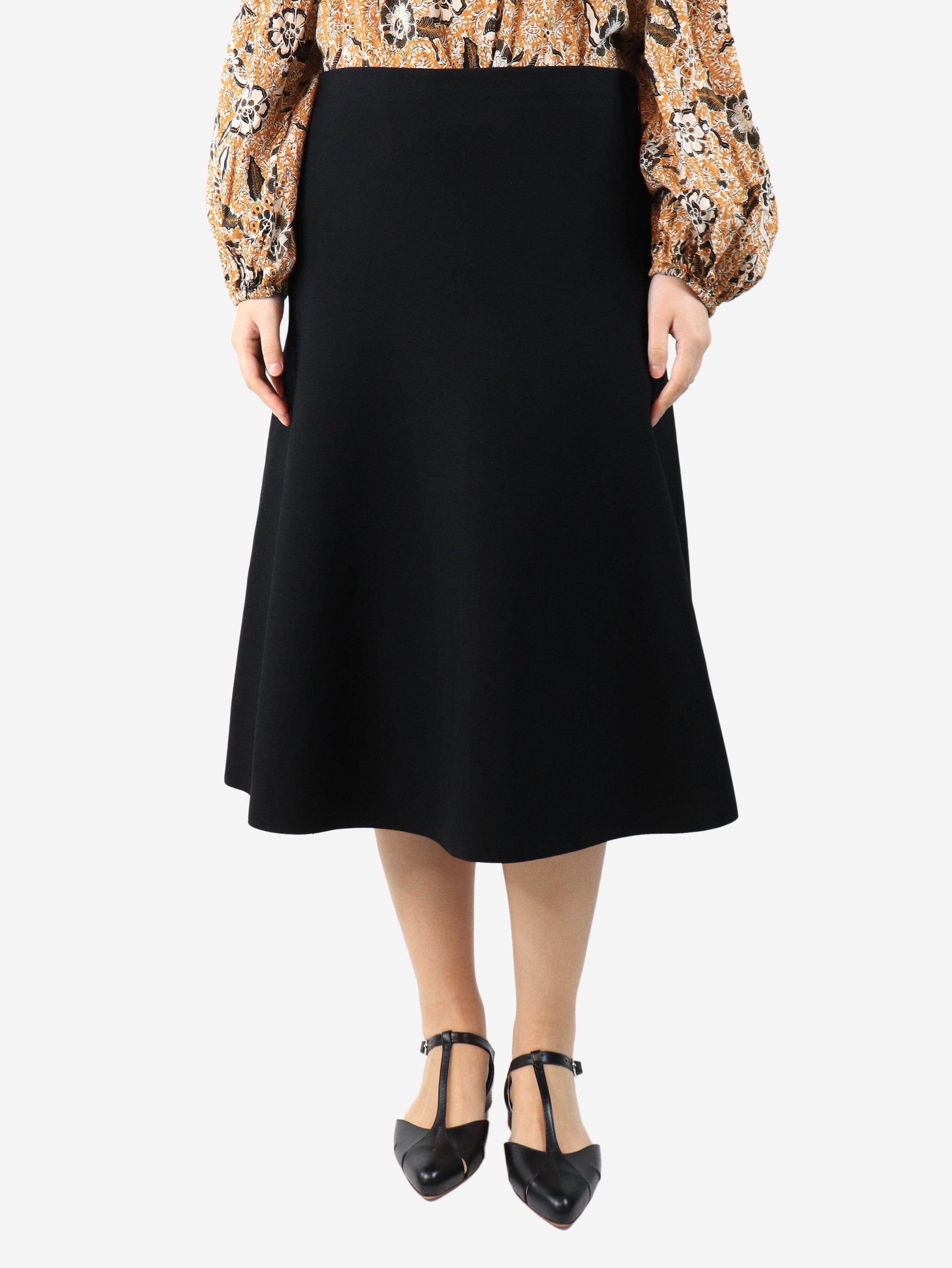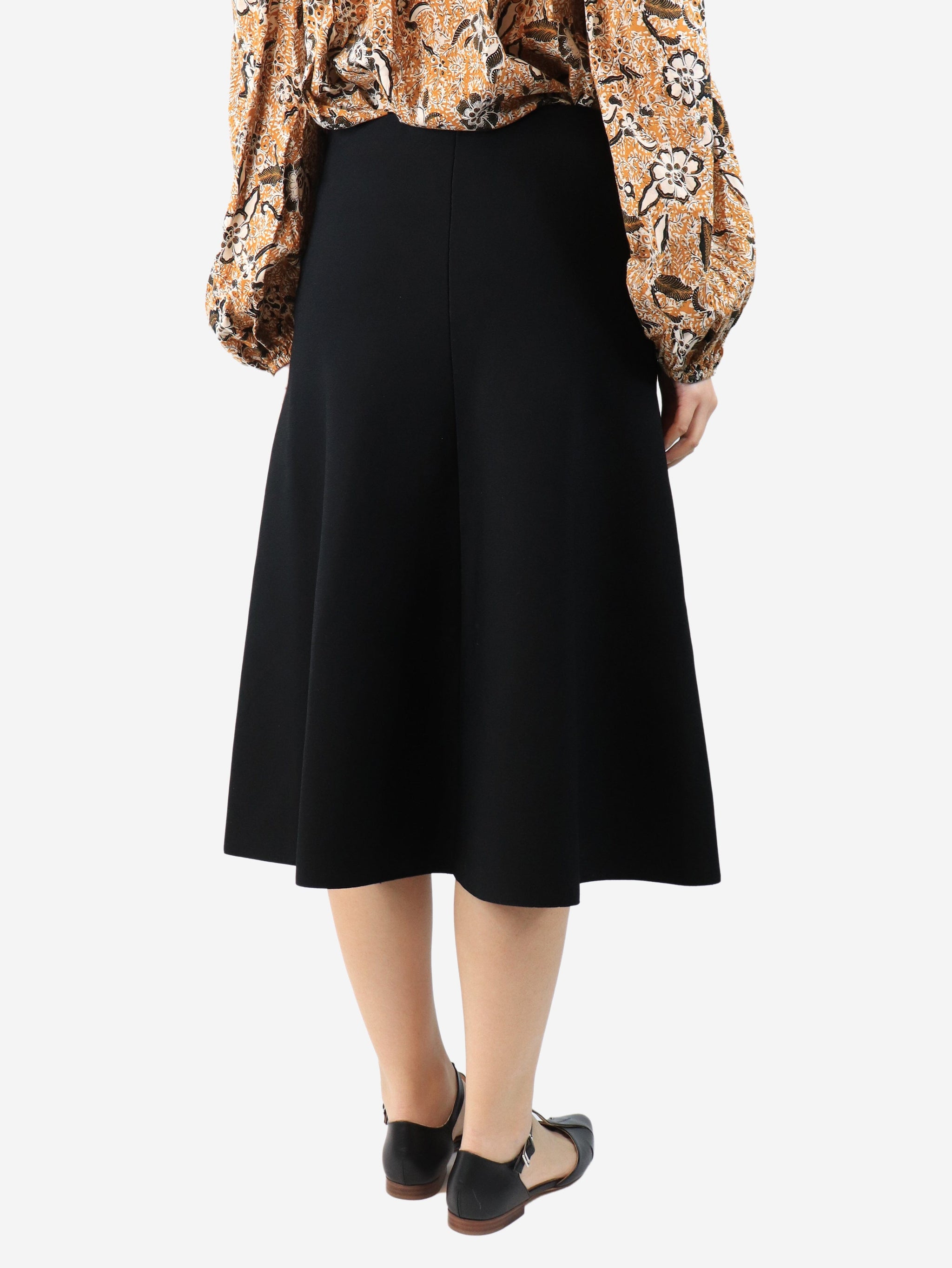 Black flared crepe midi skirt - size L