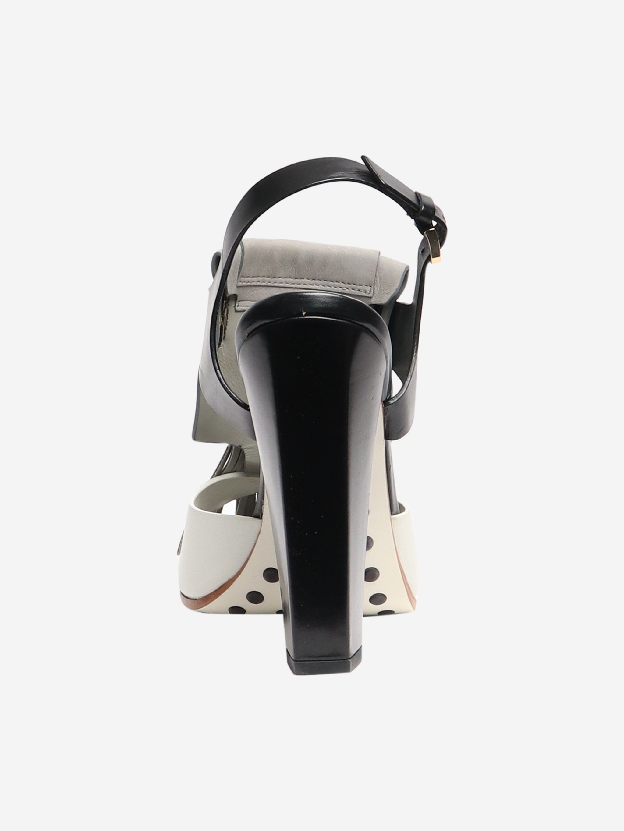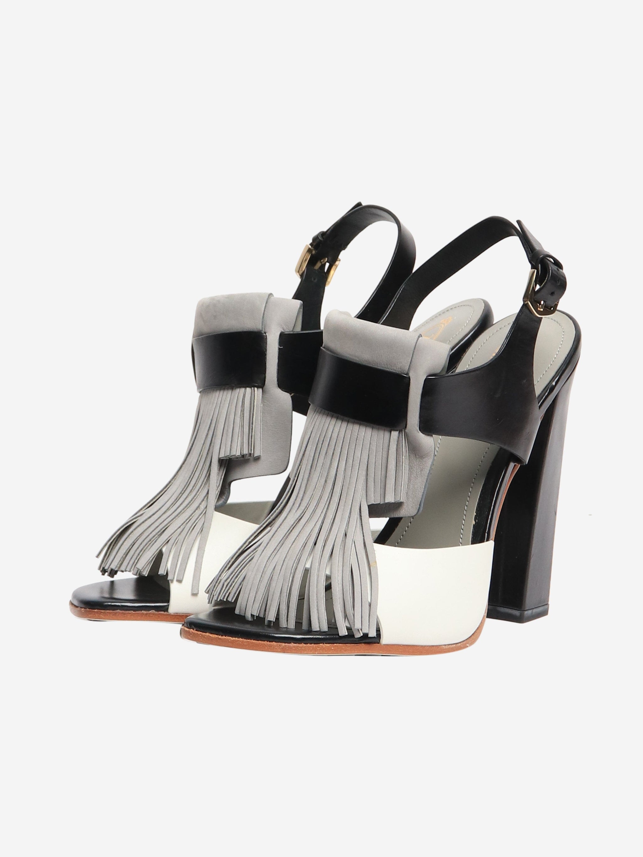 Grey and black leather fringe detail sandals - size EU 37.5 (UK 4.5)