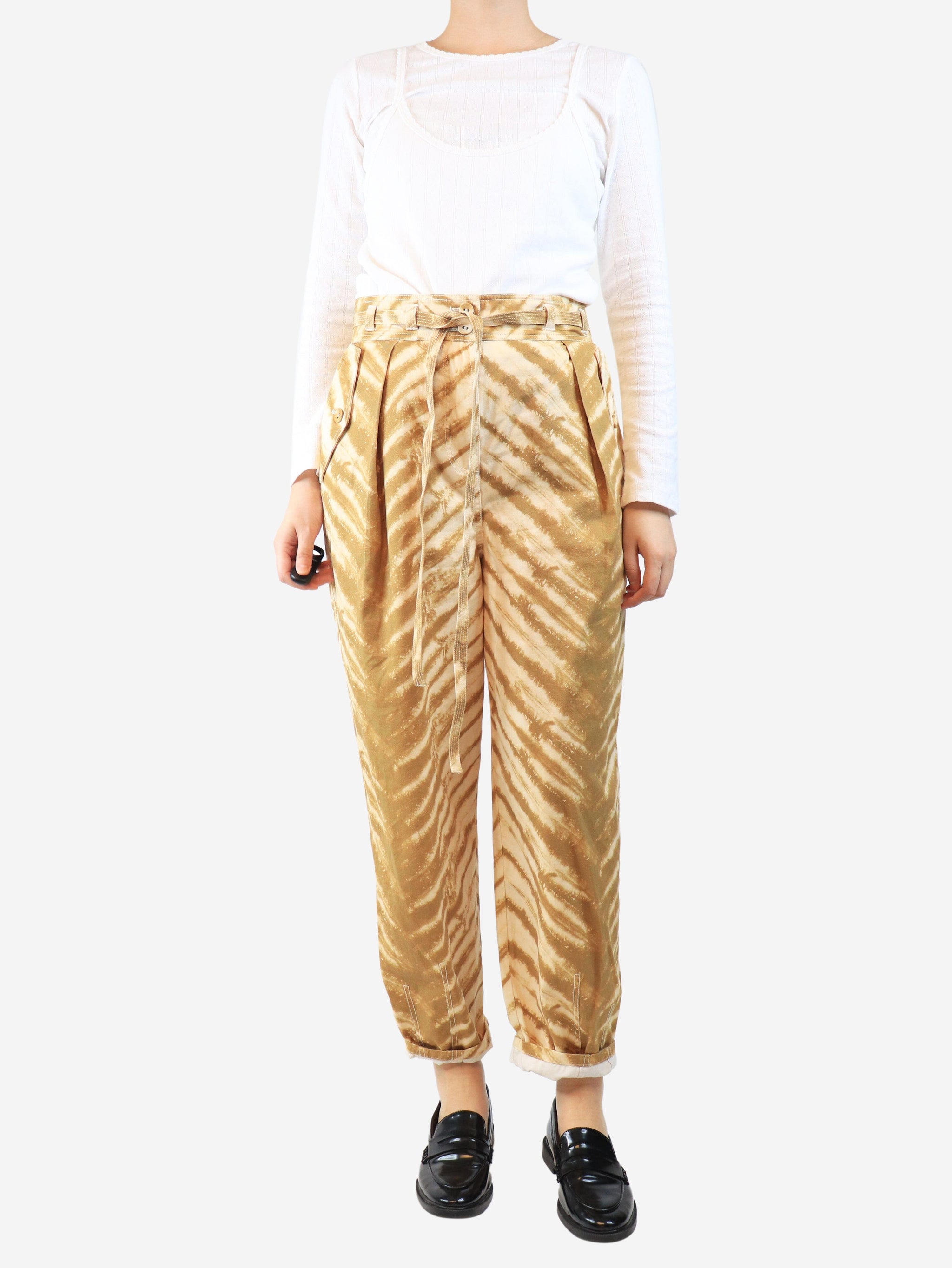 Brown animal print trousers - size UK 10