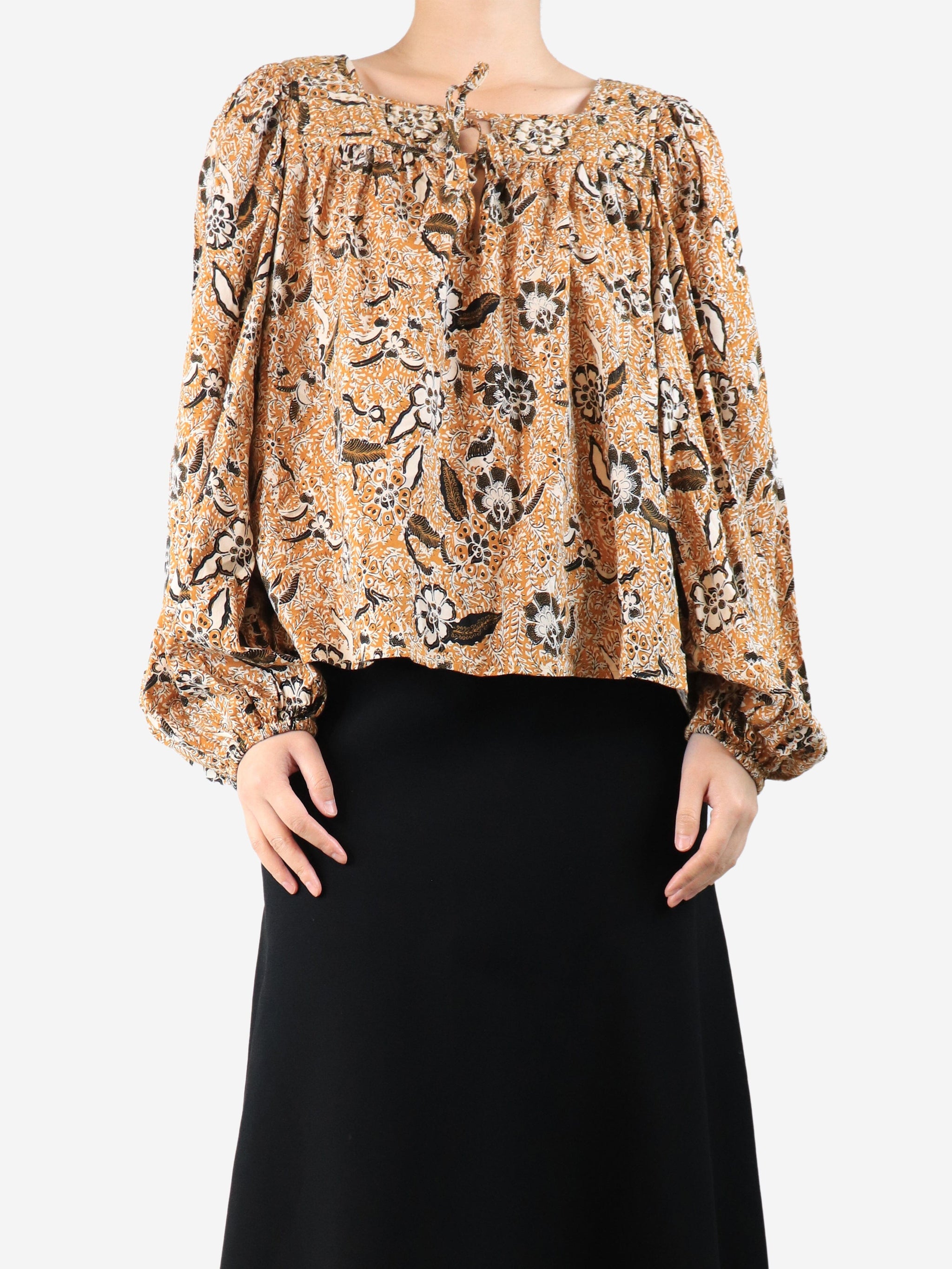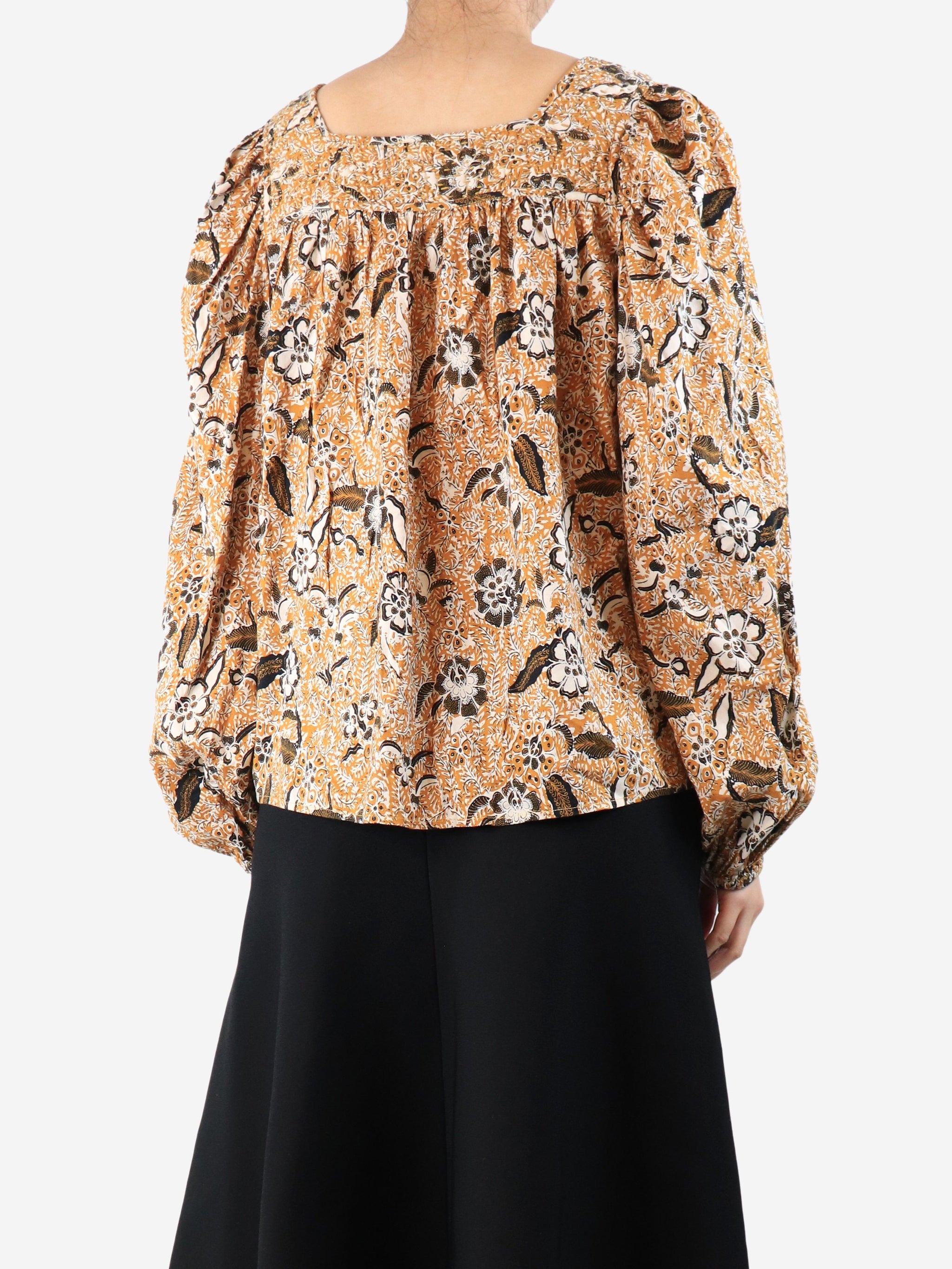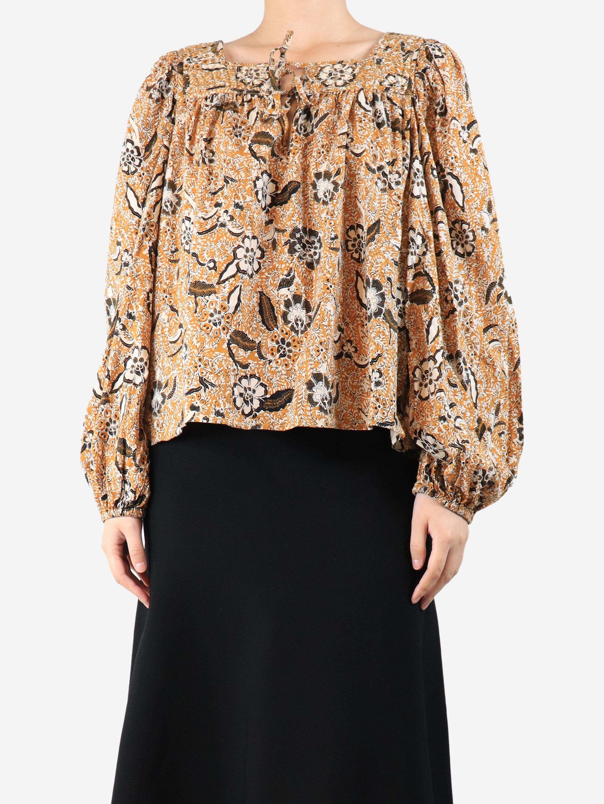 Orange floral printed blouse - size UK 14