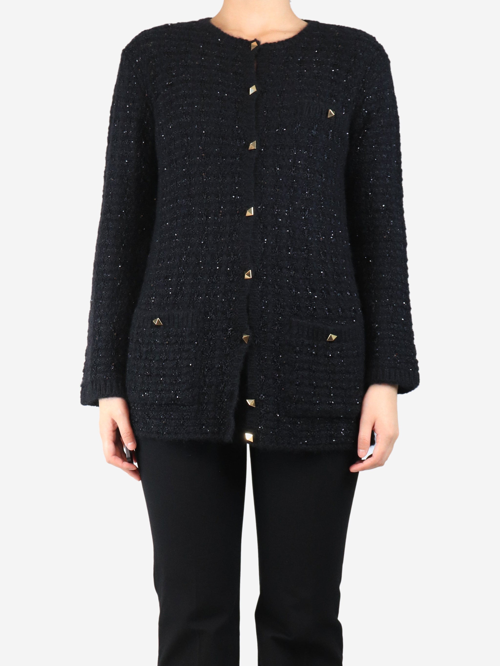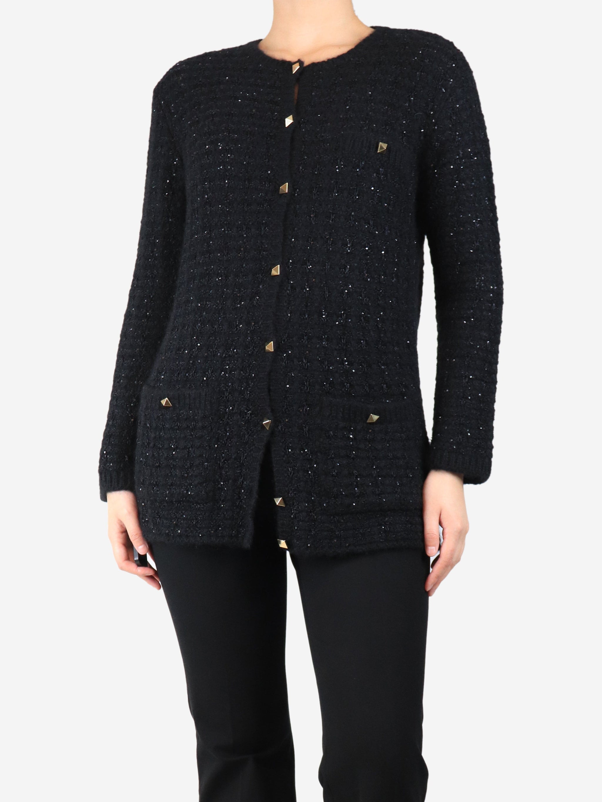 Black knit sequin cardigan - size L