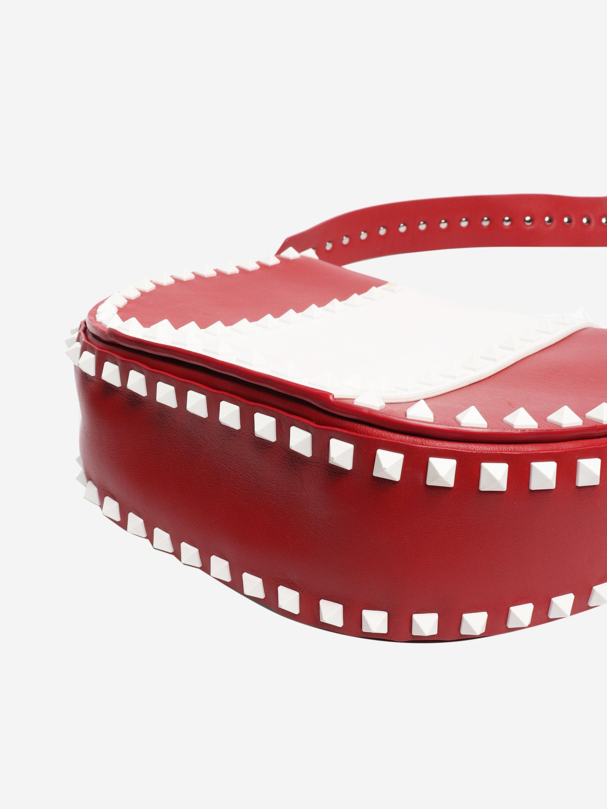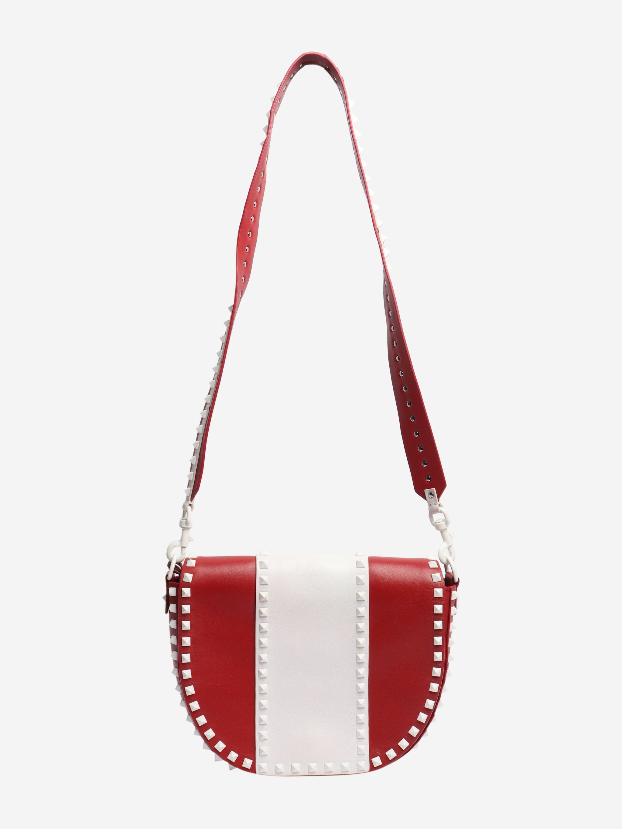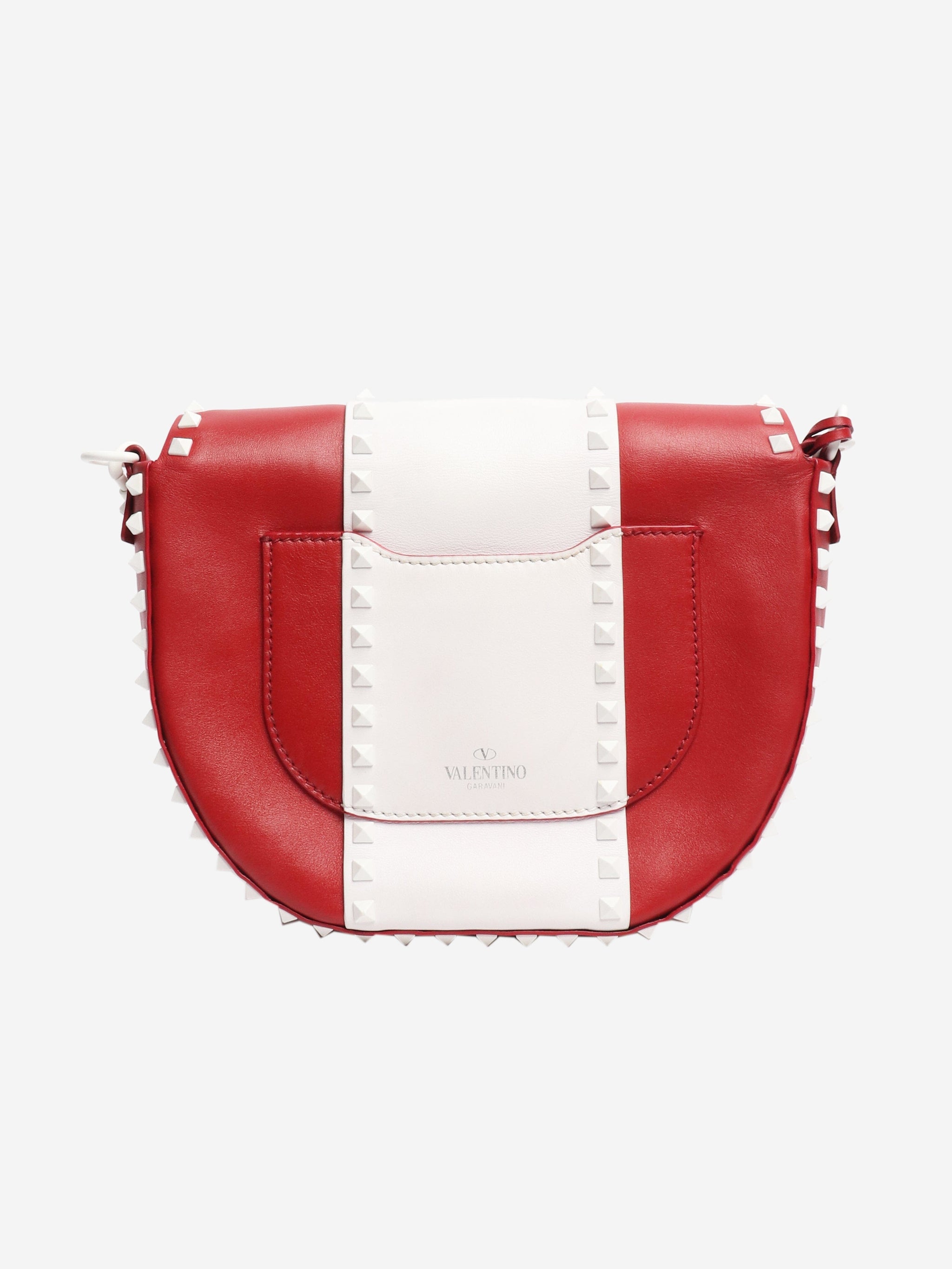 Red and white Rockstud Saddle bag