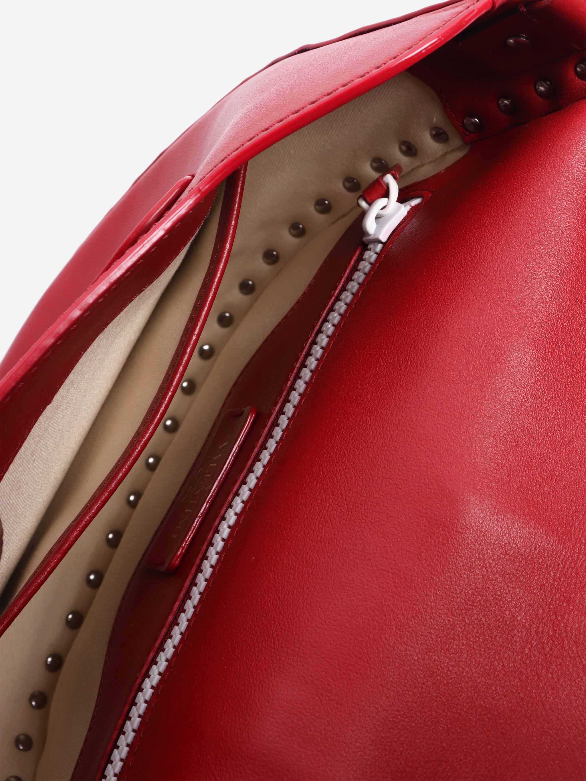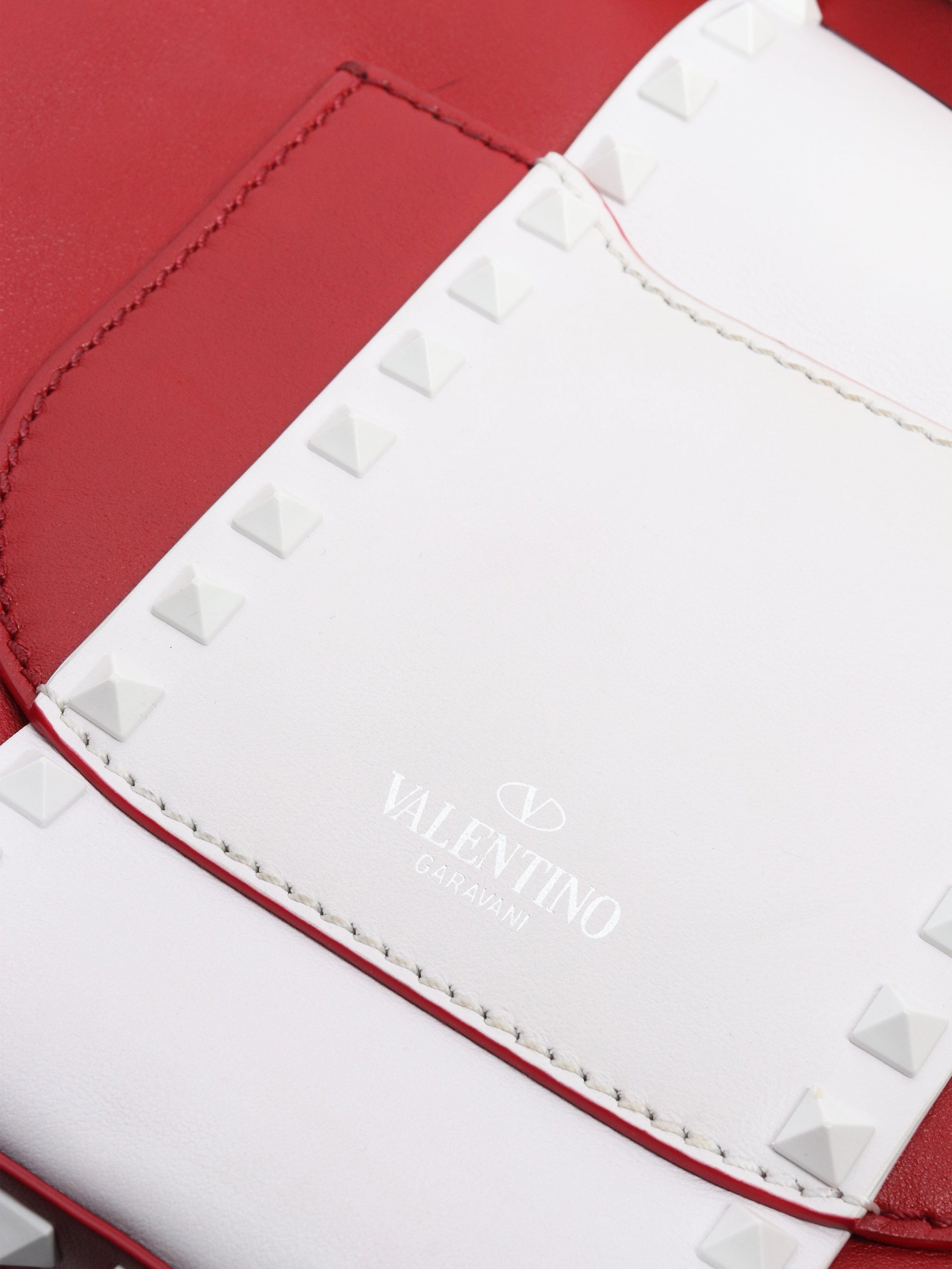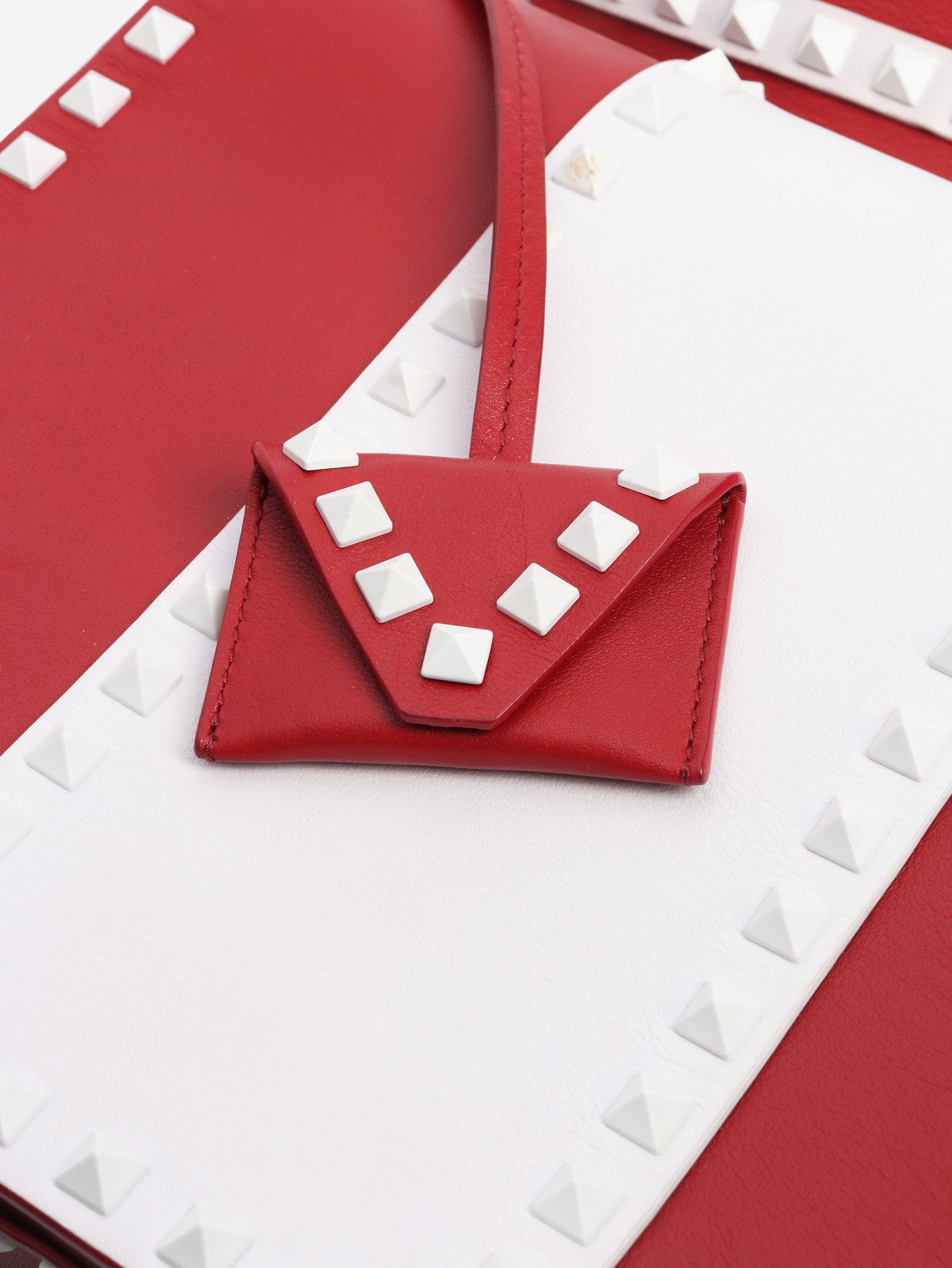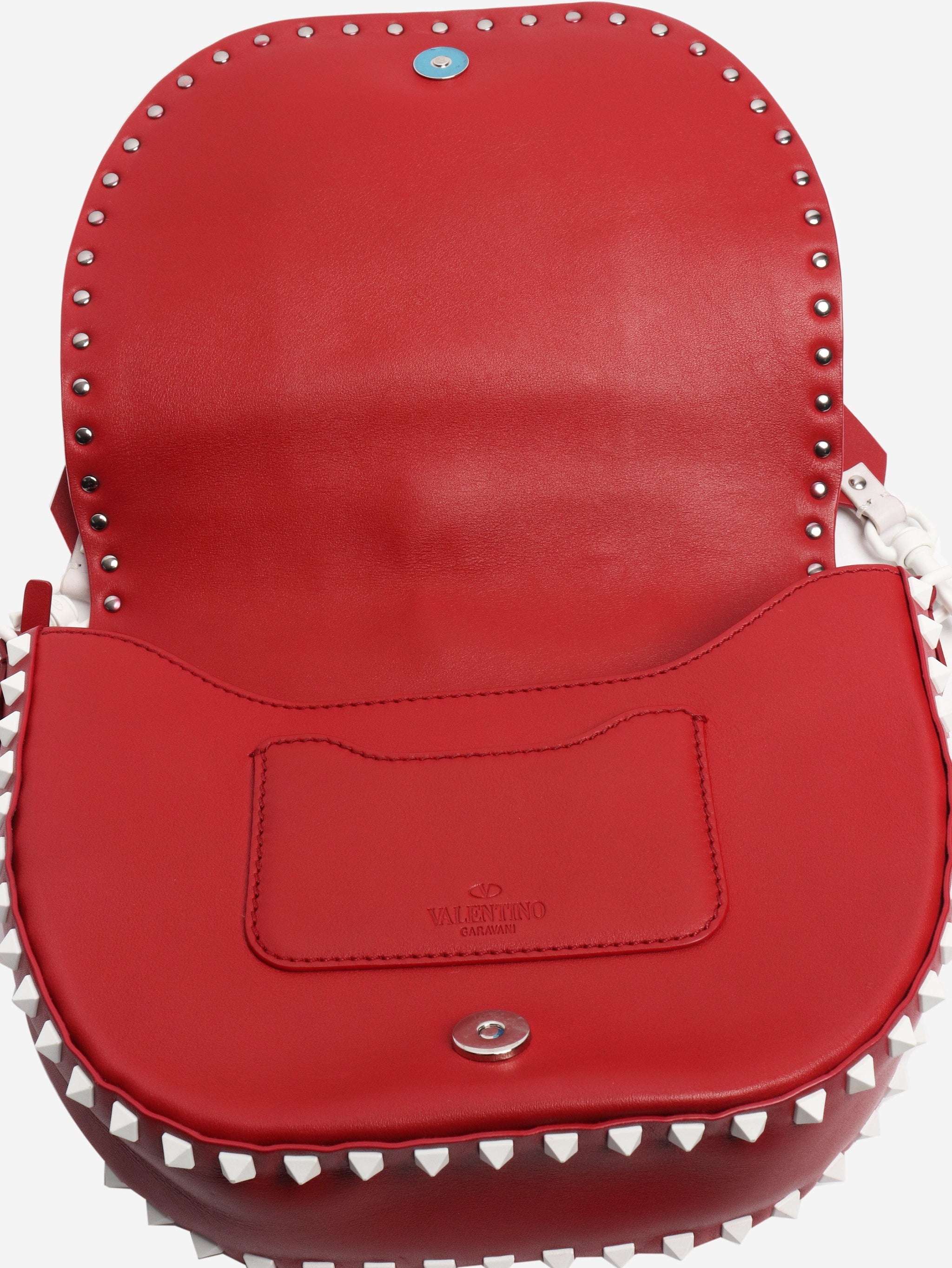 Red and white Rockstud Saddle bag