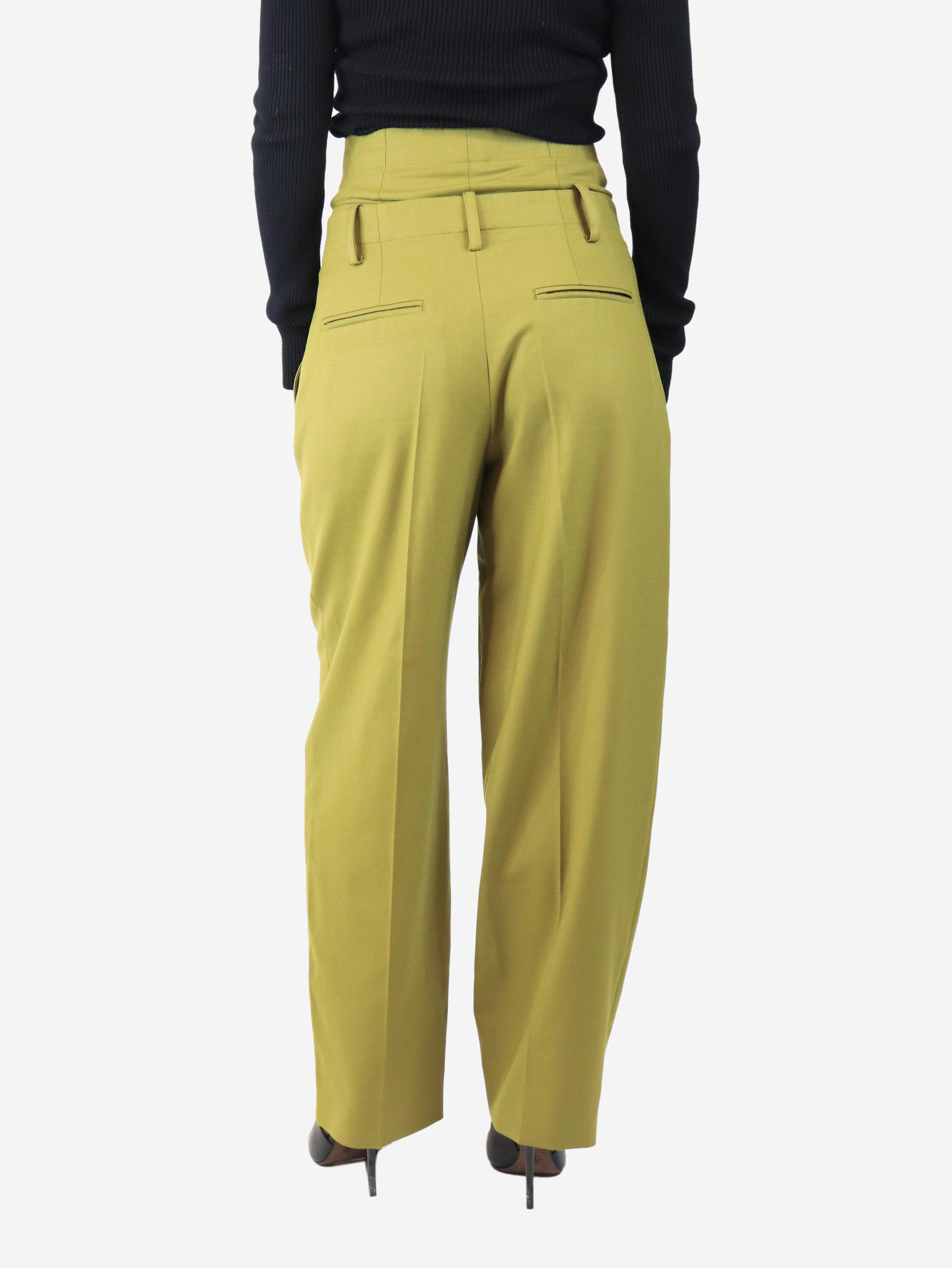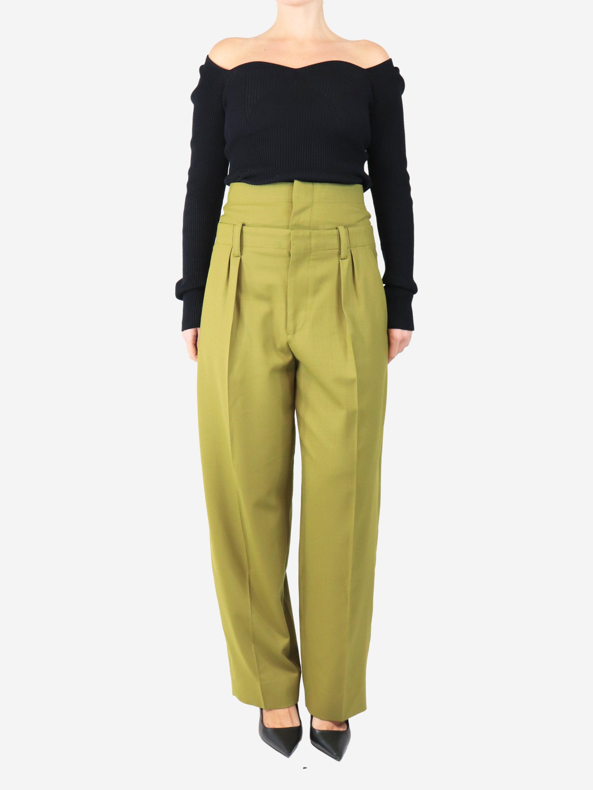 Olive green double-waisted wool-blend trousers - size UK 8