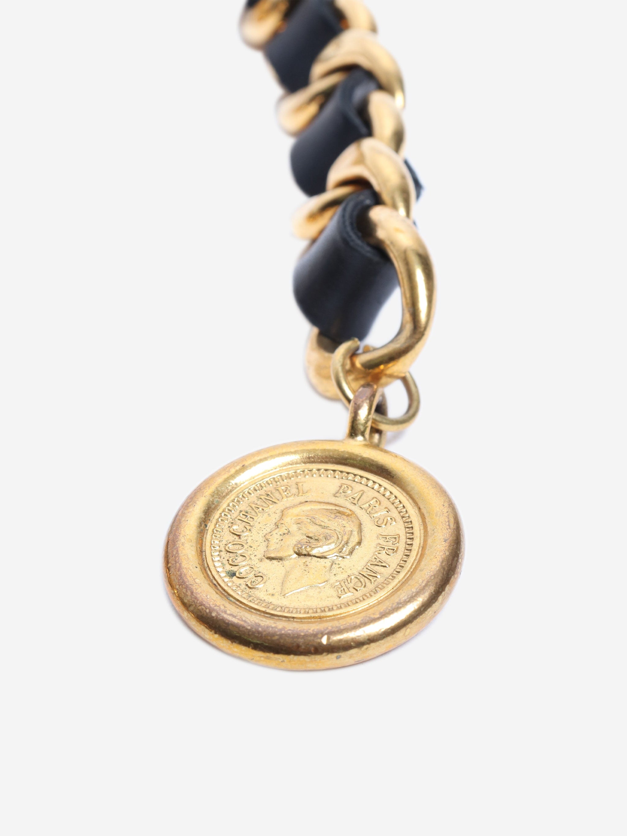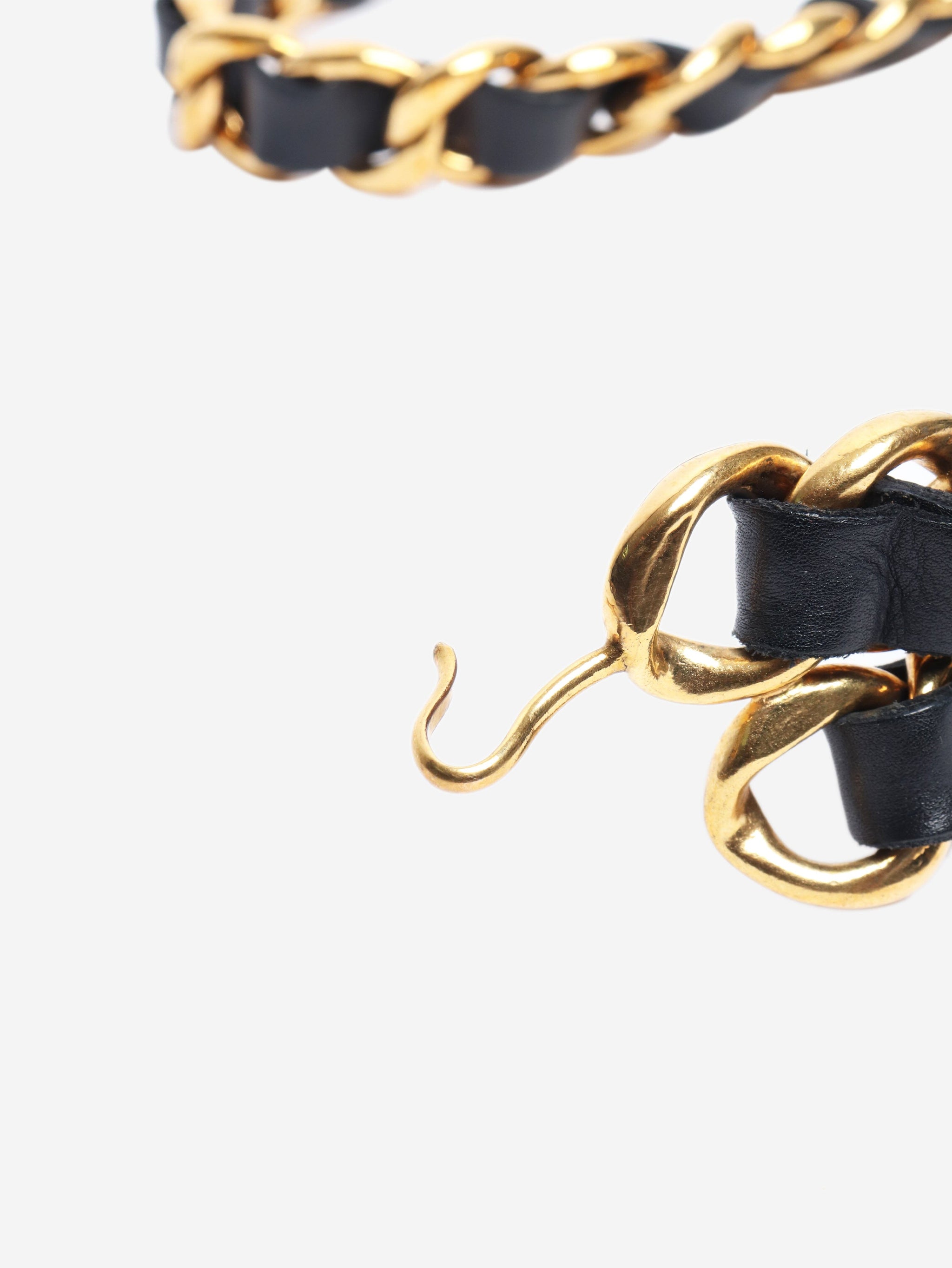 Vintage black and gold leather chain belt