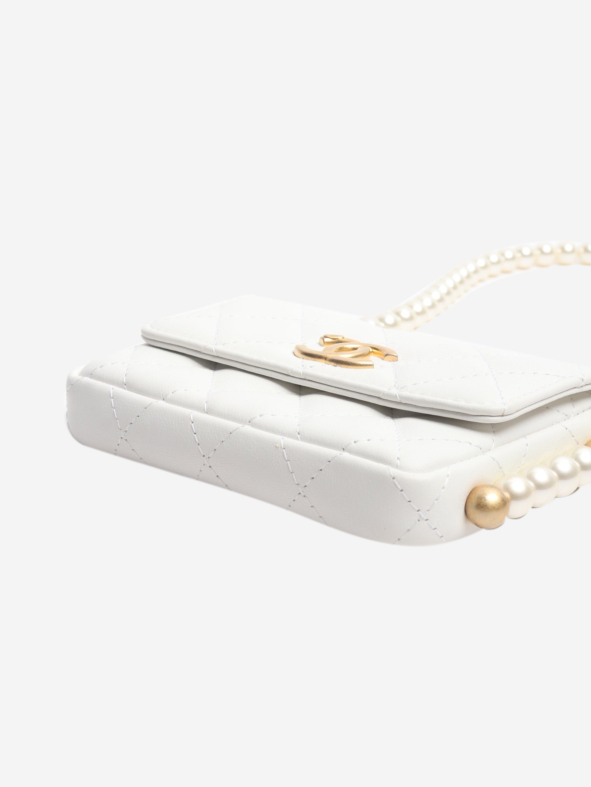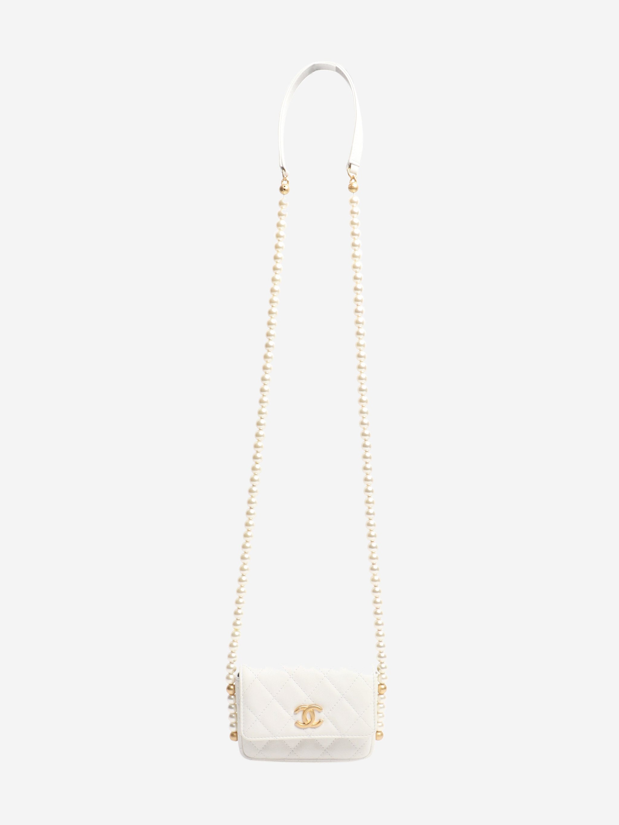 White diamond quilted caviar 2021 faux pearl mini crossbody bag
