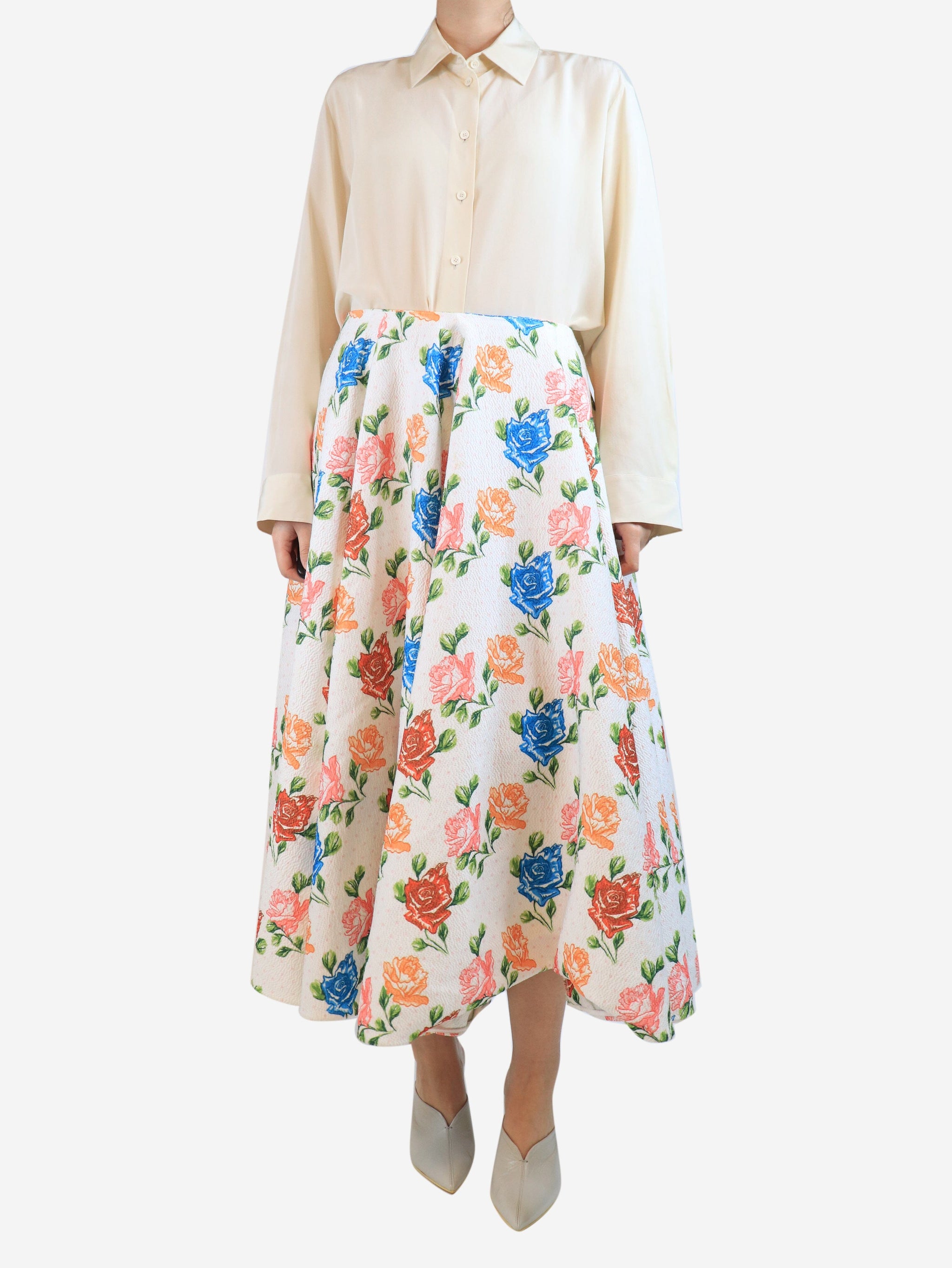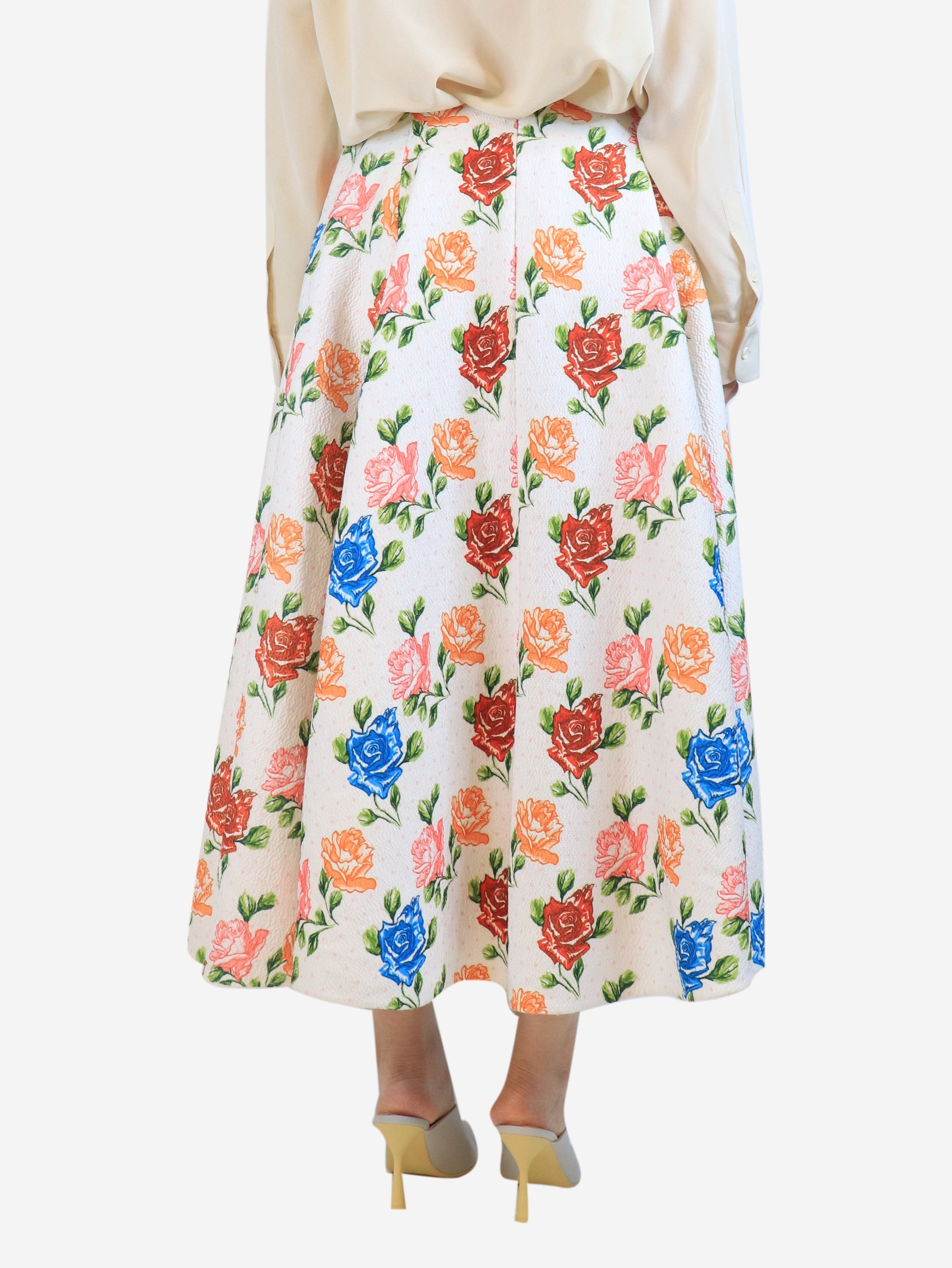 White floral A-line midi skirt - size UK 12