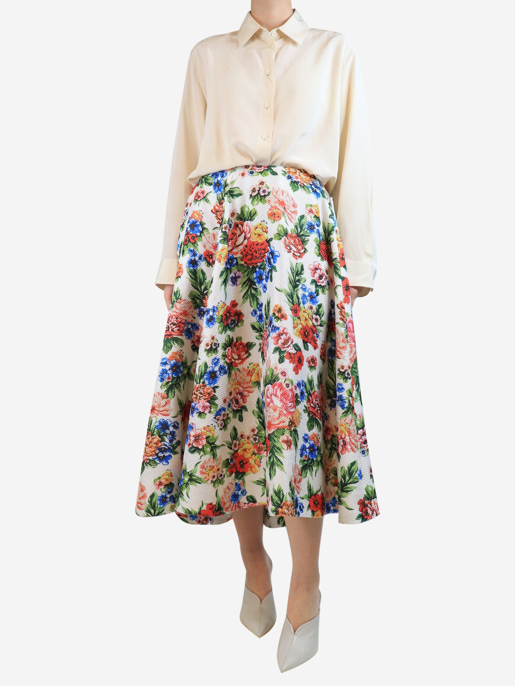 White heavyweight floral skirt - size UK 12