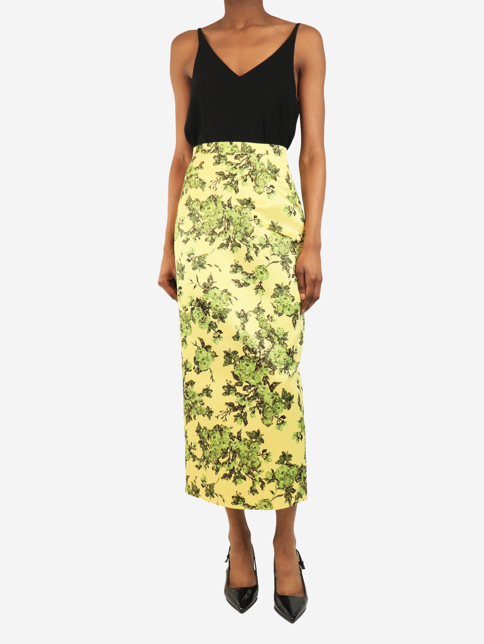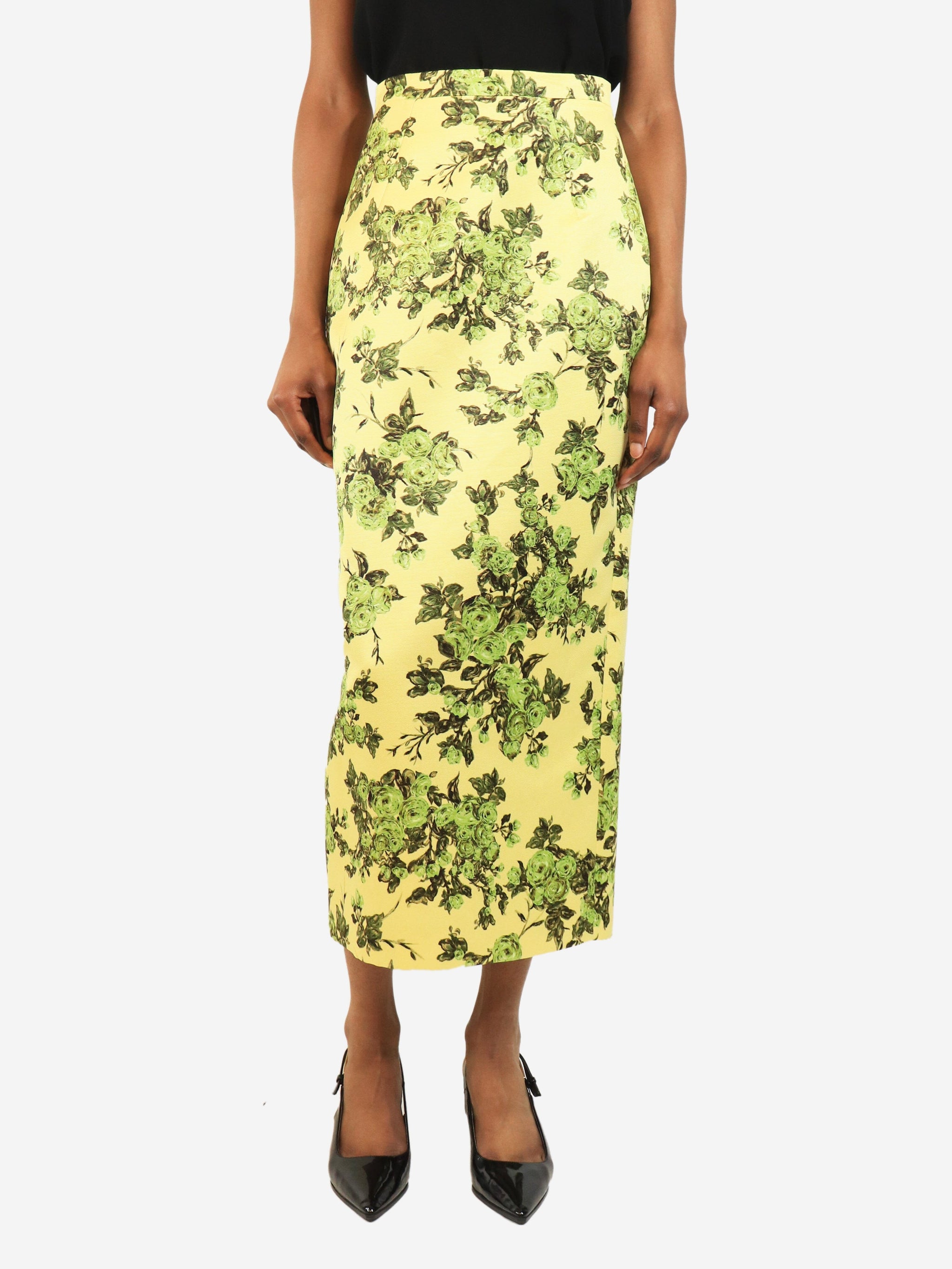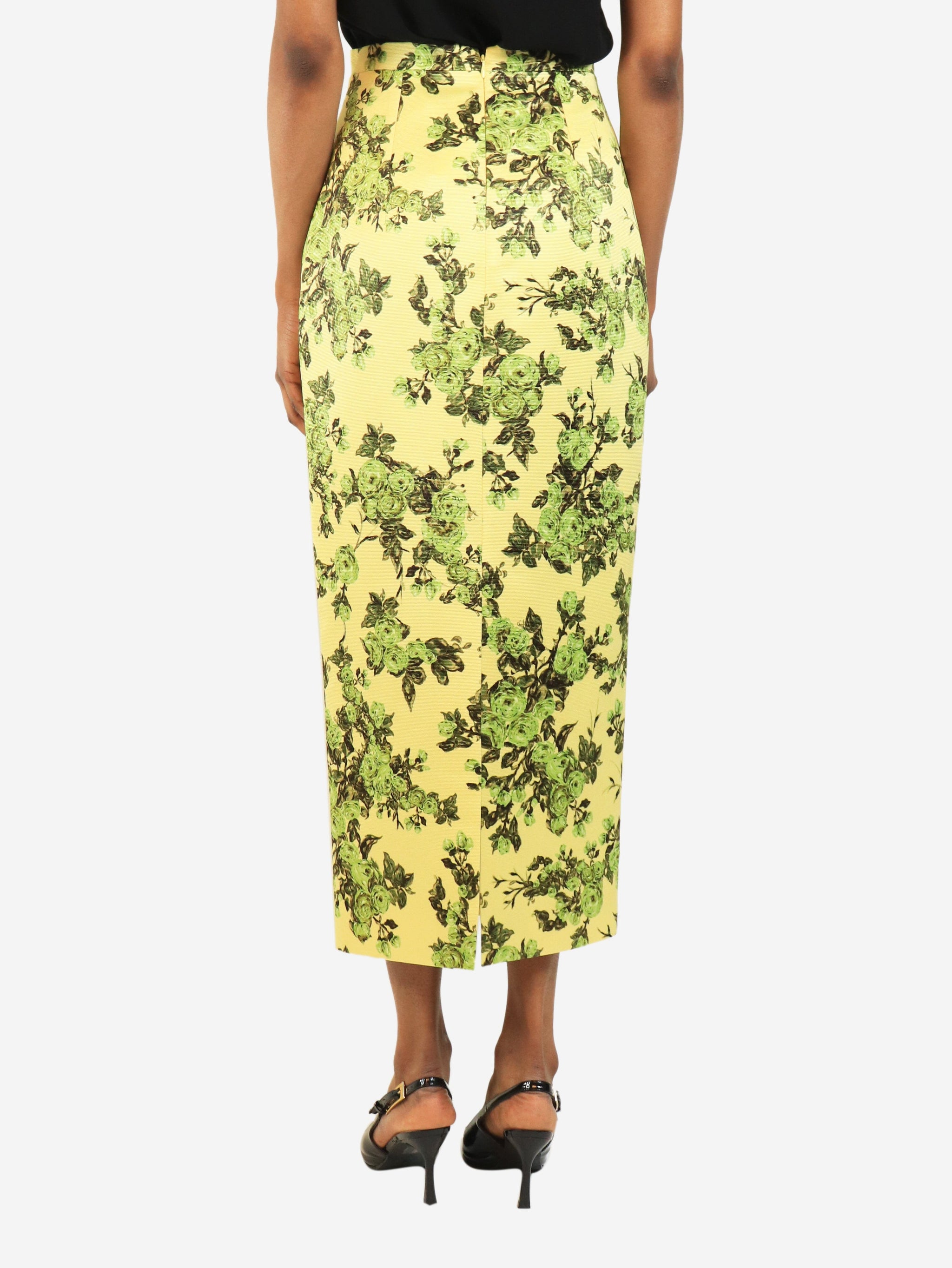 Yellow floral midi skirt - size UK 8