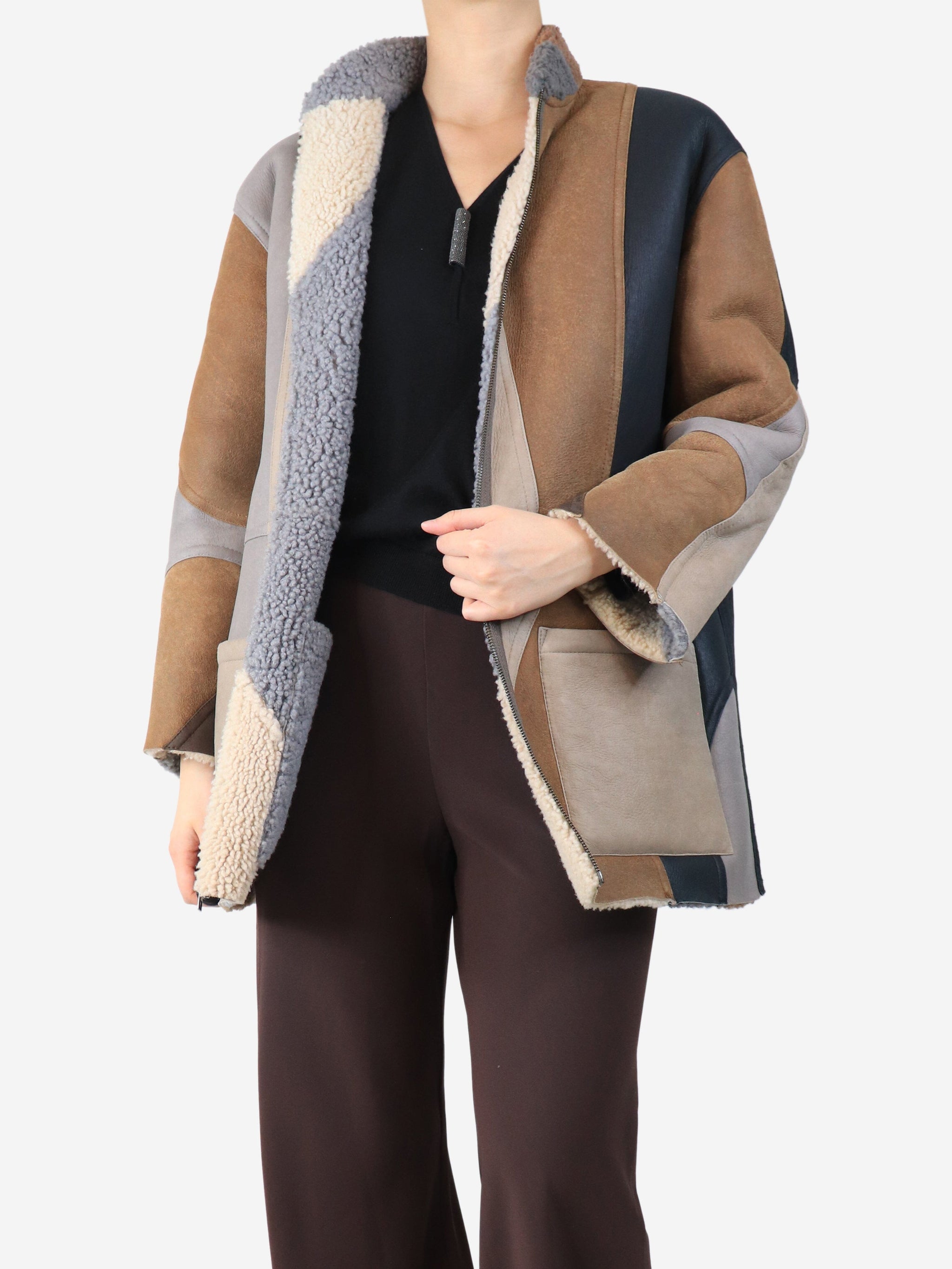 Brown reversible sherpa coat - size S