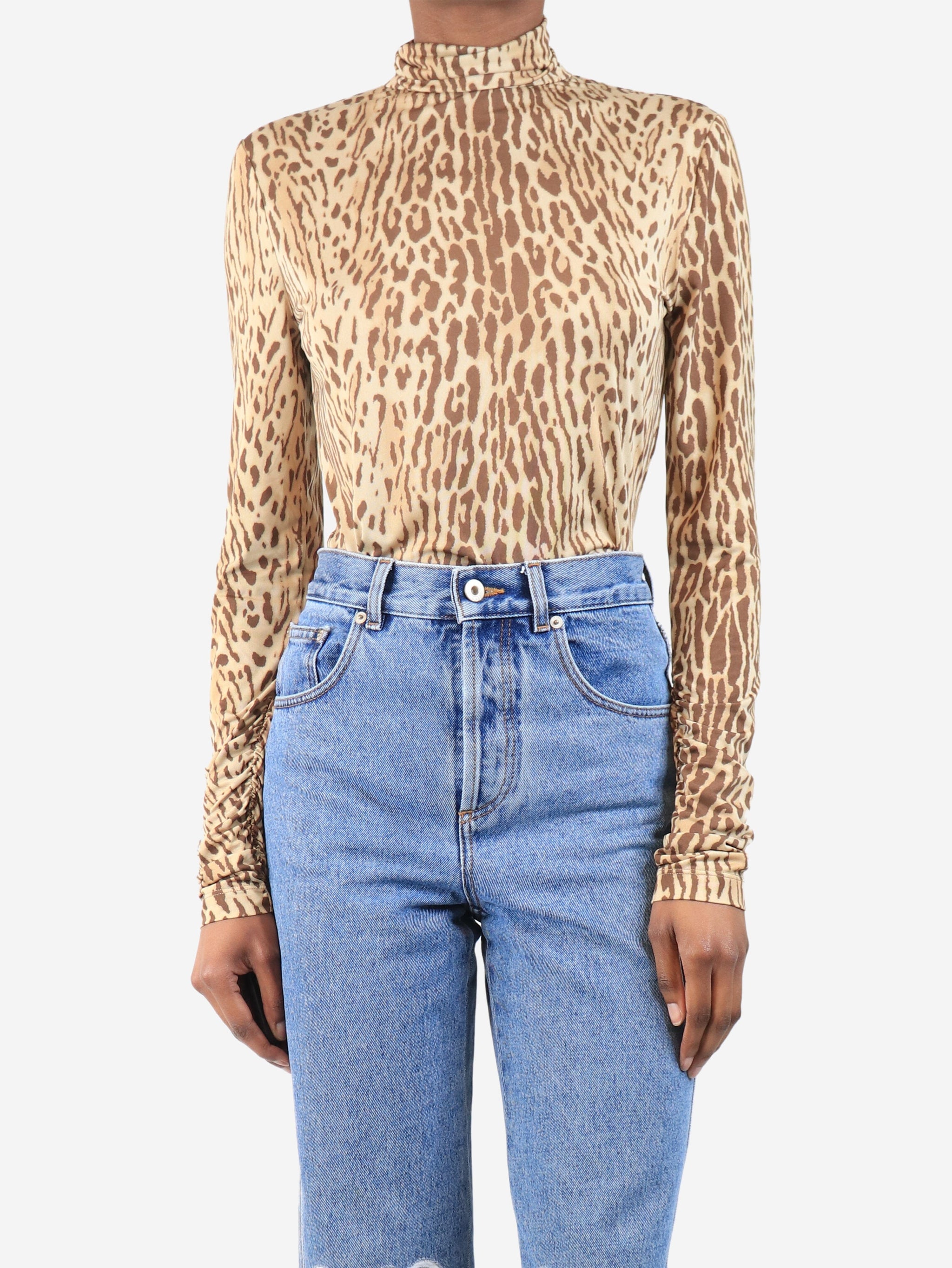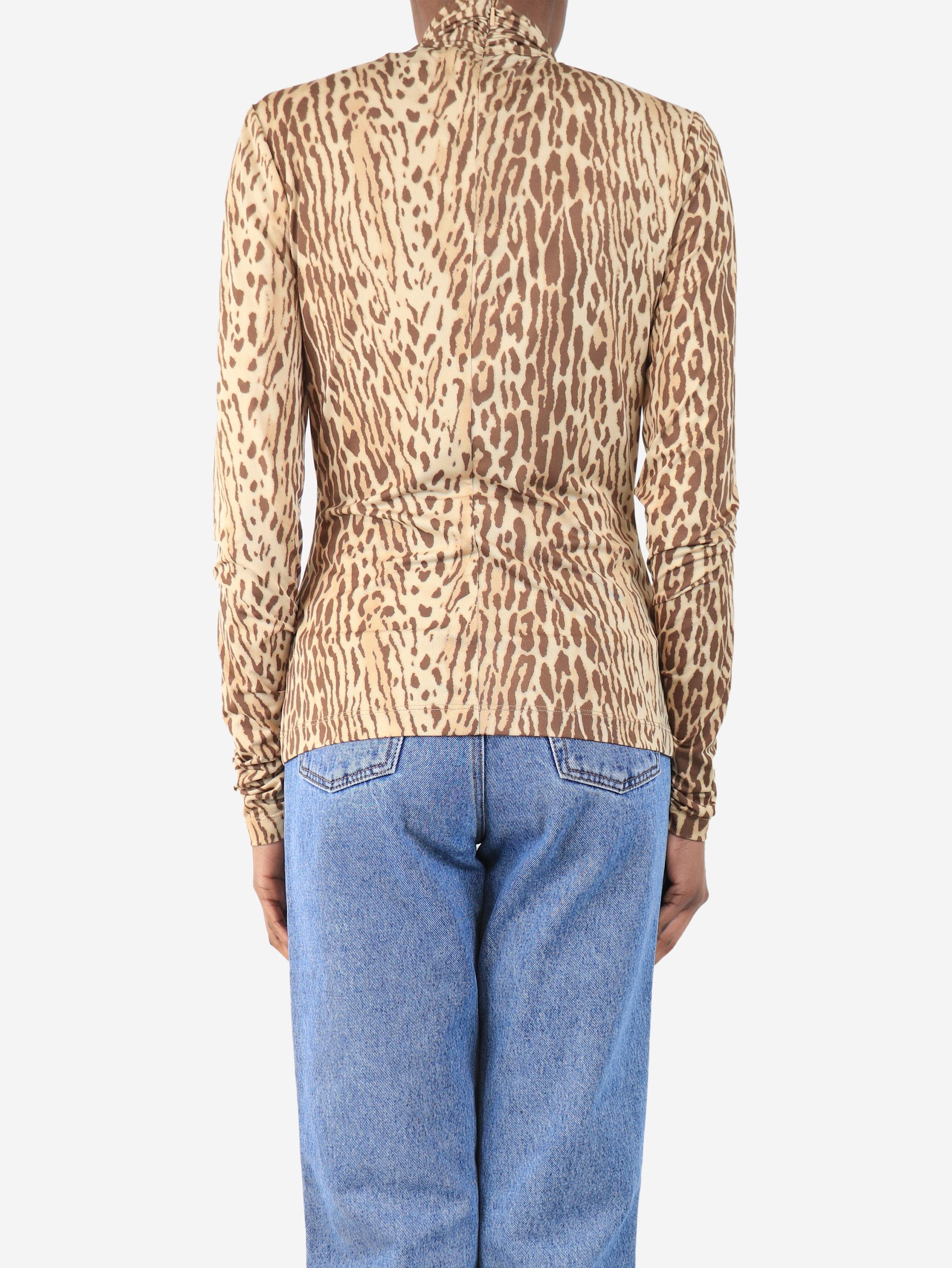Brown leopard print top - size UK 8