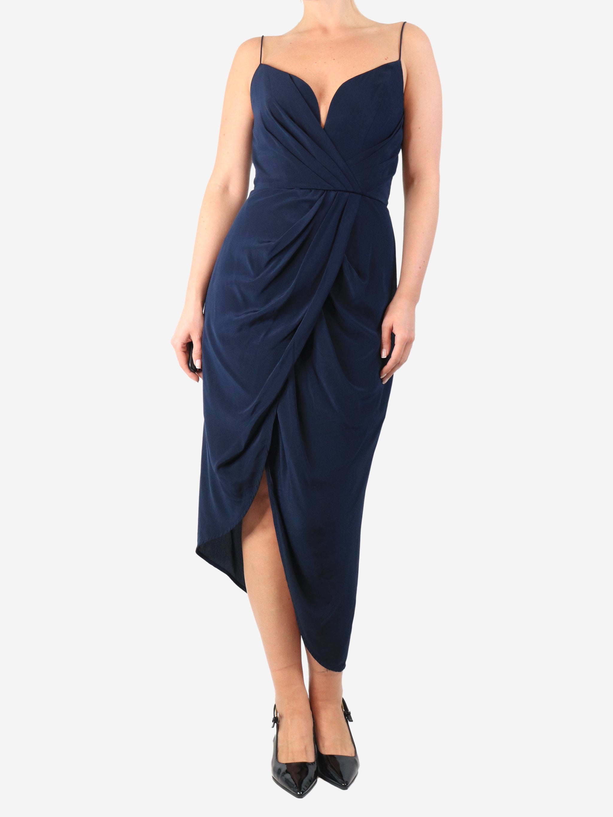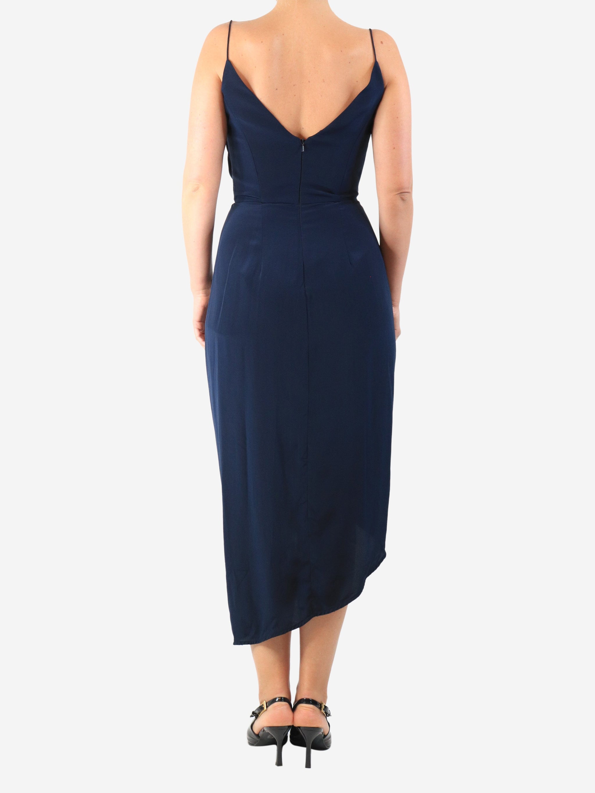 Navy silk midi dress - size UK 10